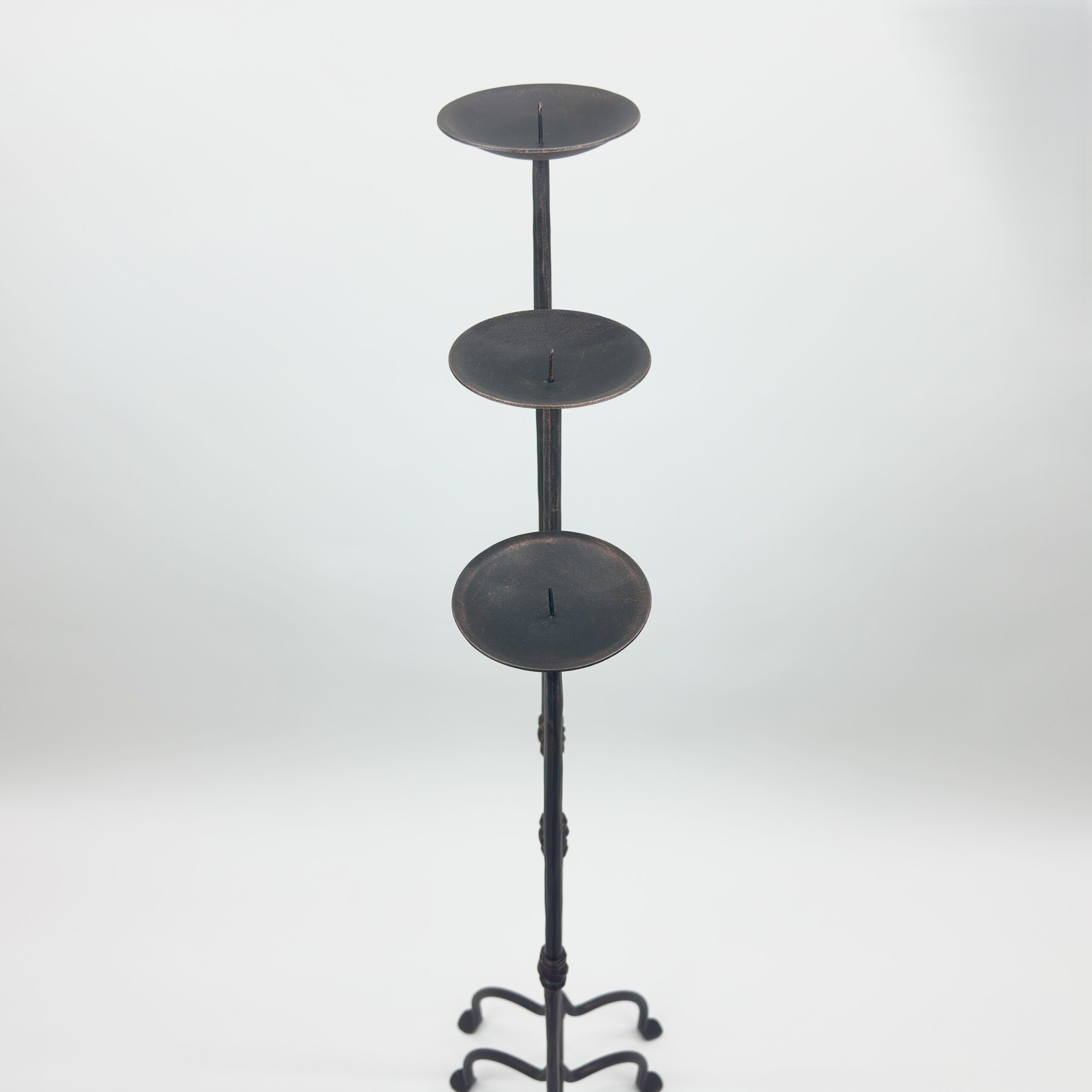 Hand Forged Iron Candelabra Set of 3 (95-115cm) Antique Copper Finish Straight Stem with Compact Arched Base