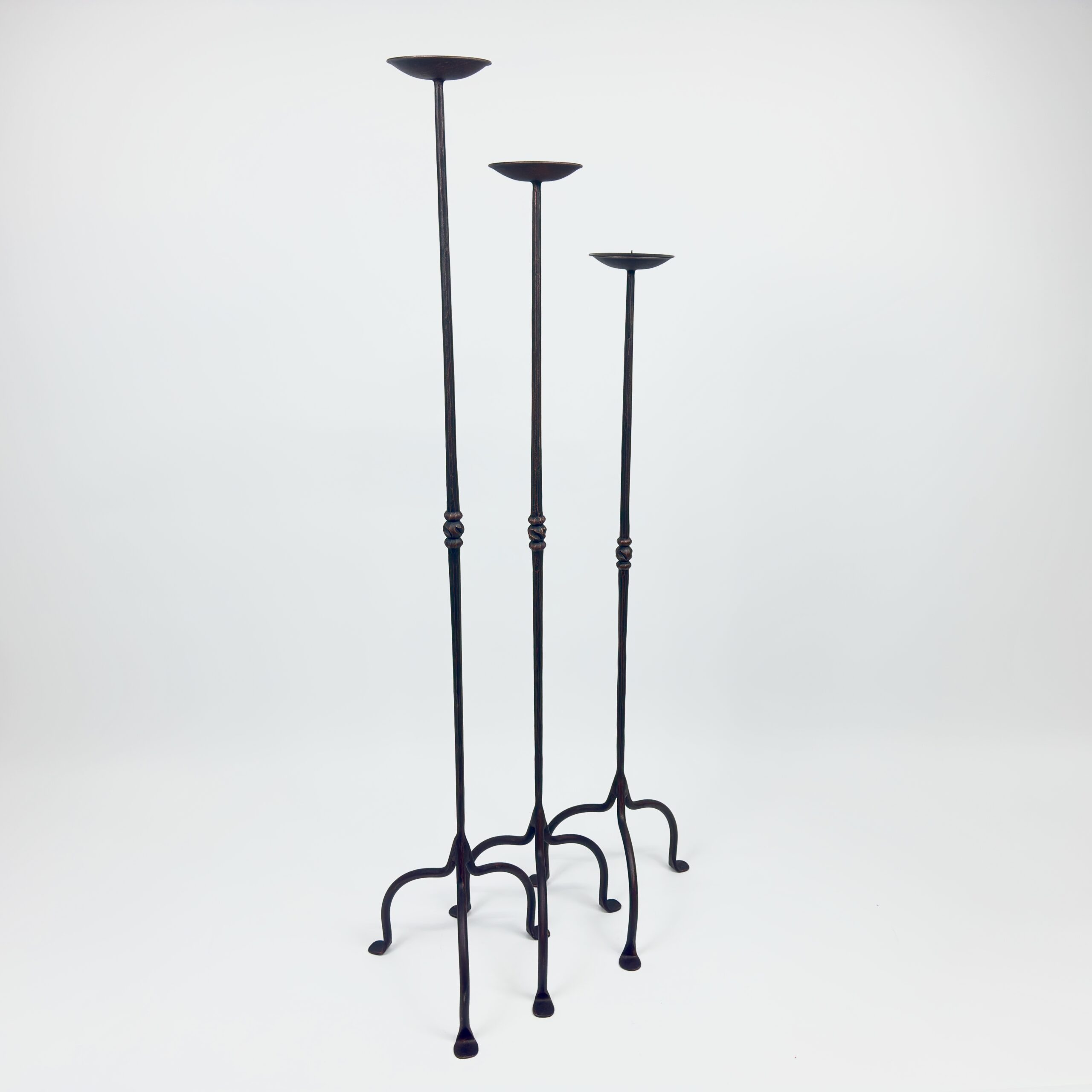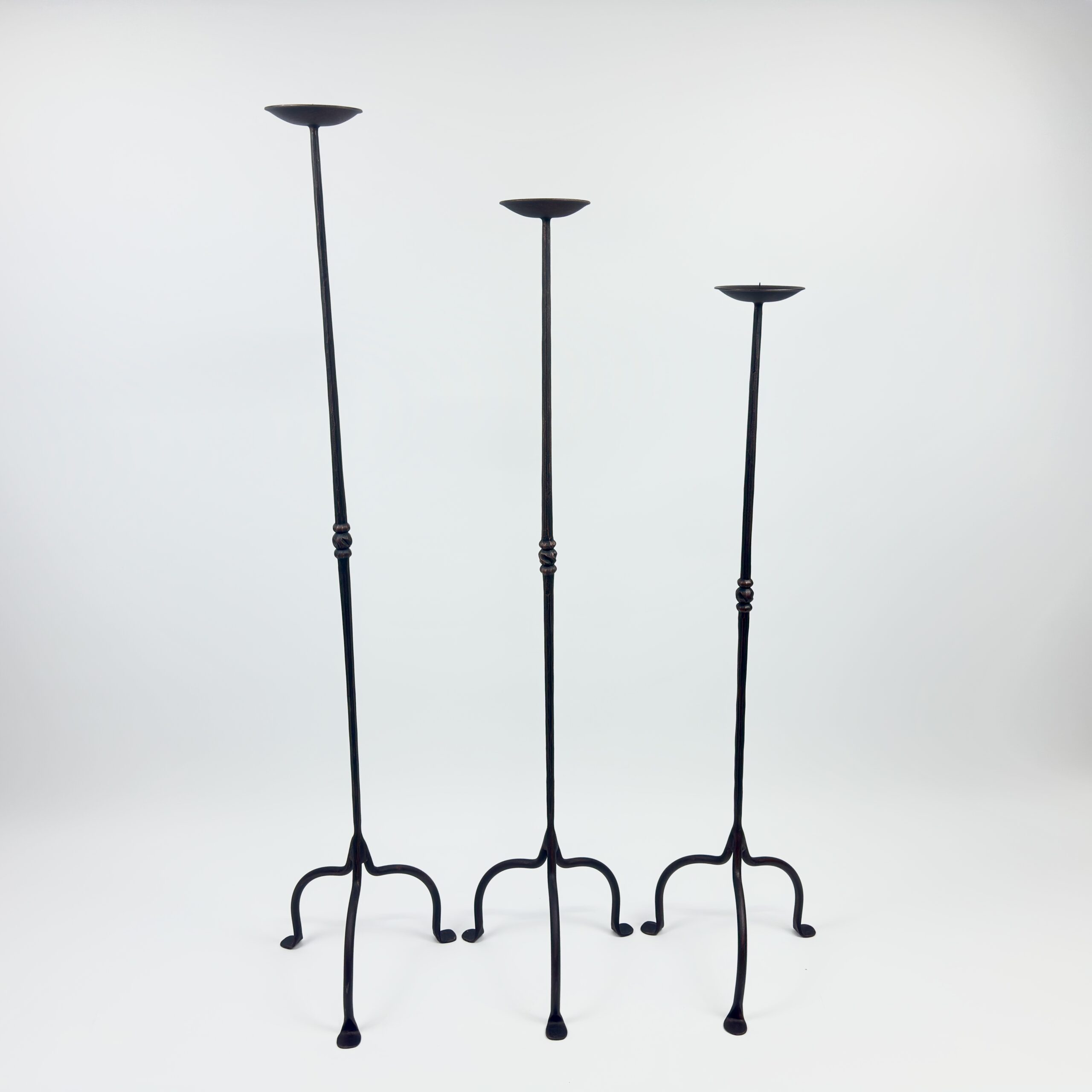 Maximize your style without sacrificing floor space. This Hand-Forged Iron Set (115 cm, 105 cm, 95 cm) combines our most space-efficient base with our cleanest stem design.