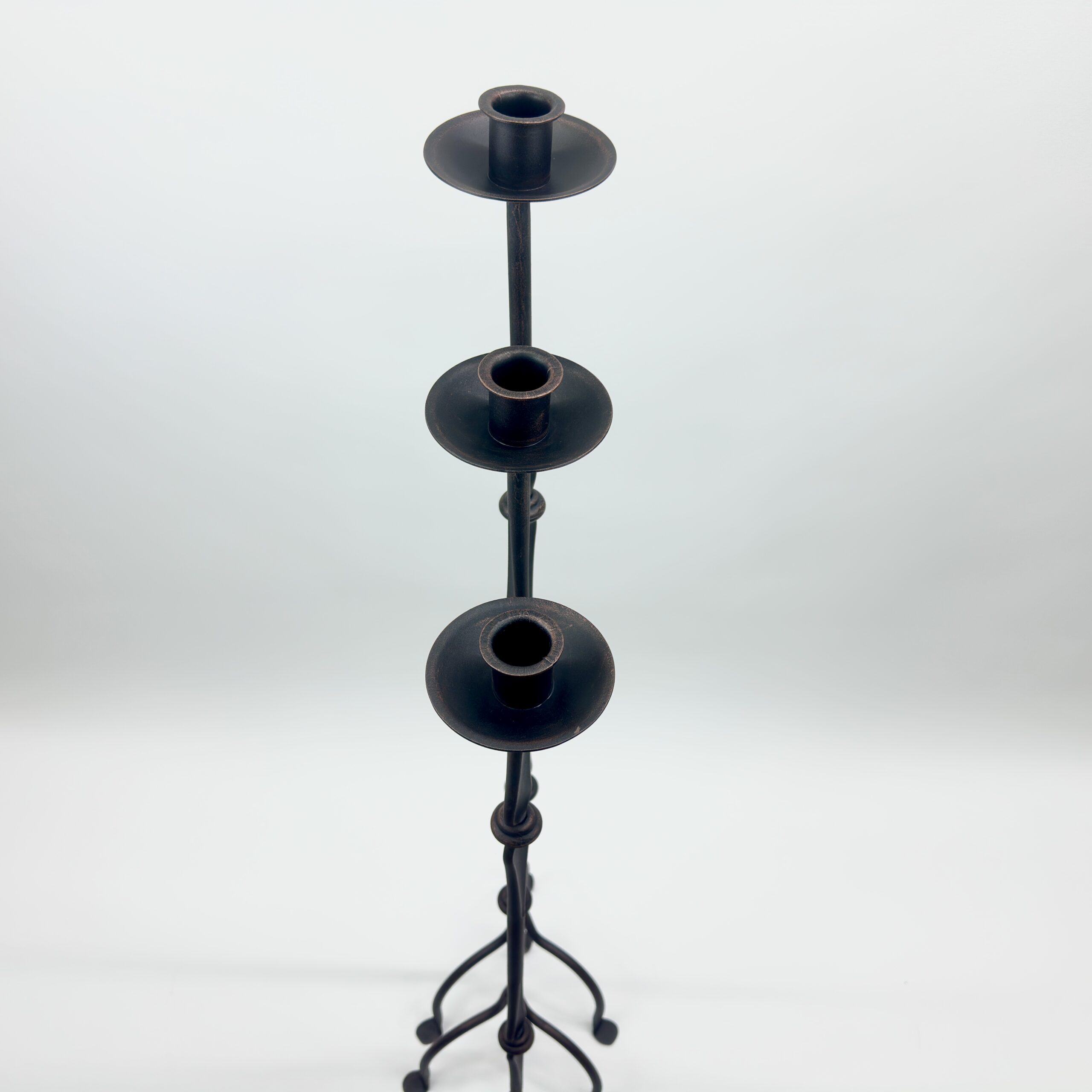 Hand Forged Iron Floor Candelabra 49″ (125cm) Antique Copper Patina 3-Arm Knot Detail Rustic Wedding Decor