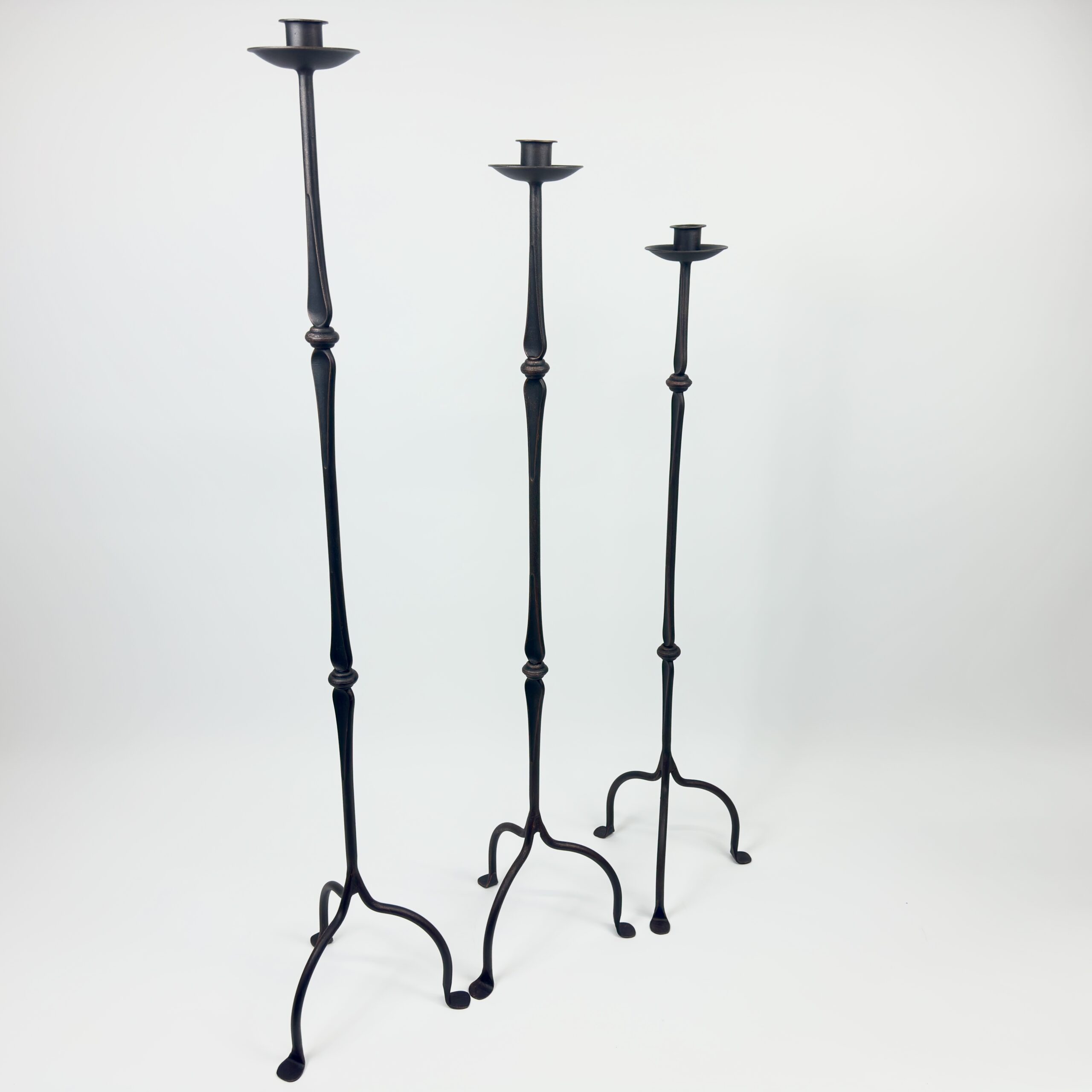 Hand Forged Iron Candelabra Set of 3 (97-117cm) Antique Copper Finish Classic Spindle Node Floor Set