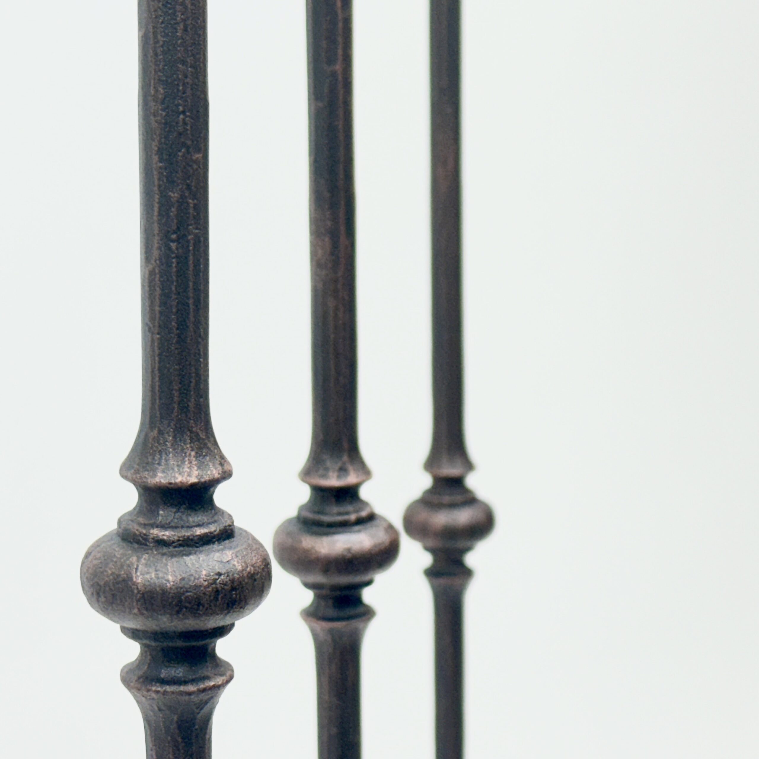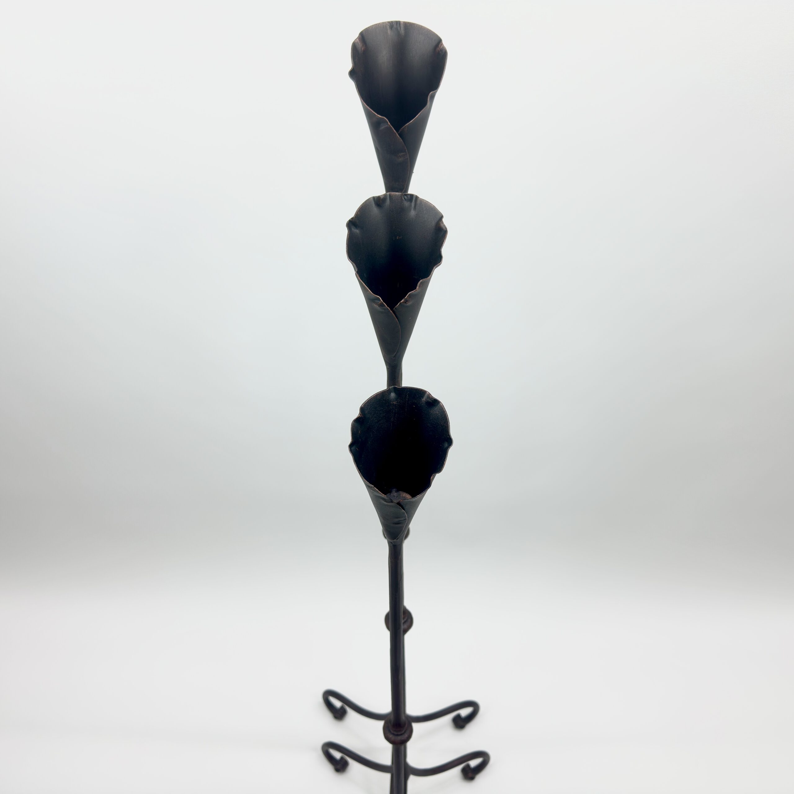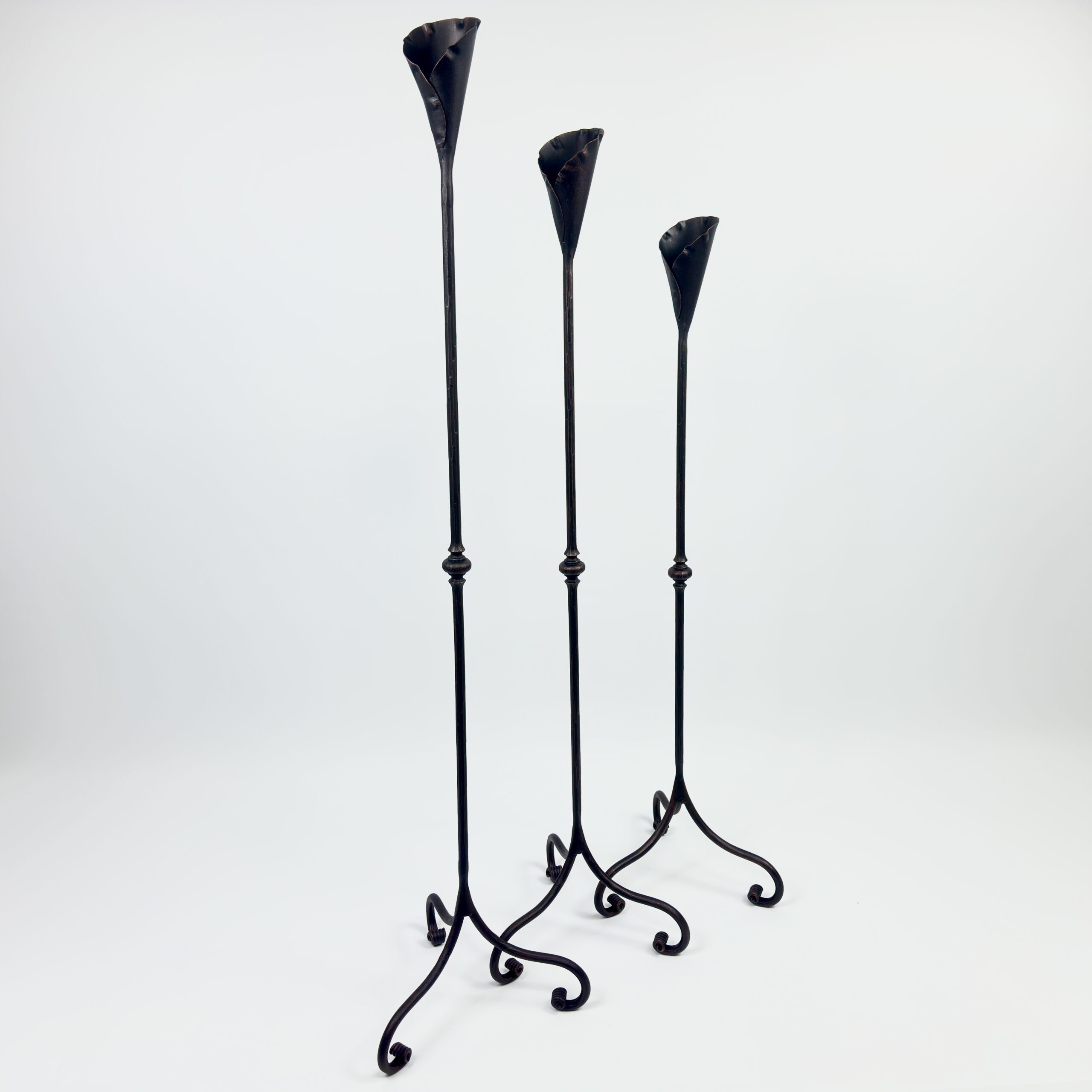 Hand Forged Iron Candelabra Set of 3 (97-117cm) Antique Copper Finish Slender Stem with Lily Cups