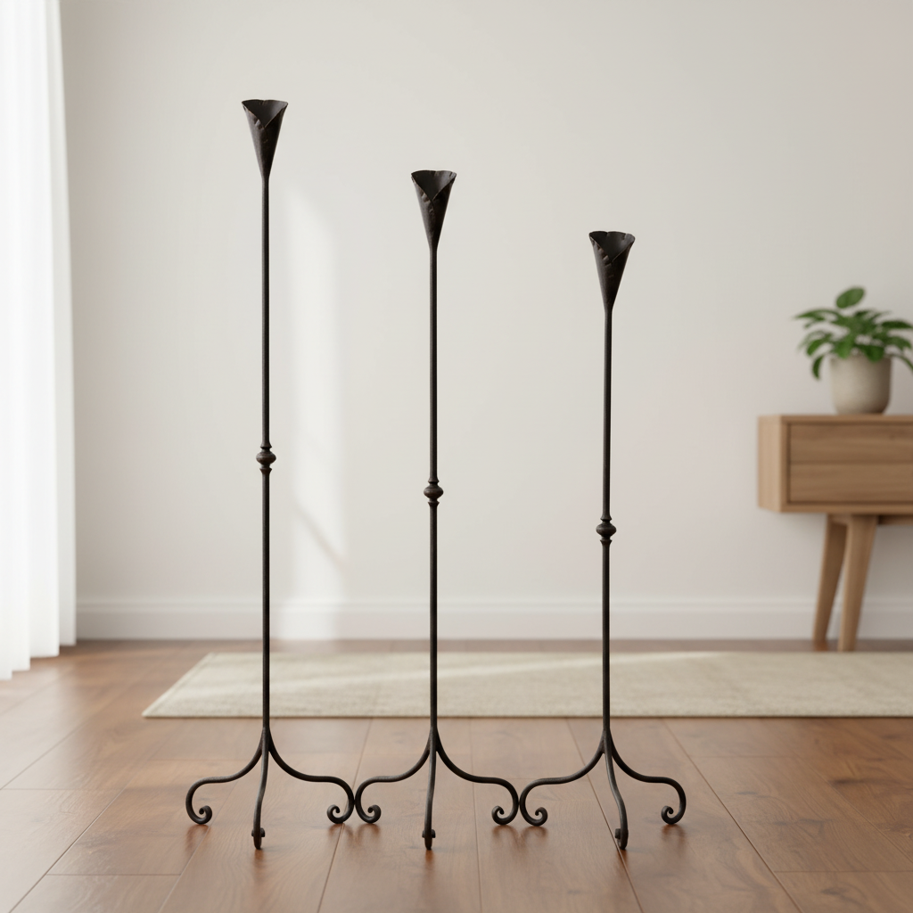 Bring the organic beauty of the garden indoors. This Hand-Forged Iron Set (117 cm, 107 cm, 97 cm) combines the strength of iron with the delicate form of a blooming flower.