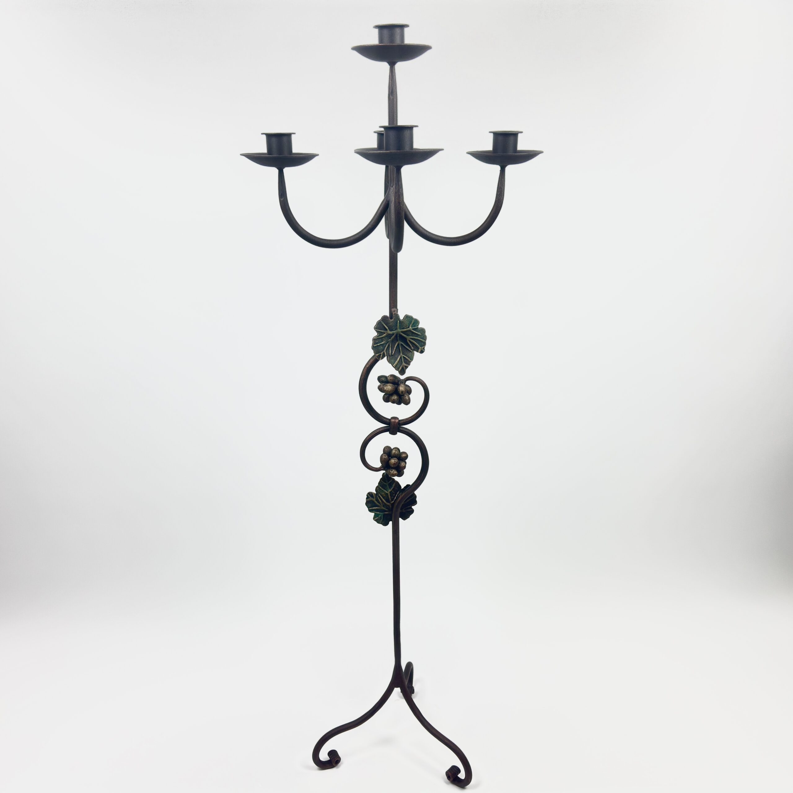 Hand Forged Iron Floor Candelabra 47″ (120cm) Antique Copper Patina 4-Arm 5-Candle Classic Scroll Holder Decor