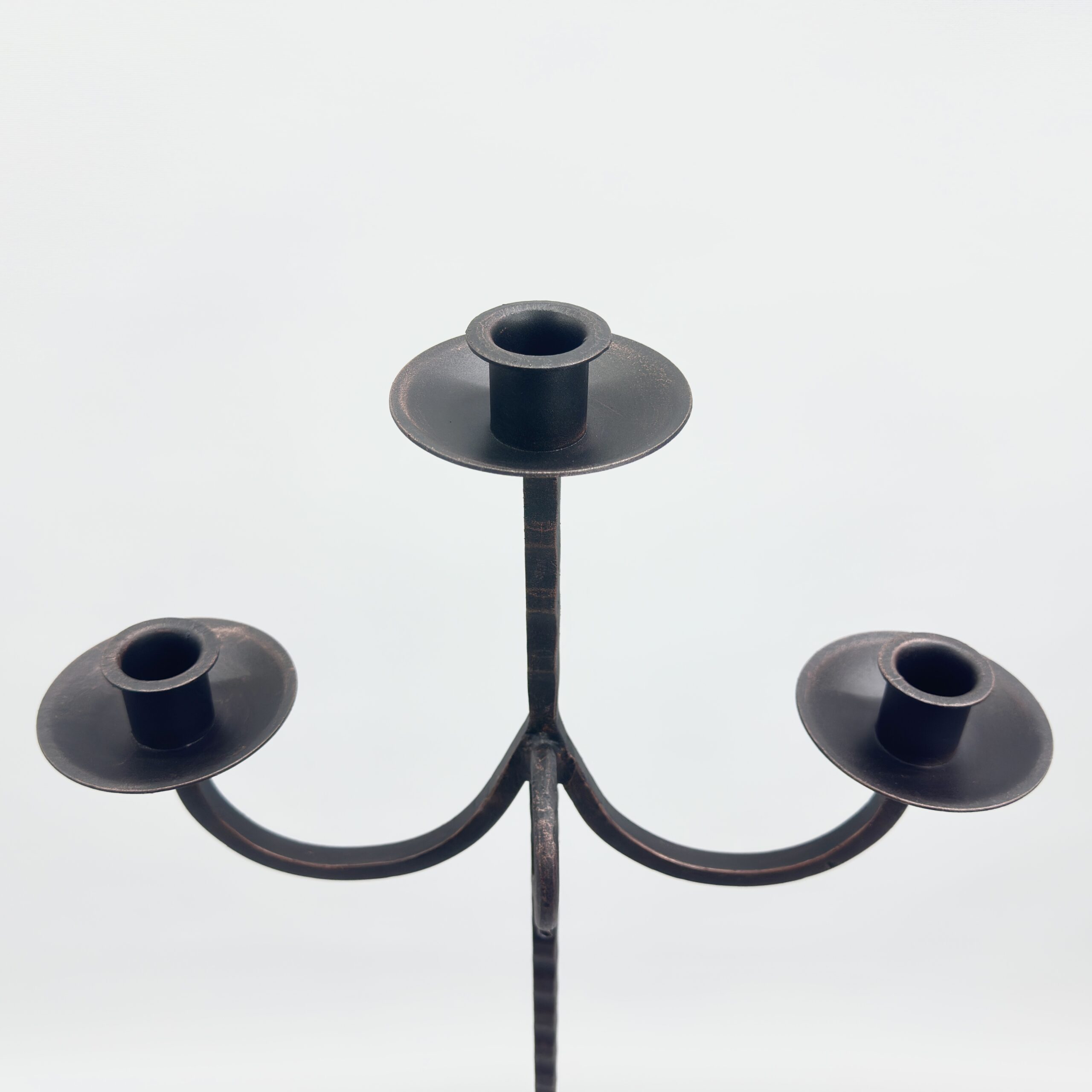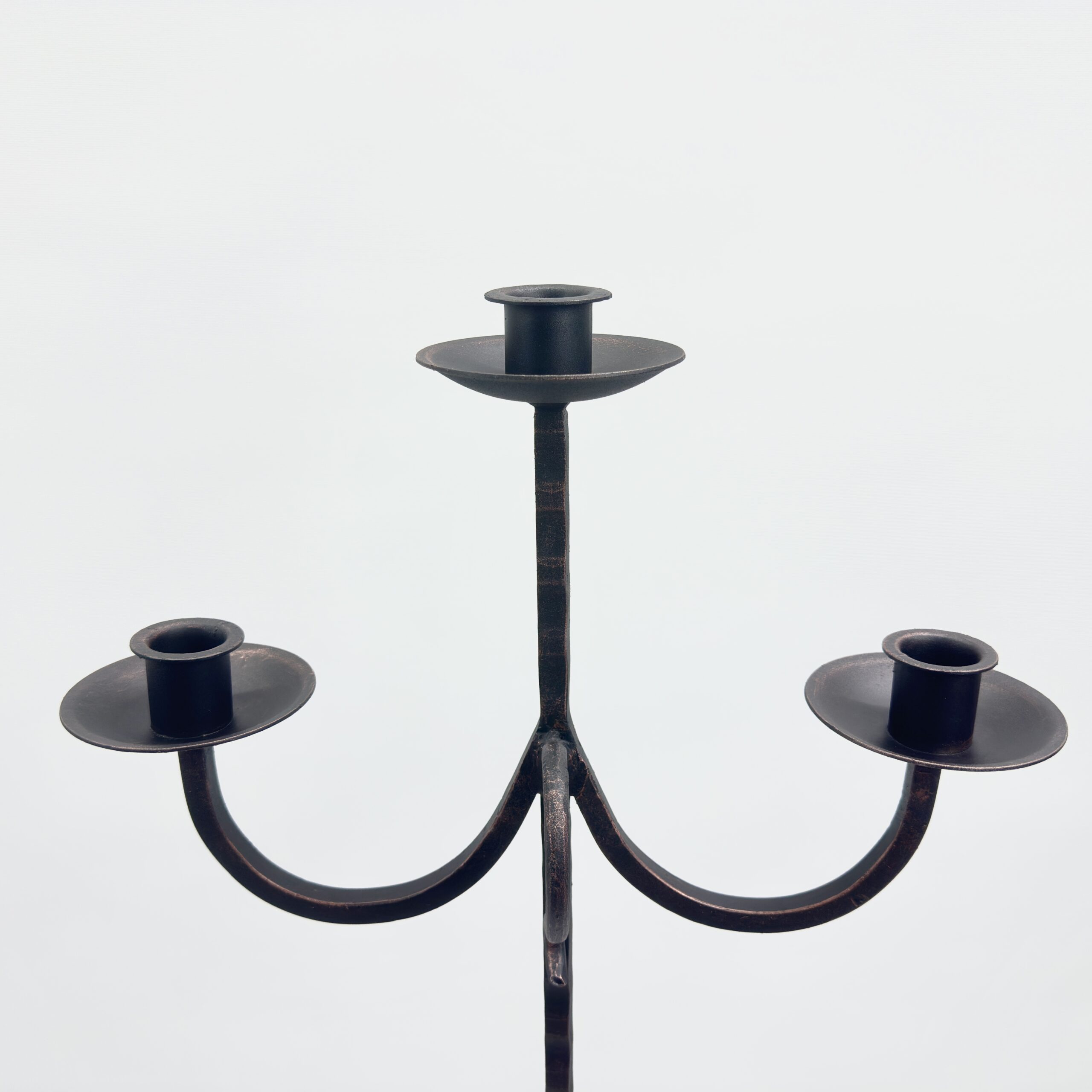 Hand Forged Iron Floor Candelabra 49″ (125cm) Antique Copper Patina 3-Arm Knot Detail Rustic Wedding Decor