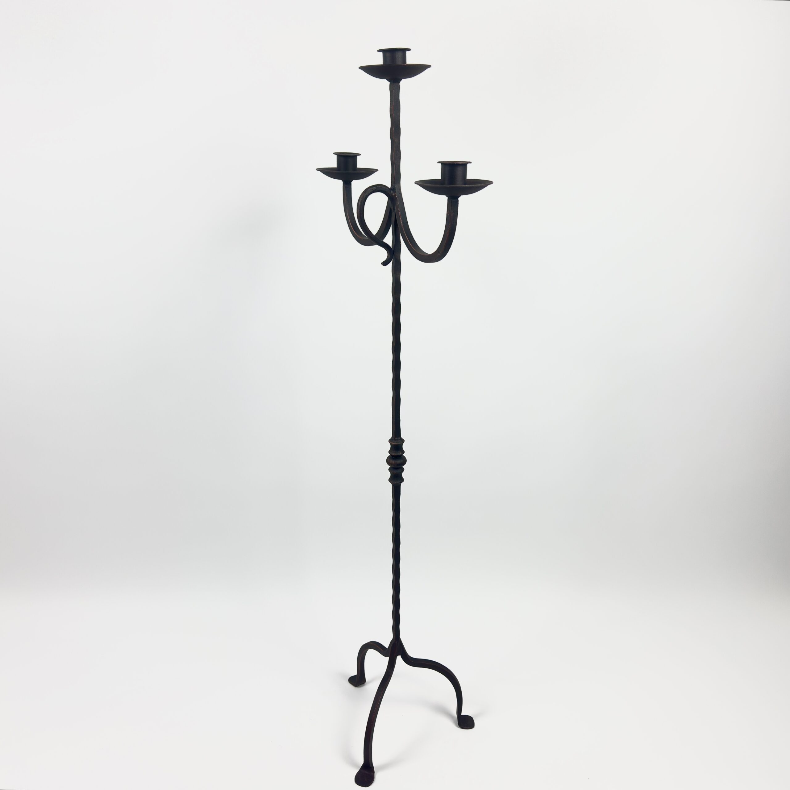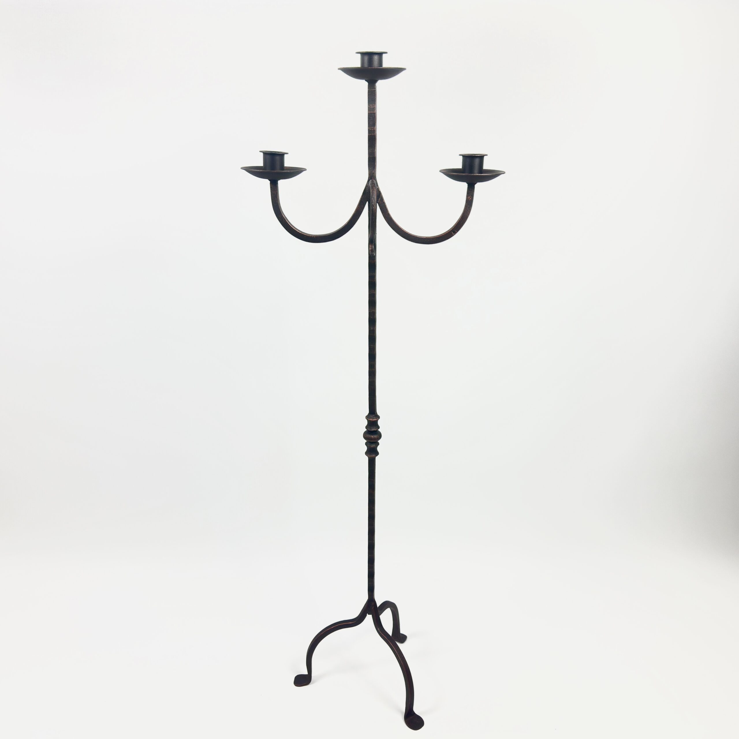 Elevate your interior decor with this sophisticated Hand-Forged Wrought Iron Floor Candelabra. Standing at 121 cm (47.5 inches), this model strikes a perfect balance between artistic flair and classic functionality.