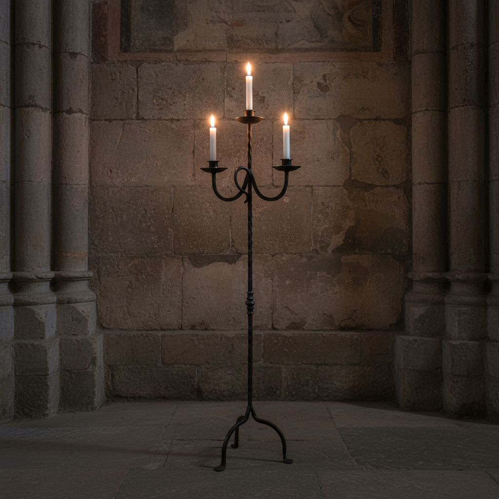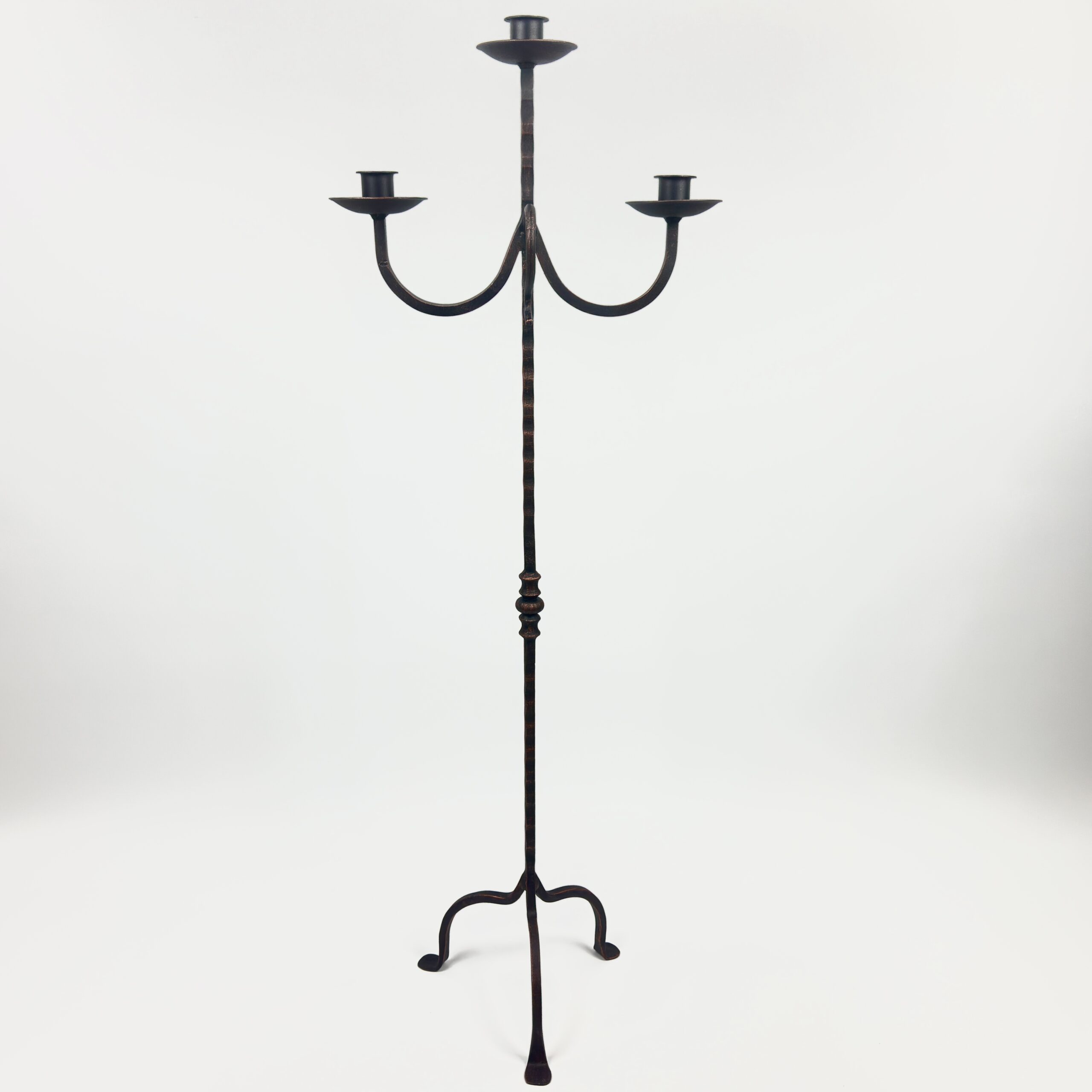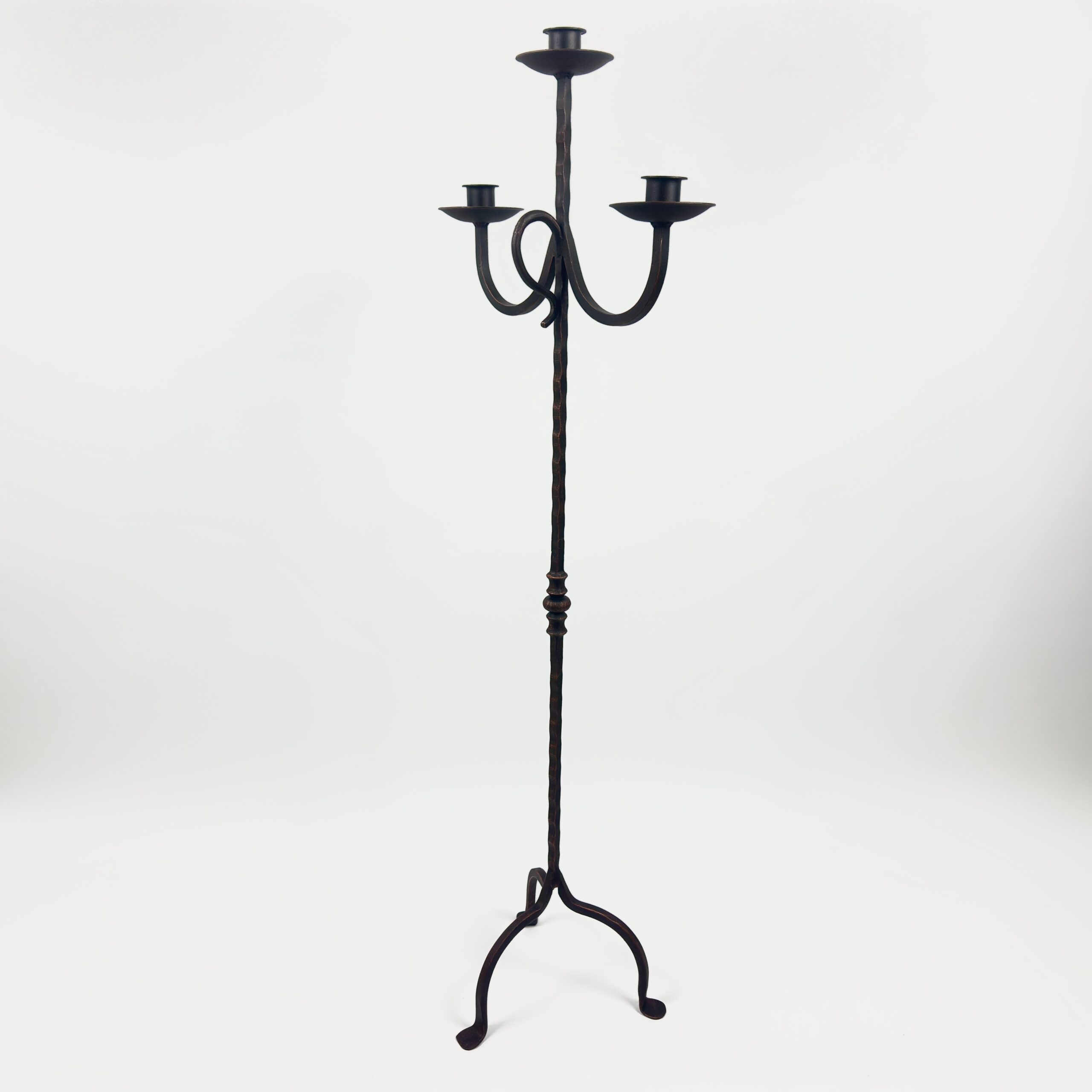 Elevate your interior lighting with this sophisticated Hand-Forged Wrought Iron Floor Candelabra. Standing at 122 cm (48 inches), this model perfectly balances traditional blacksmithing with a sleek, classic design.