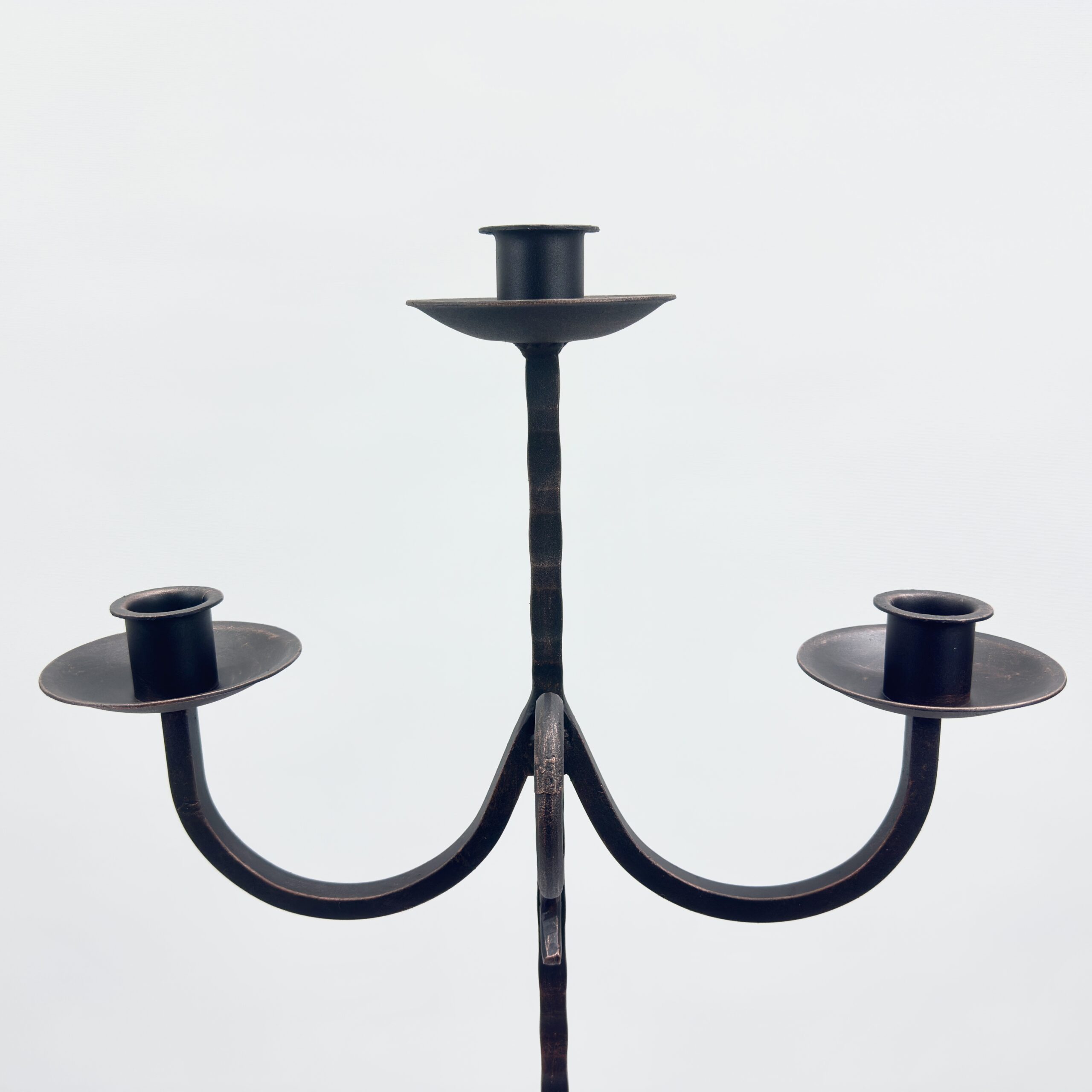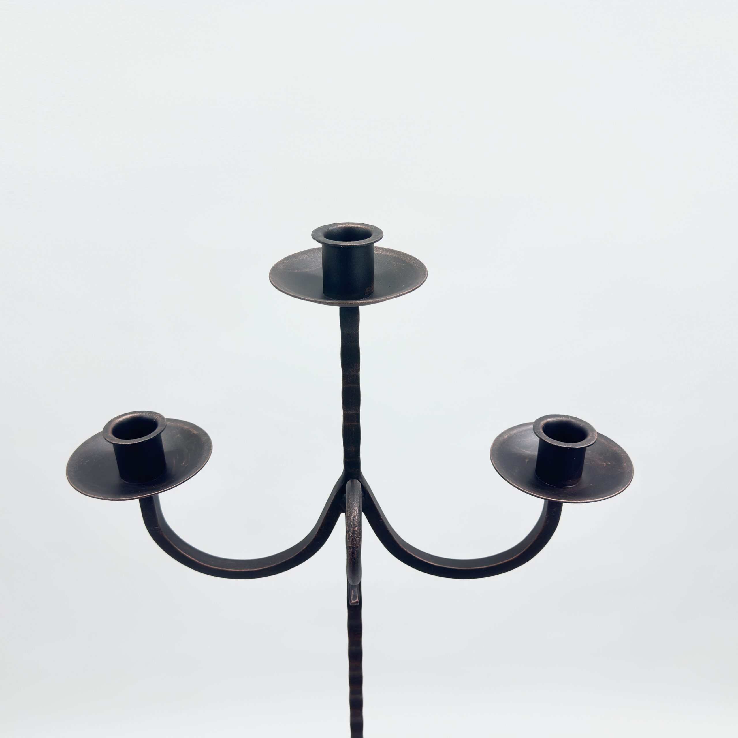Hand Forged Iron Floor Candelabra 49″ (125cm) Antique Copper Patina 3-Arm Knot Detail Rustic Wedding Decor