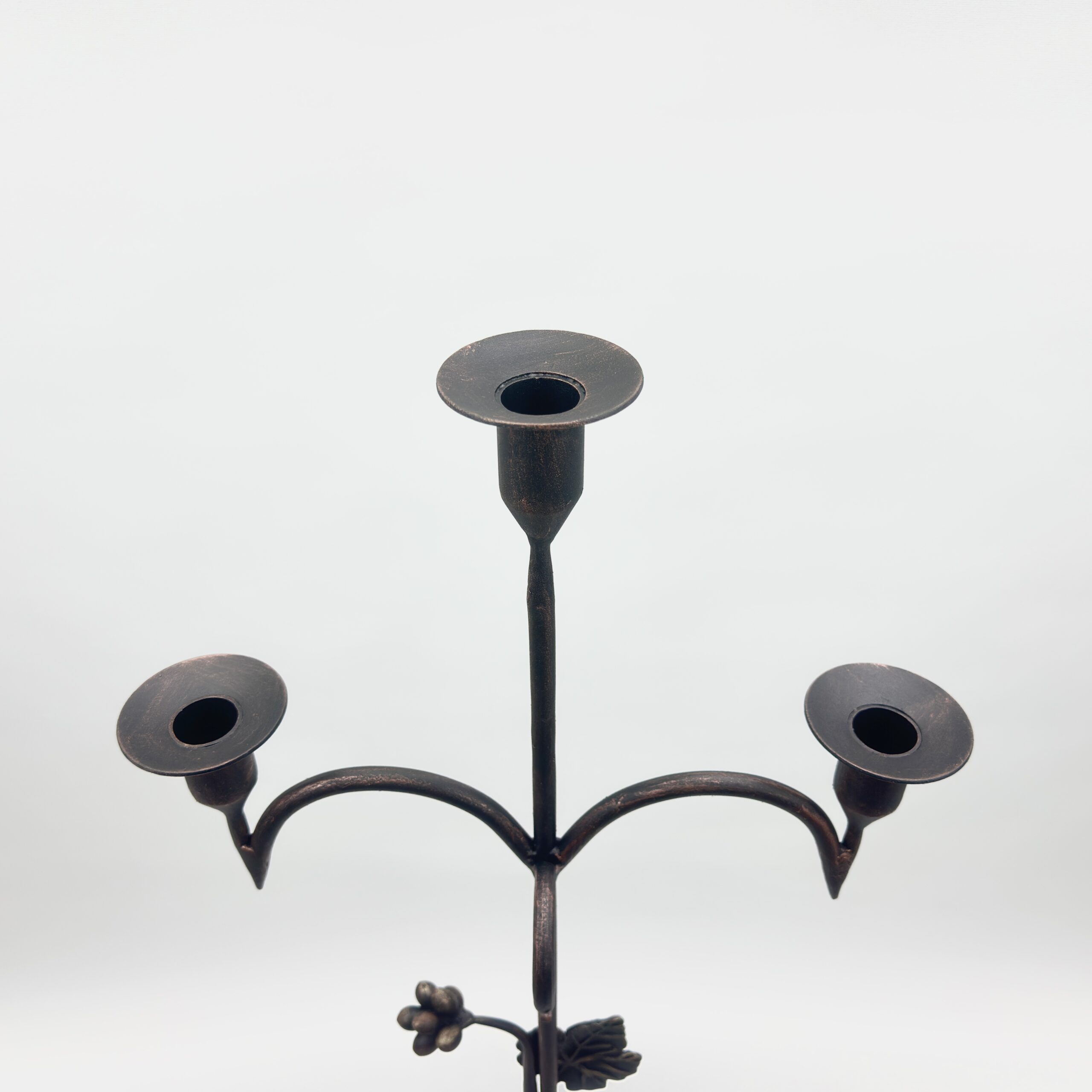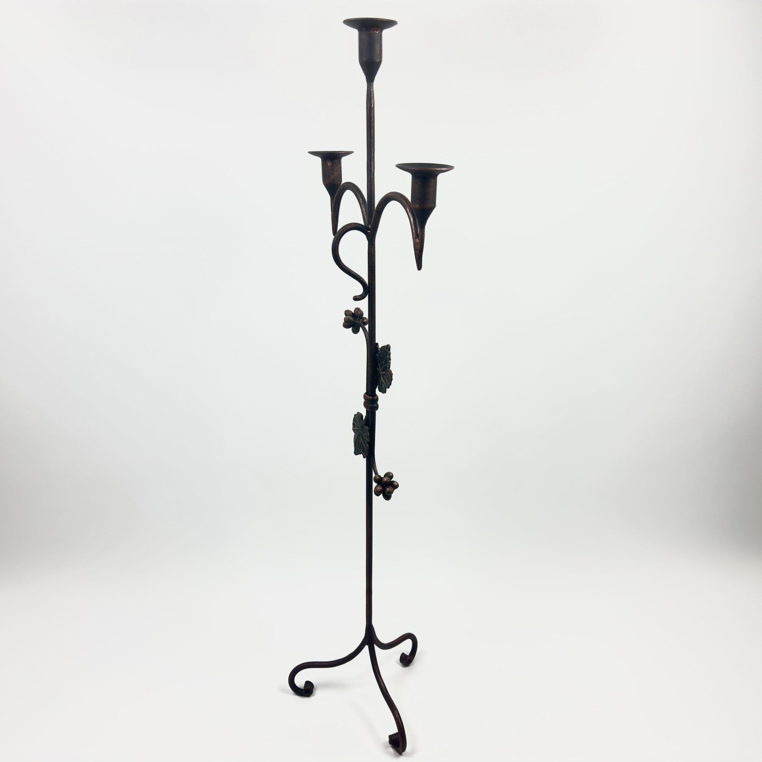 Hand Forged Wrought Iron Floor Candelabra 50″ (127cm) Antique Copper Patina 3-Arm Candle Holder Leaf Detail Rustic Wedding Decor