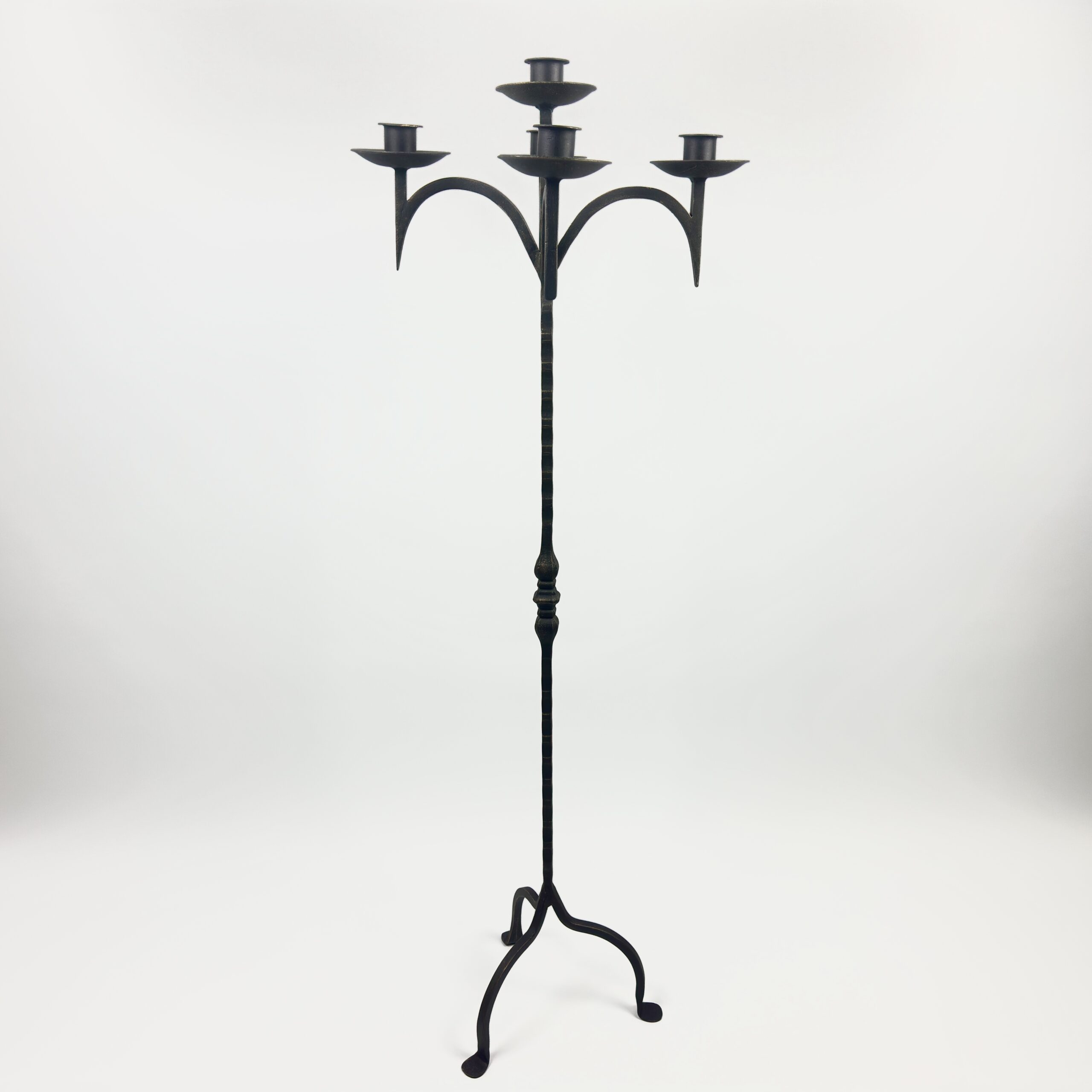 Hand Forged Iron Floor Candelabra 49″ (124cm) Antique Copper Patina 5-Arm Classic Candle Holder Gothic Church Decor
