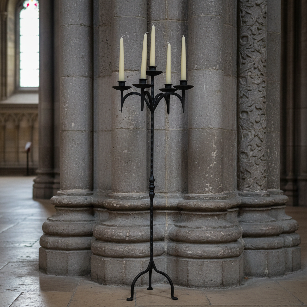 Make a bold statement of luxury with this Hand-Forged Wrought Iron Floor Candelabra. Standing at 123 cm (48.5 inches), this 5-arm masterpiece is designed to be the crowning jewel of your decor, combining the strength of iron with the elegance of gold.
