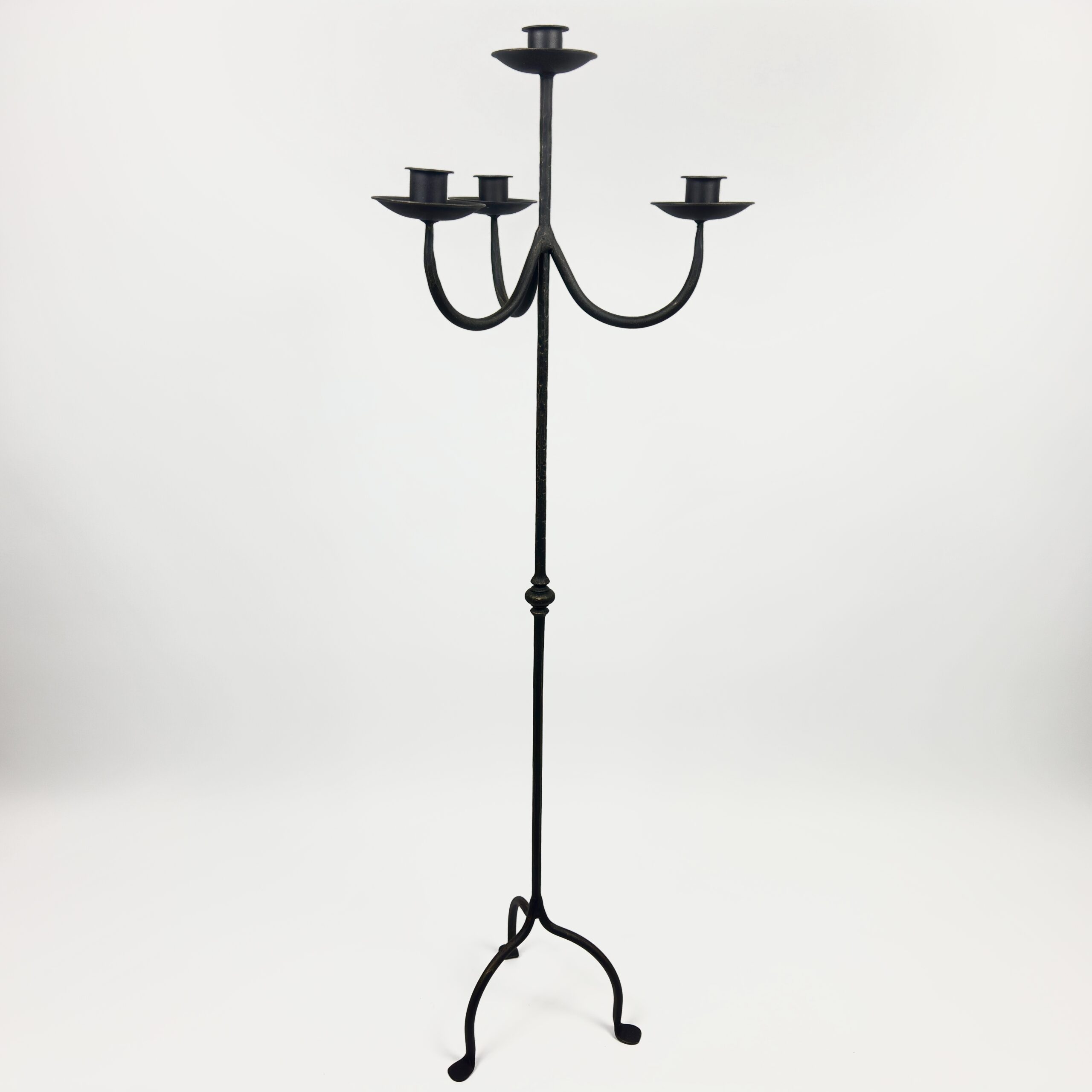 Create a captivating focal point in your home with this Hand-Forged Wrought Iron Floor Candelabra. Standing at 123 cm (48.5 inches), this model offers a sophisticated twist on traditional lighting with its unique “1+3” configuration.