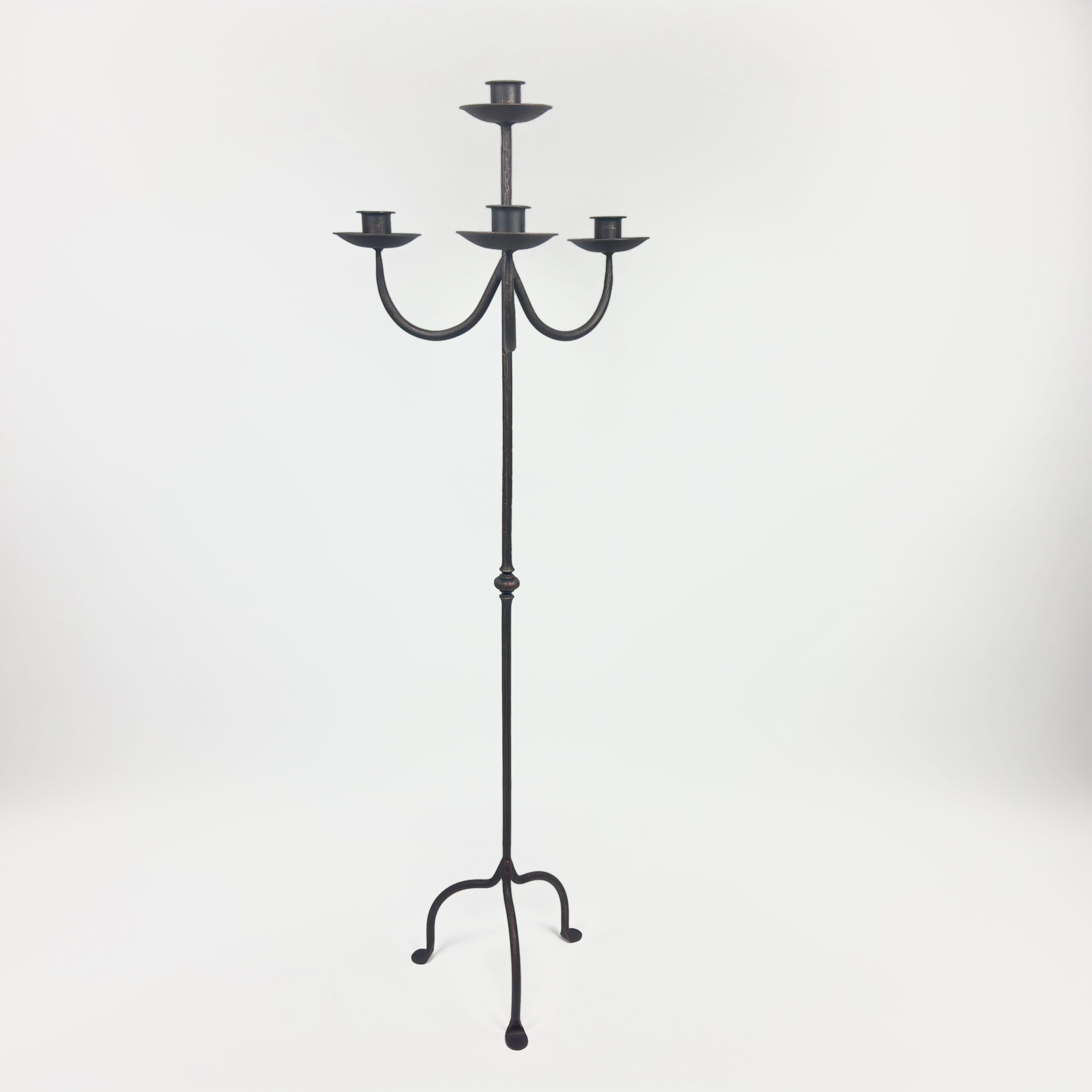 Hand Forged Wrought Iron Floor Candelabra 50″ (127cm) Antique Copper Patina 5-Arm Candle Holder Gothic Medieval Church Decor