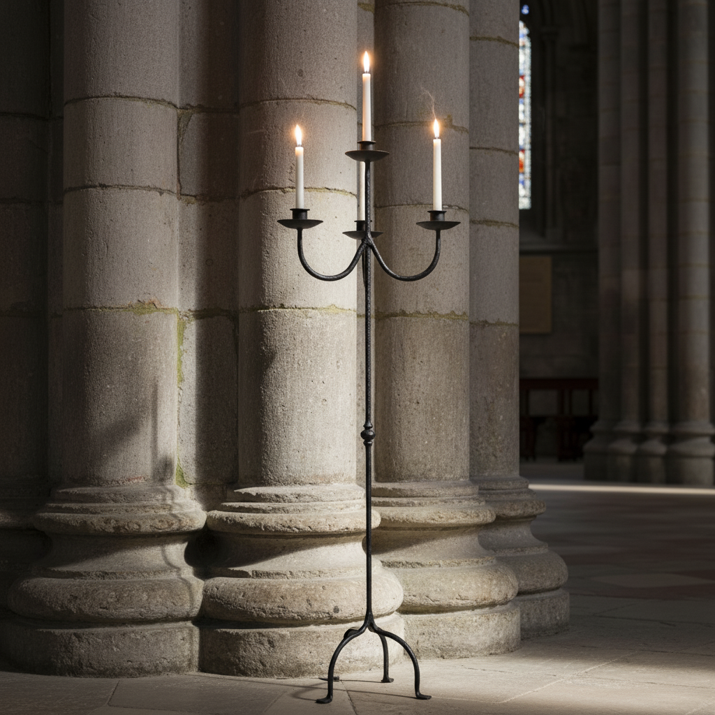 The “Twisted” Stem: The central iron rod is heated and manually twisted into a rope pattern. This classic detail adds texture and breaks the monotony of the metal, catching the light beautifully.