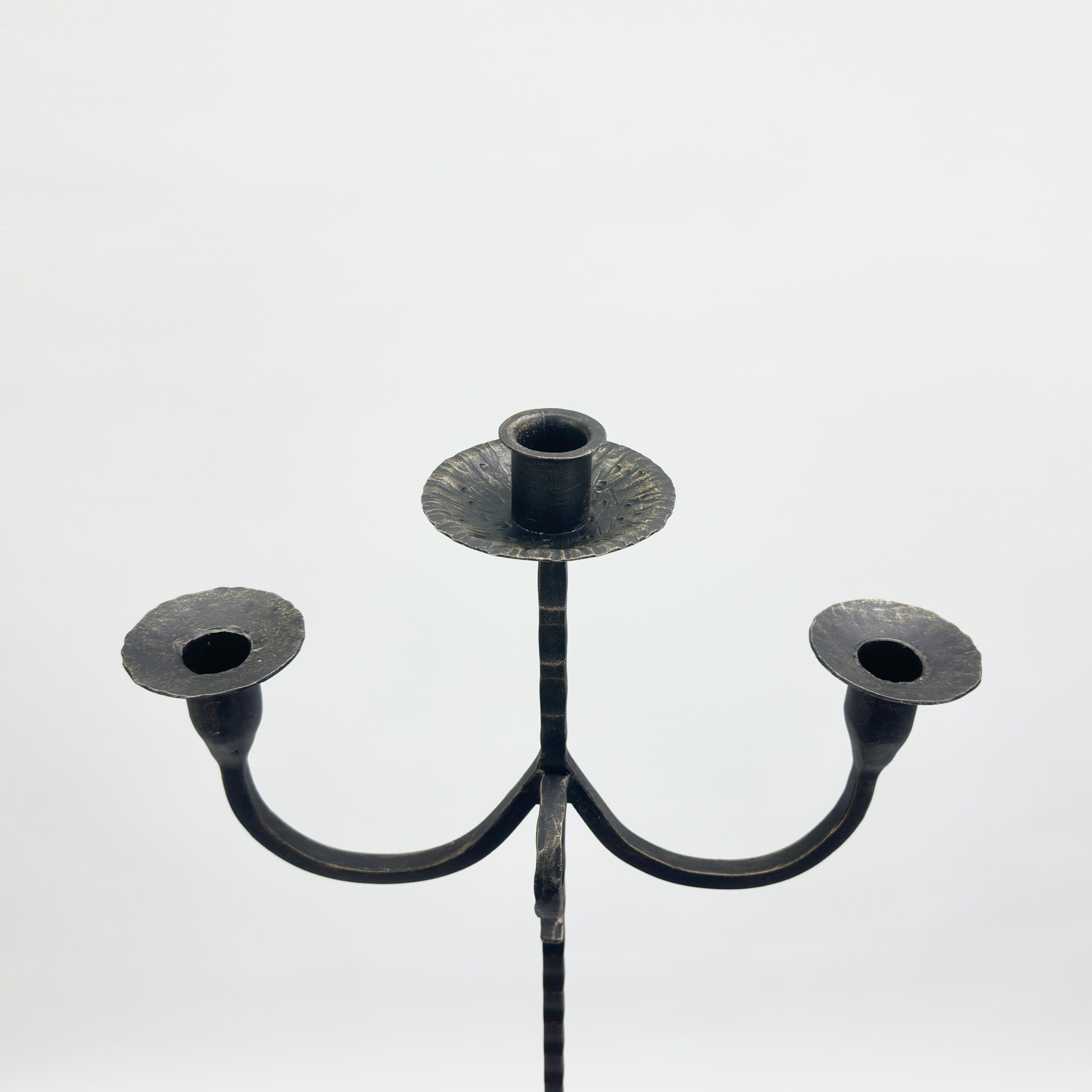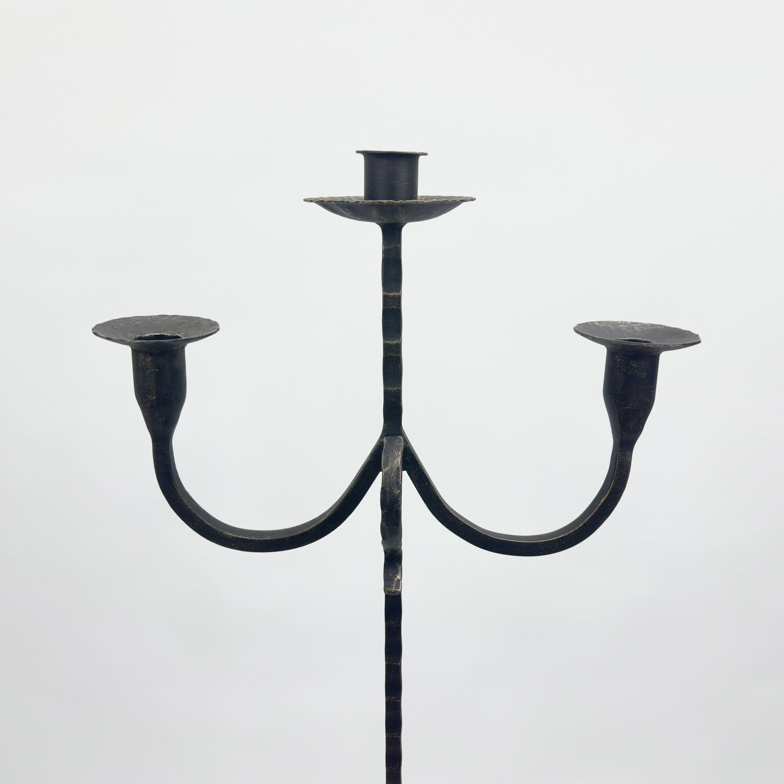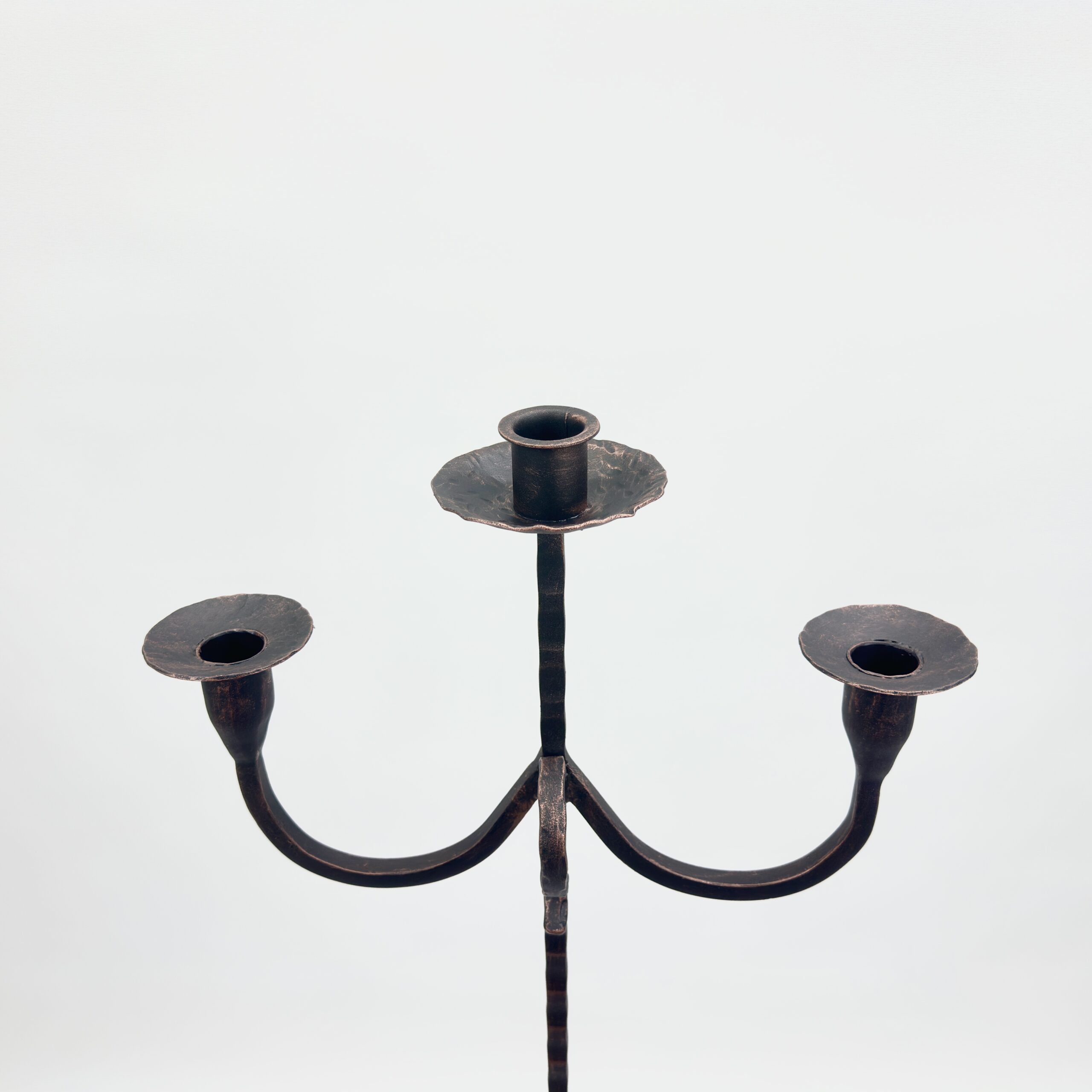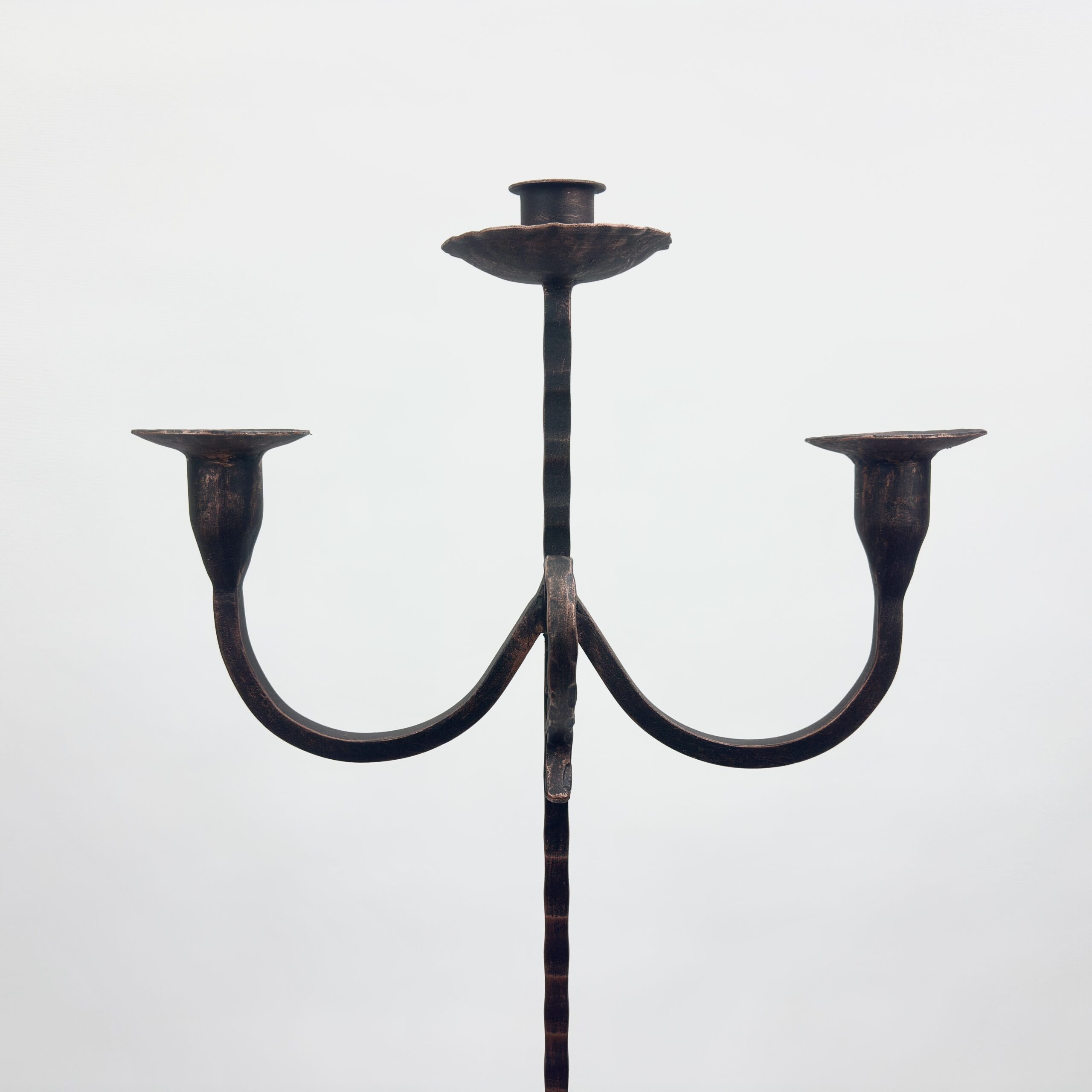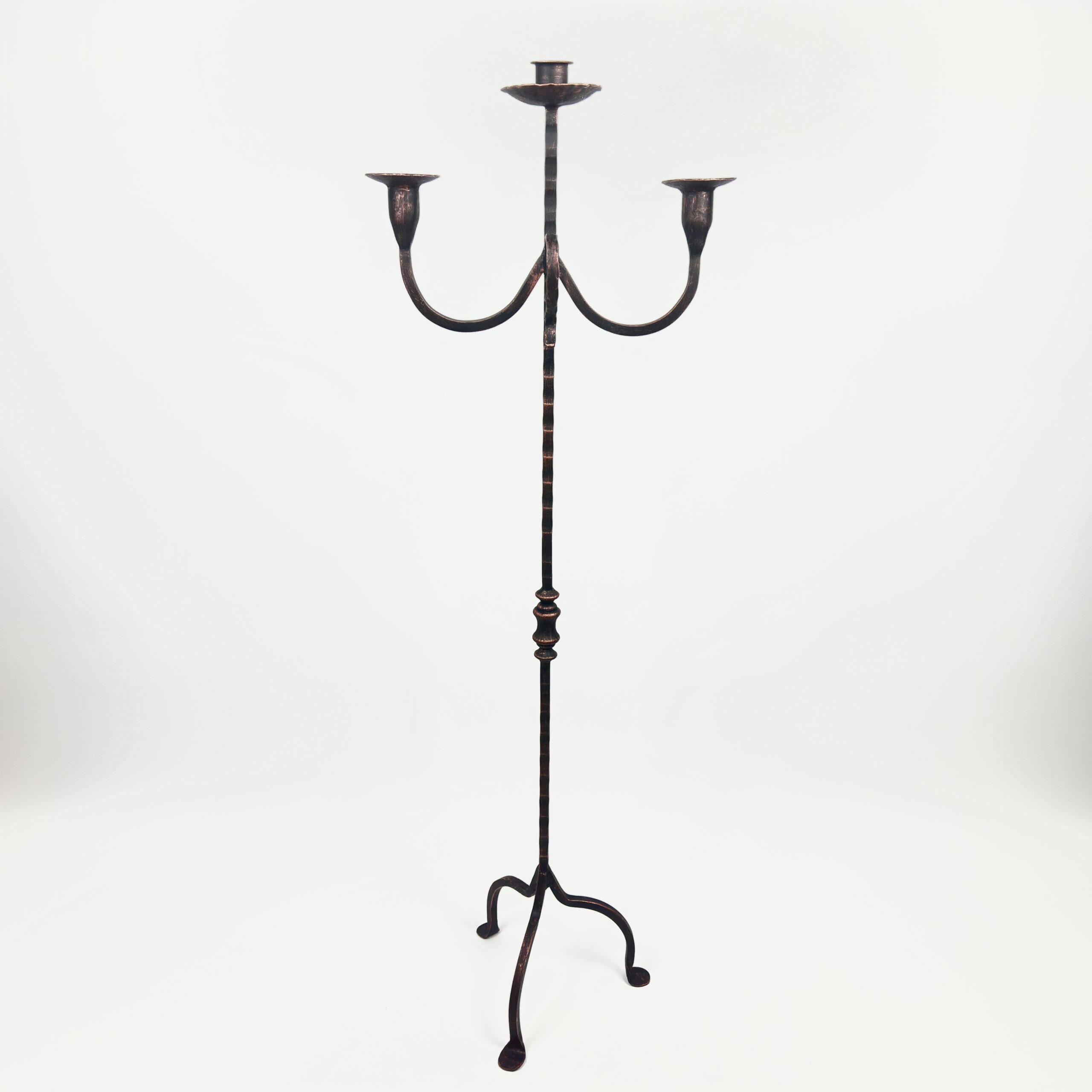 Hand Forged Wrought Iron Floor Candelabra 48″ (123cm) 3-Arm Candle Holder Antique Copper or Gold Patina Choice Rustic Wedding Decor