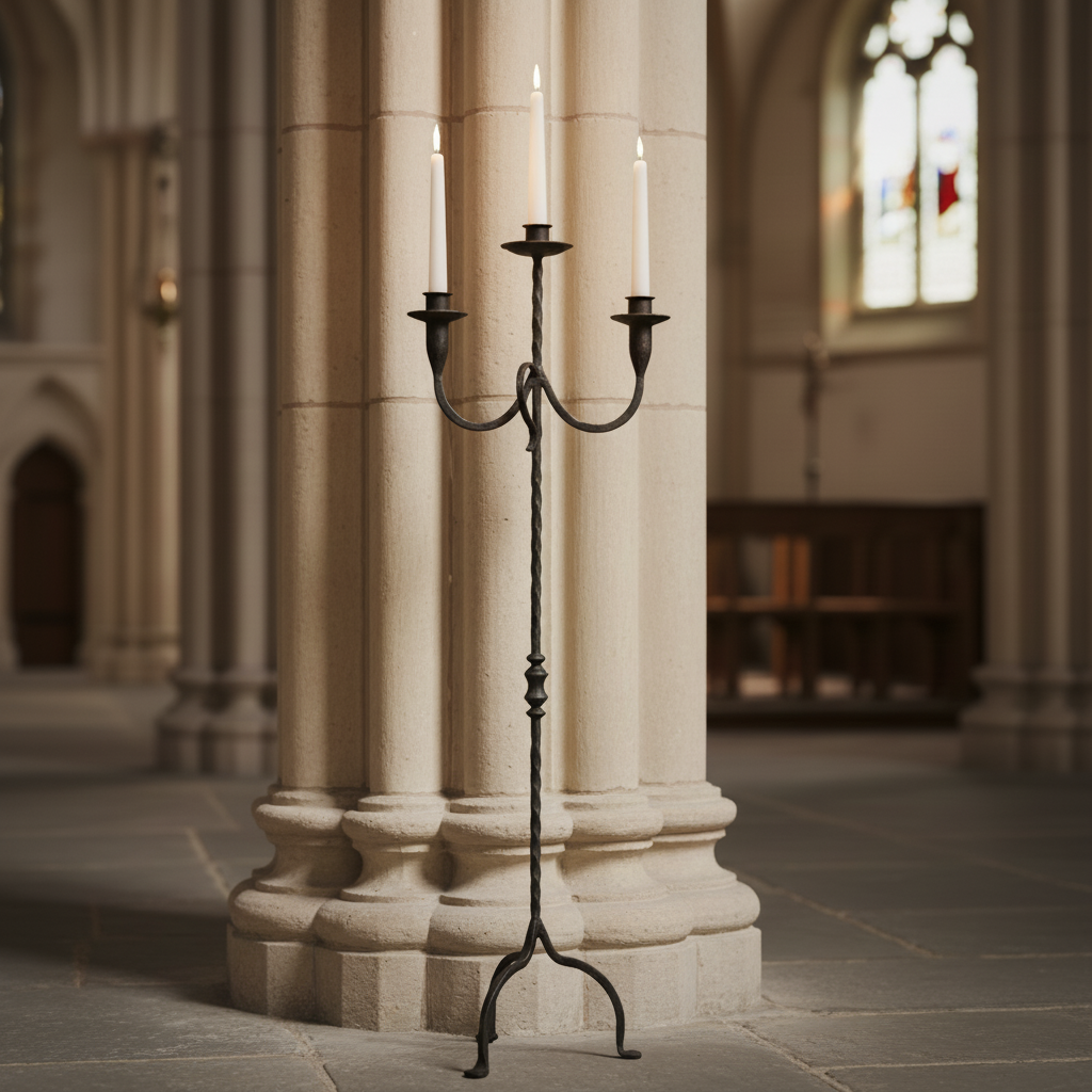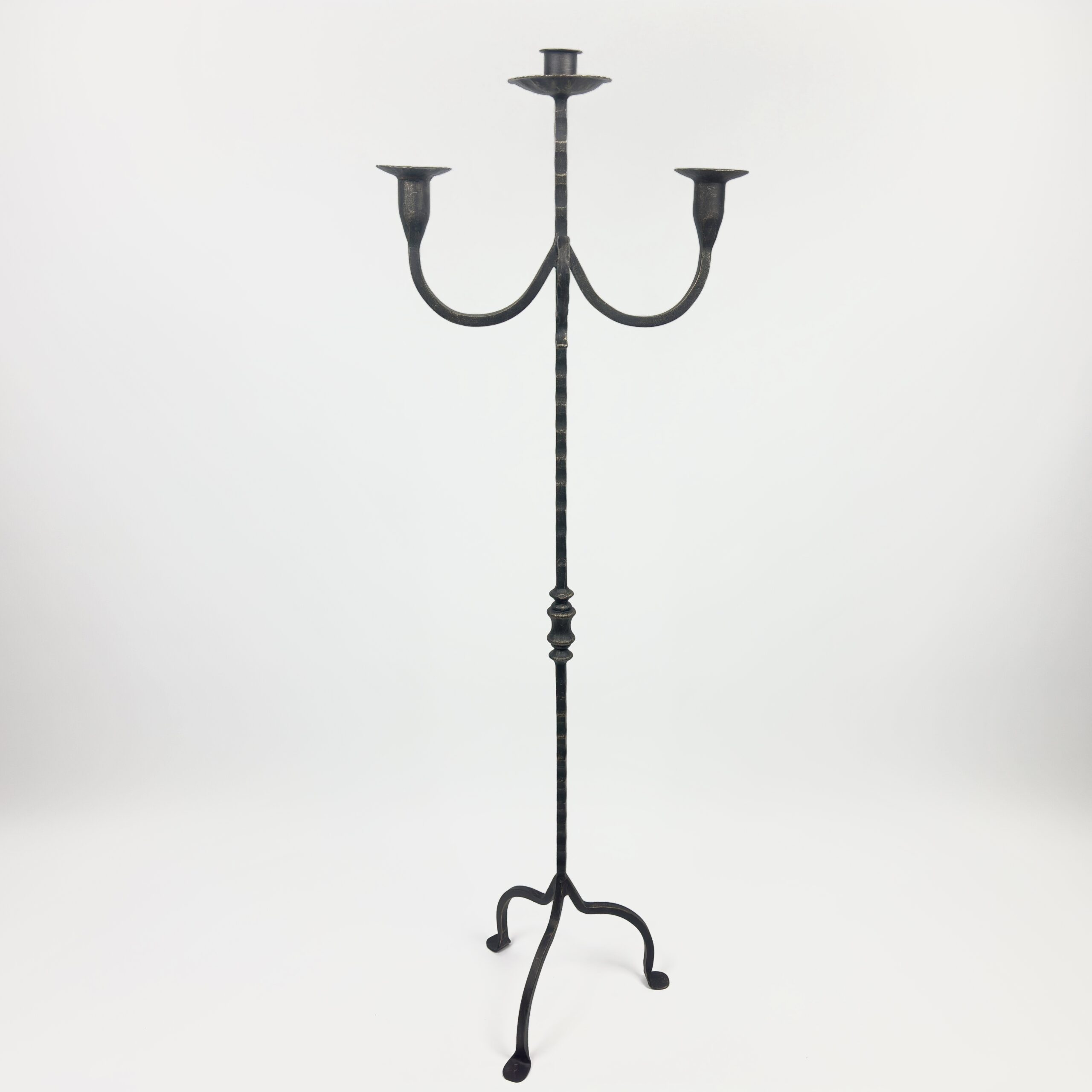 Add a touch of enduring style to your home with this Hand-Forged Wrought Iron Floor Candelabra. Standing at 124 cm (49 inches), this model celebrates the beauty of traditional blacksmithing with a clean, classic design that never goes out of style.