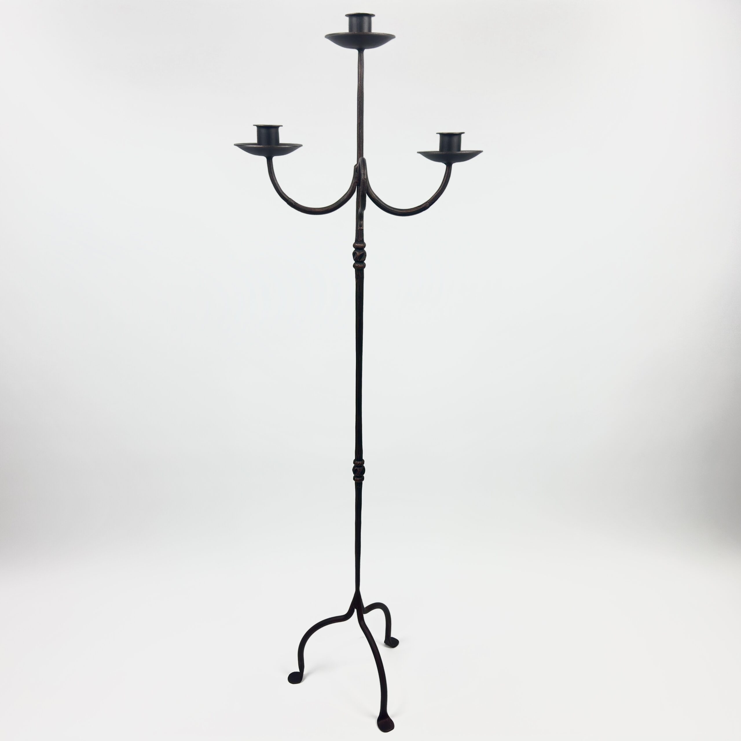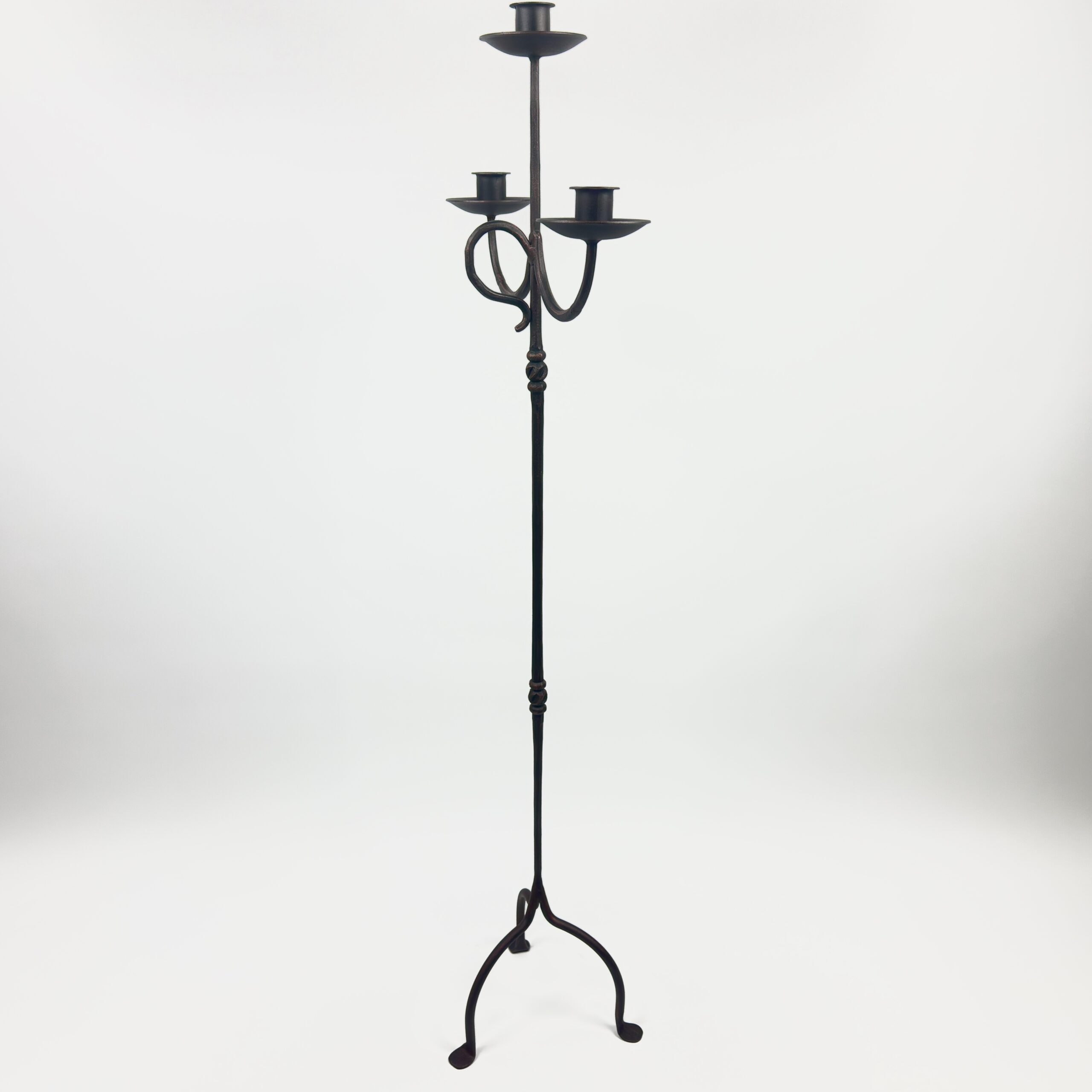 Find the perfect fit for your decor with this Hand-Forged Wrought Iron Floor Candelabra. Standing at 124 cm (49 inches) with a 39 cm (15.3 inch) base, this model is designed for homeowners who want the elegance of a floor candelabra without a massive footprint.