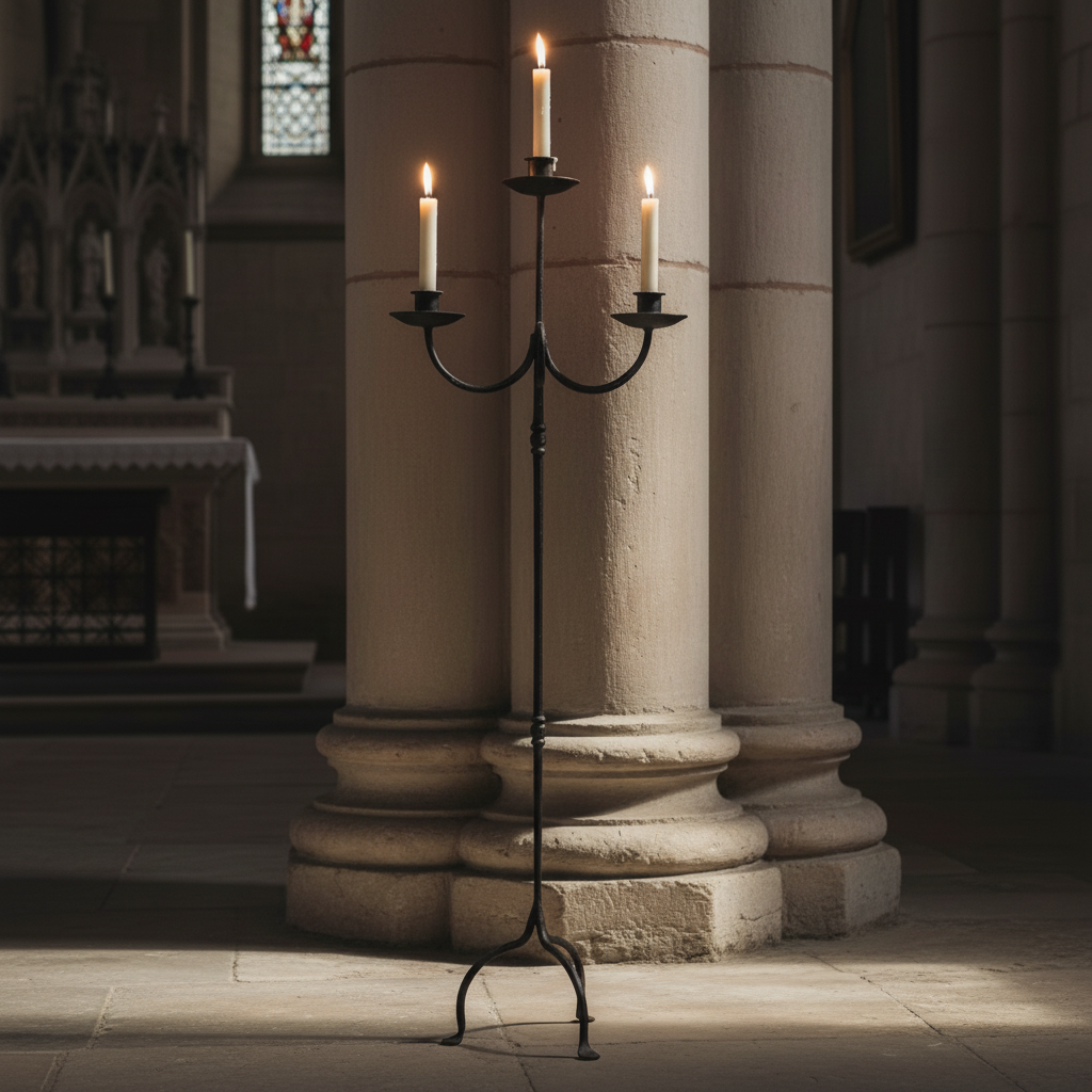 Timeless Silhouette: The simple central stem and curved arms focus on the quality of the material and the skill of the blacksmith, rather than overly complex ornamentation.