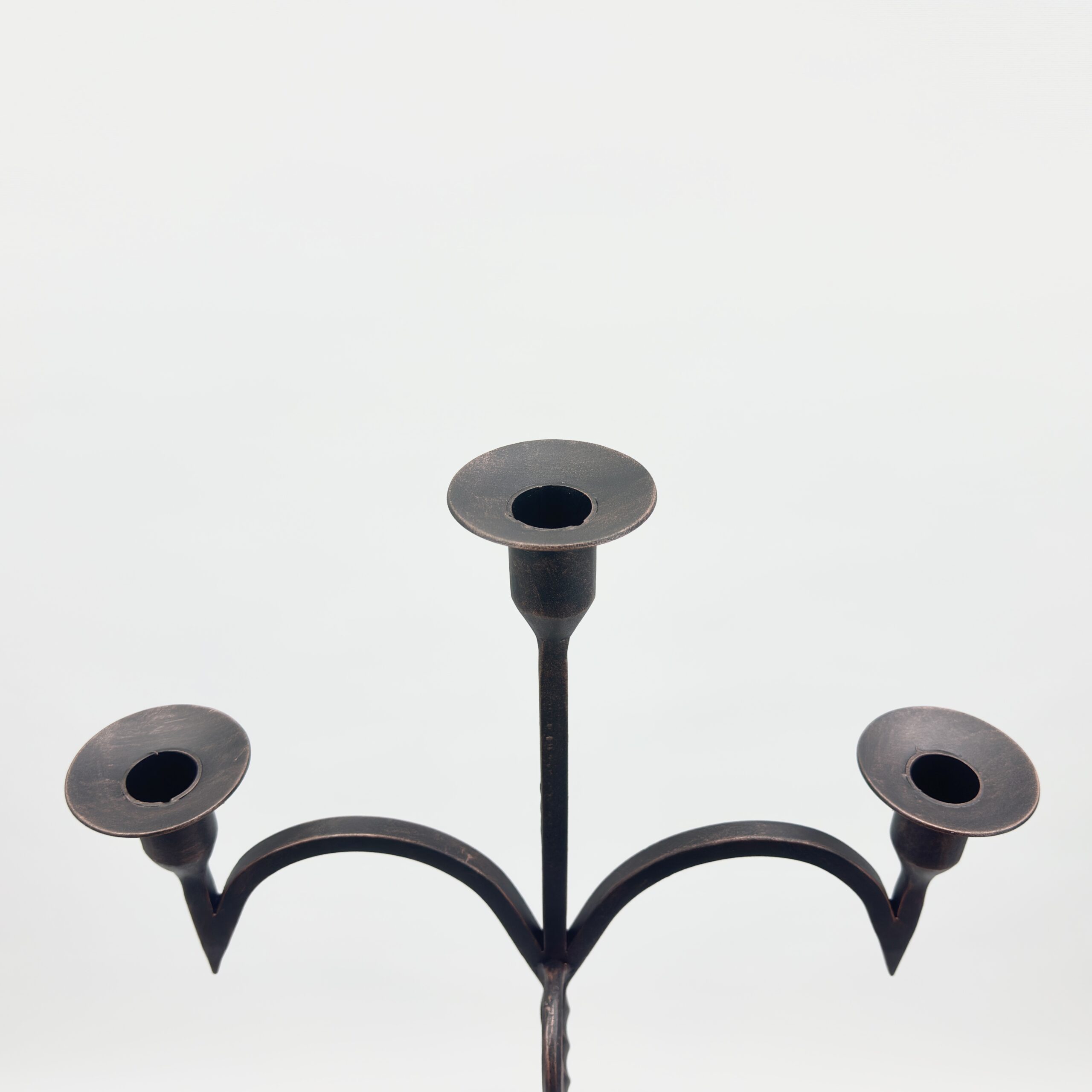 Hand Forged Iron Candelabra 48″ (123cm) Antique Copper or Gold Patina 3-Arm Lily Cup Candle Holder Rustic Wedding Decor