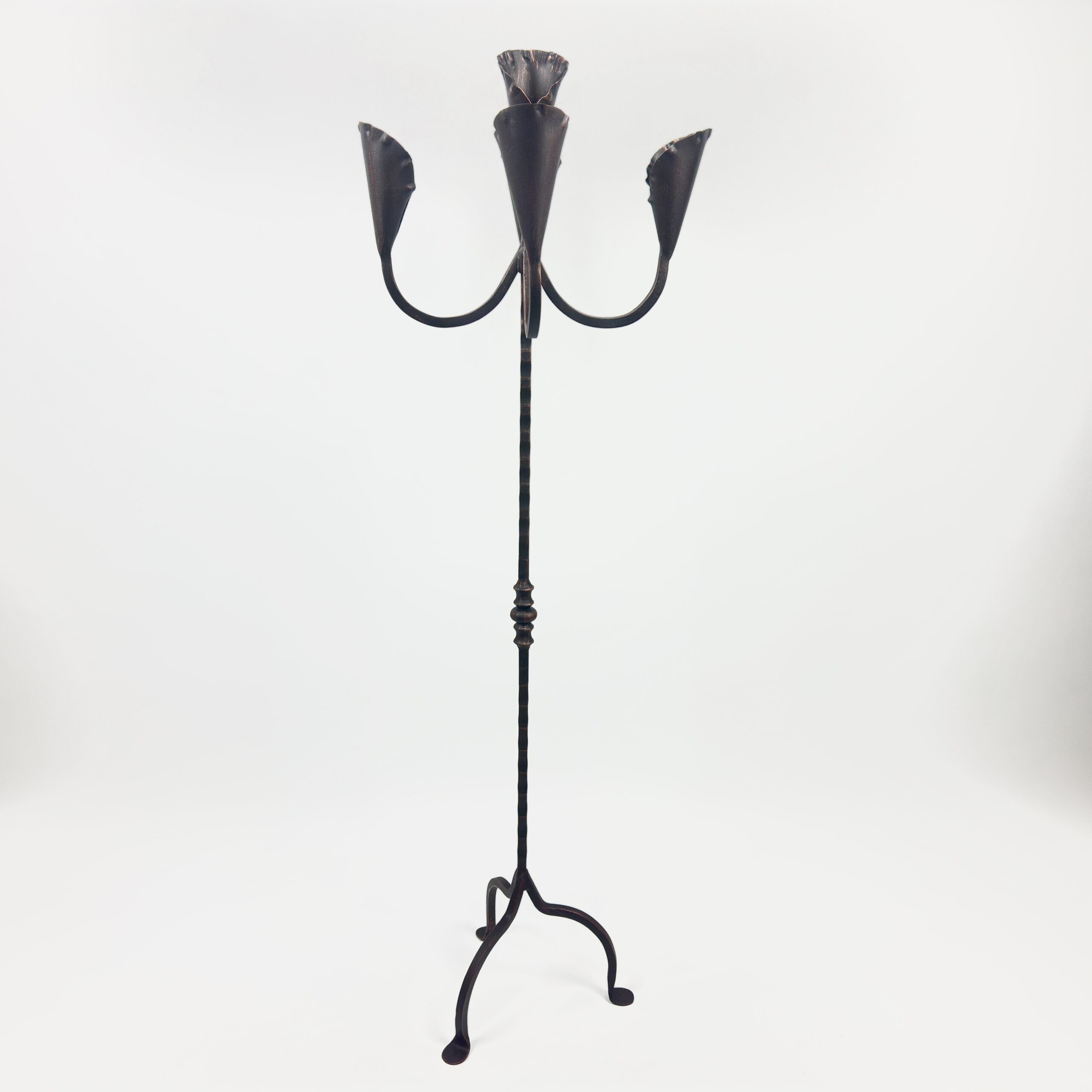 Hand Forged Iron Floor Candelabra 49″ (124cm) Antique Copper Patina 5-Arm Lily Cup Candle Holder Rustic Church Decor