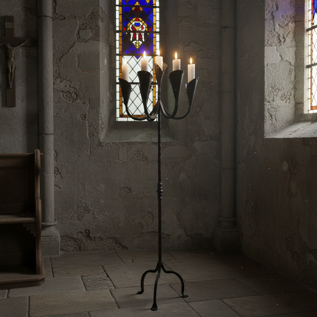 Hand Forged Iron Floor Candelabra 49″ (124cm) Antique Copper Patina 5-Arm Classic Candle Holder Gothic Church Decor