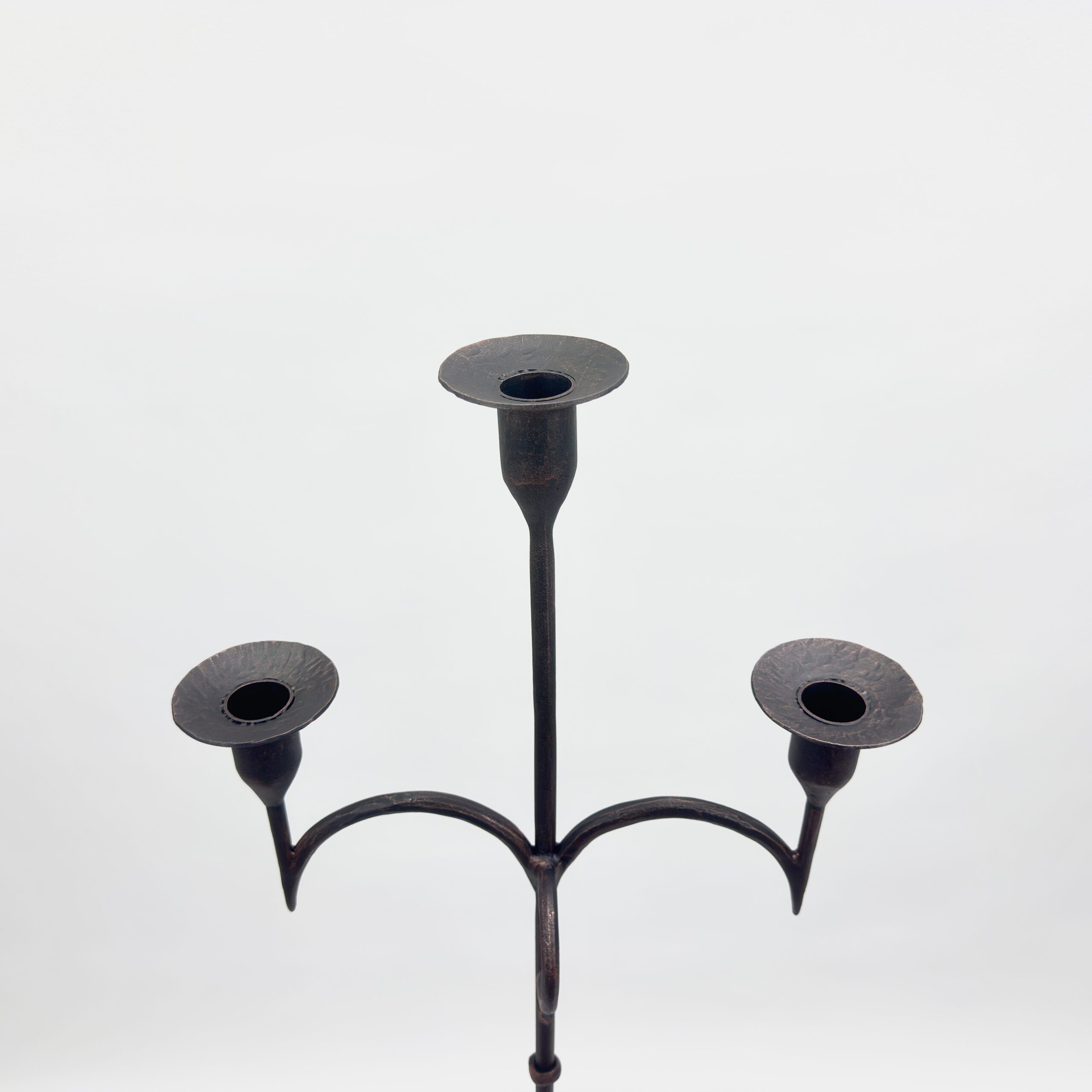 Hand Forged Iron Floor Candelabra 49″ (125cm) Antique Copper Patina 3-Arm Knot Detail Rustic Wedding Decor