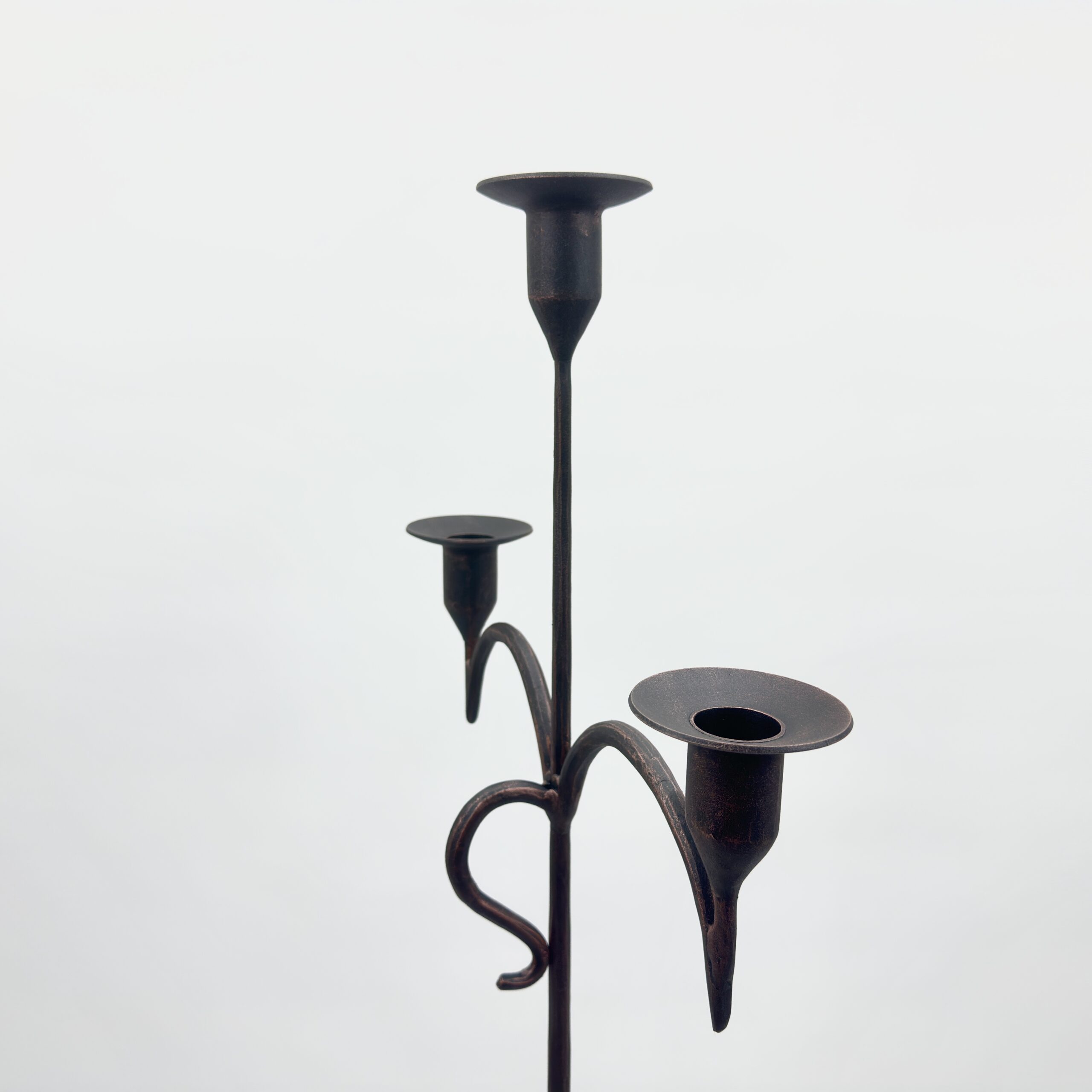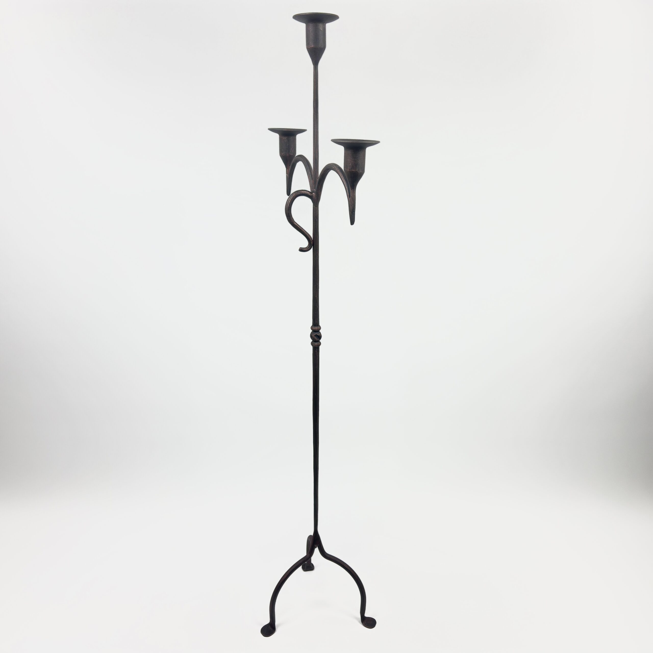 Hand Forged Iron Floor Candelabra 49″ (125cm) Antique Copper Patina 3-Arm Slim Base Candle Holder Rustic Decor