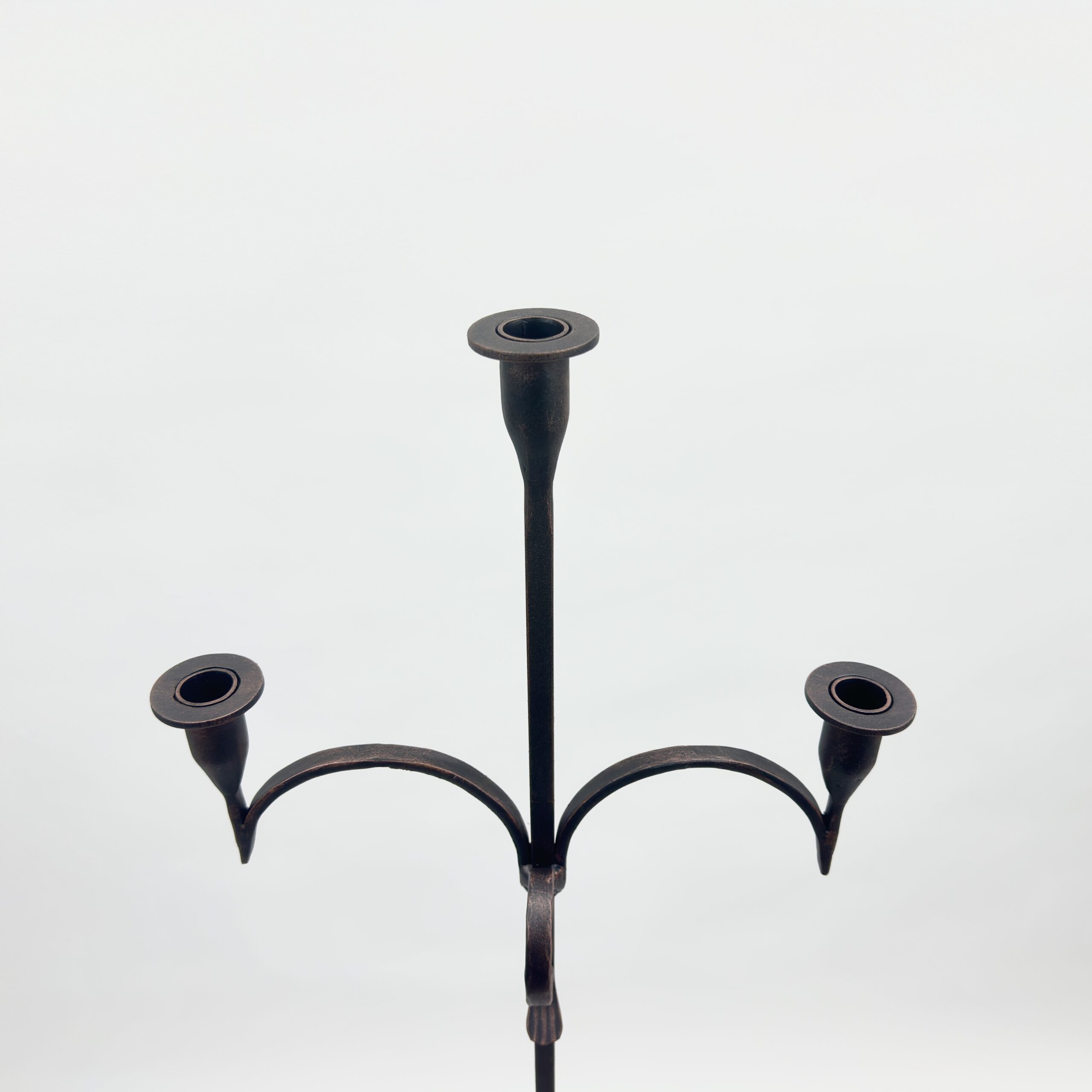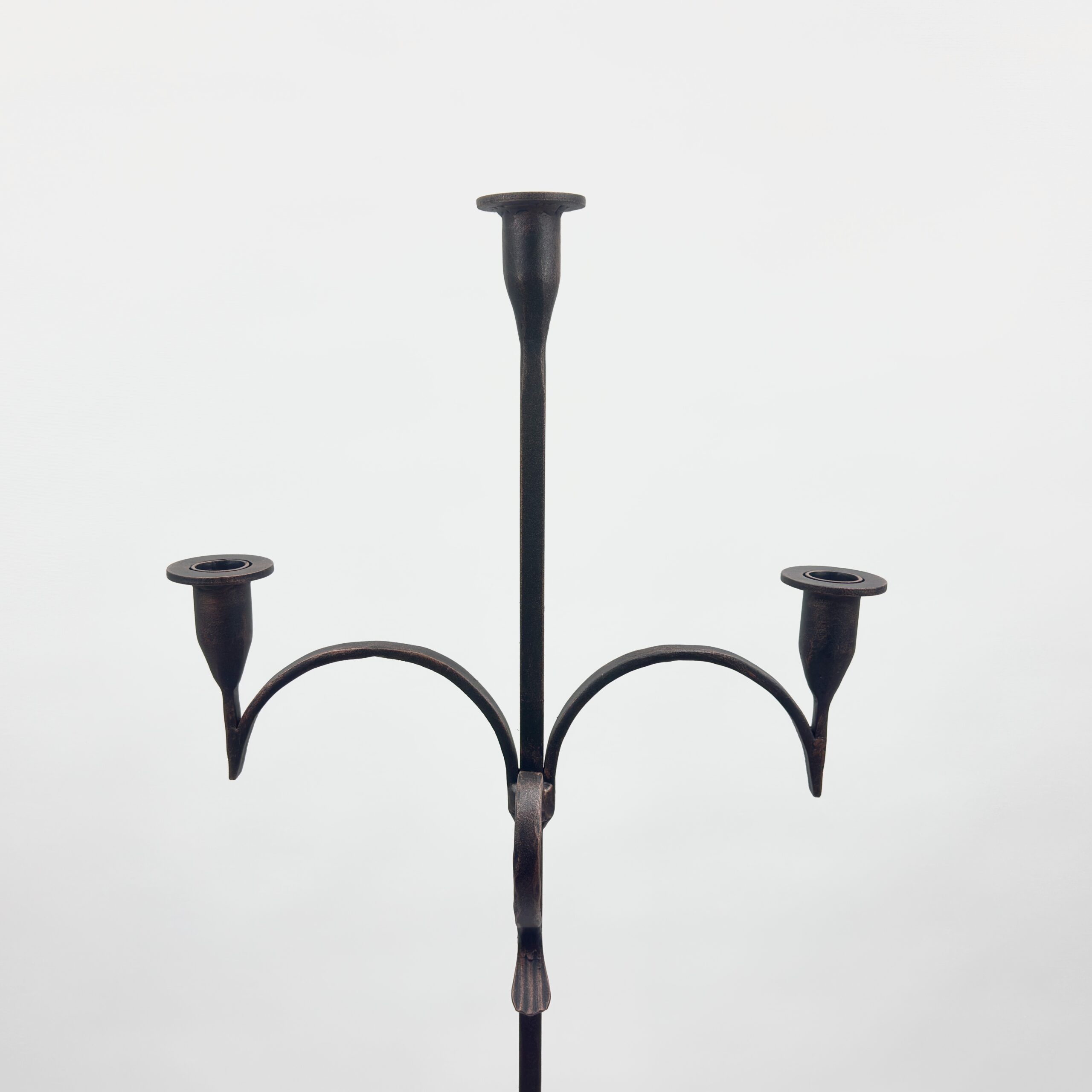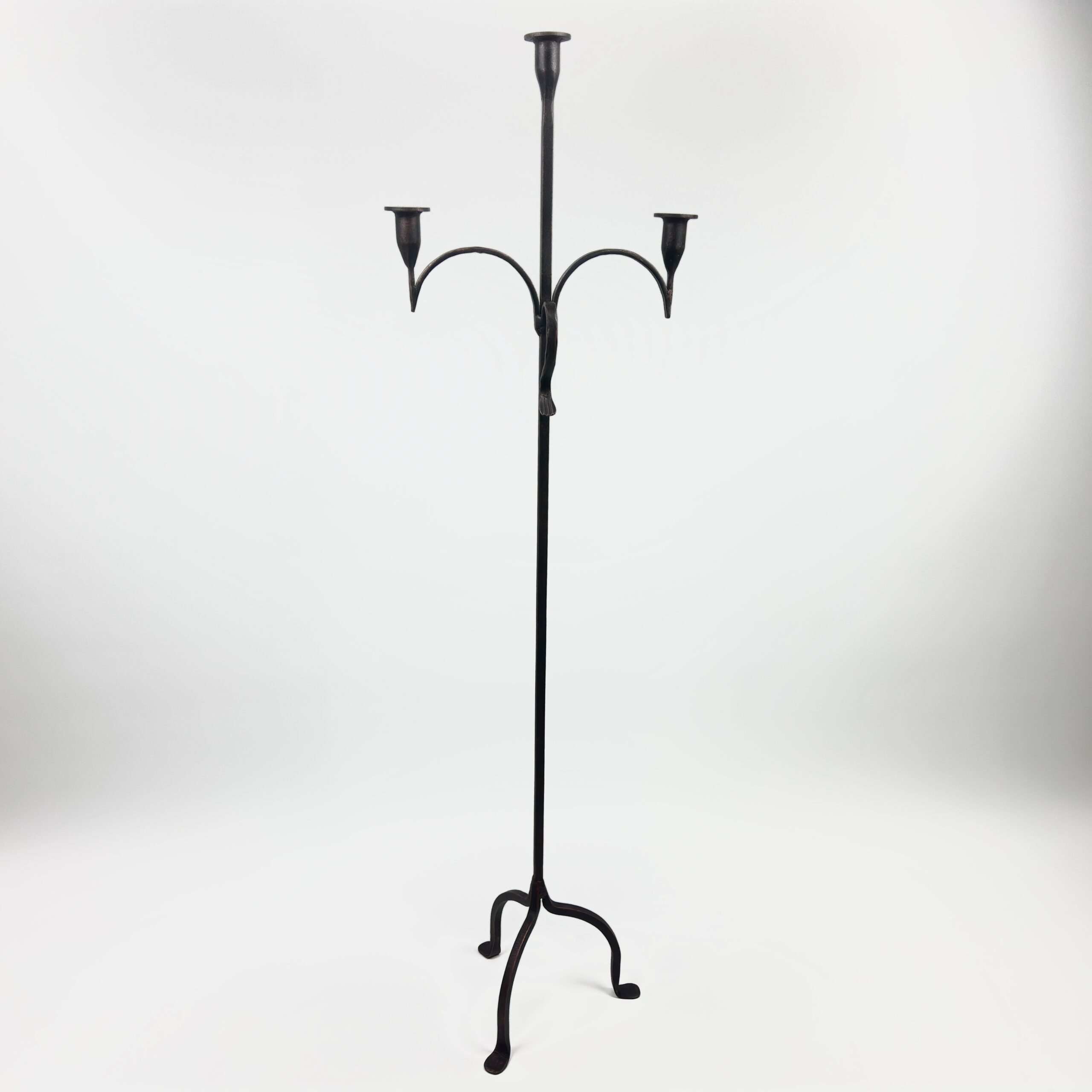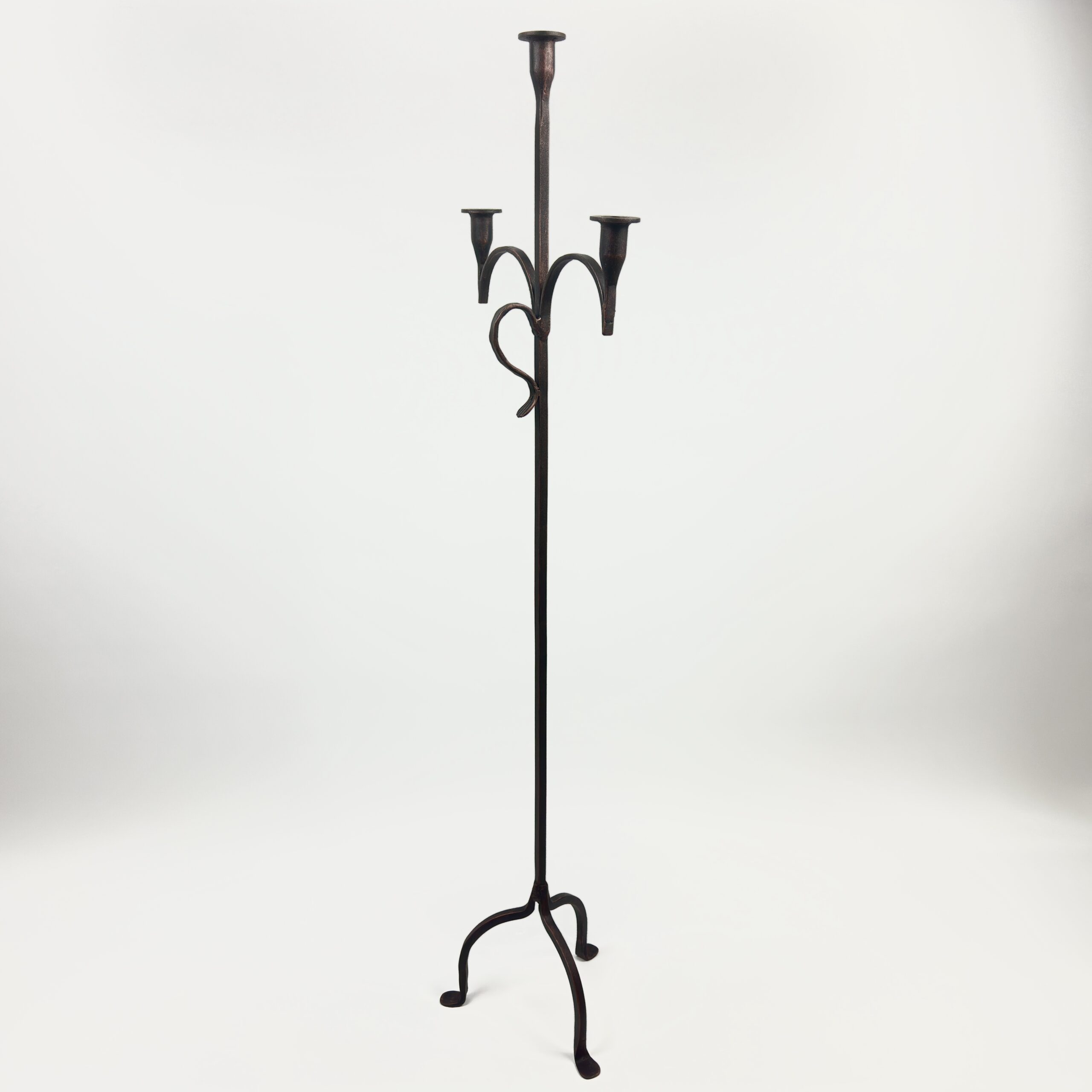 Hand Forged Iron Floor Candelabra 50.5″ (128cm) Antique Copper Patina 3-Arm Twist & Scroll Design Rustic Wedding Decor
