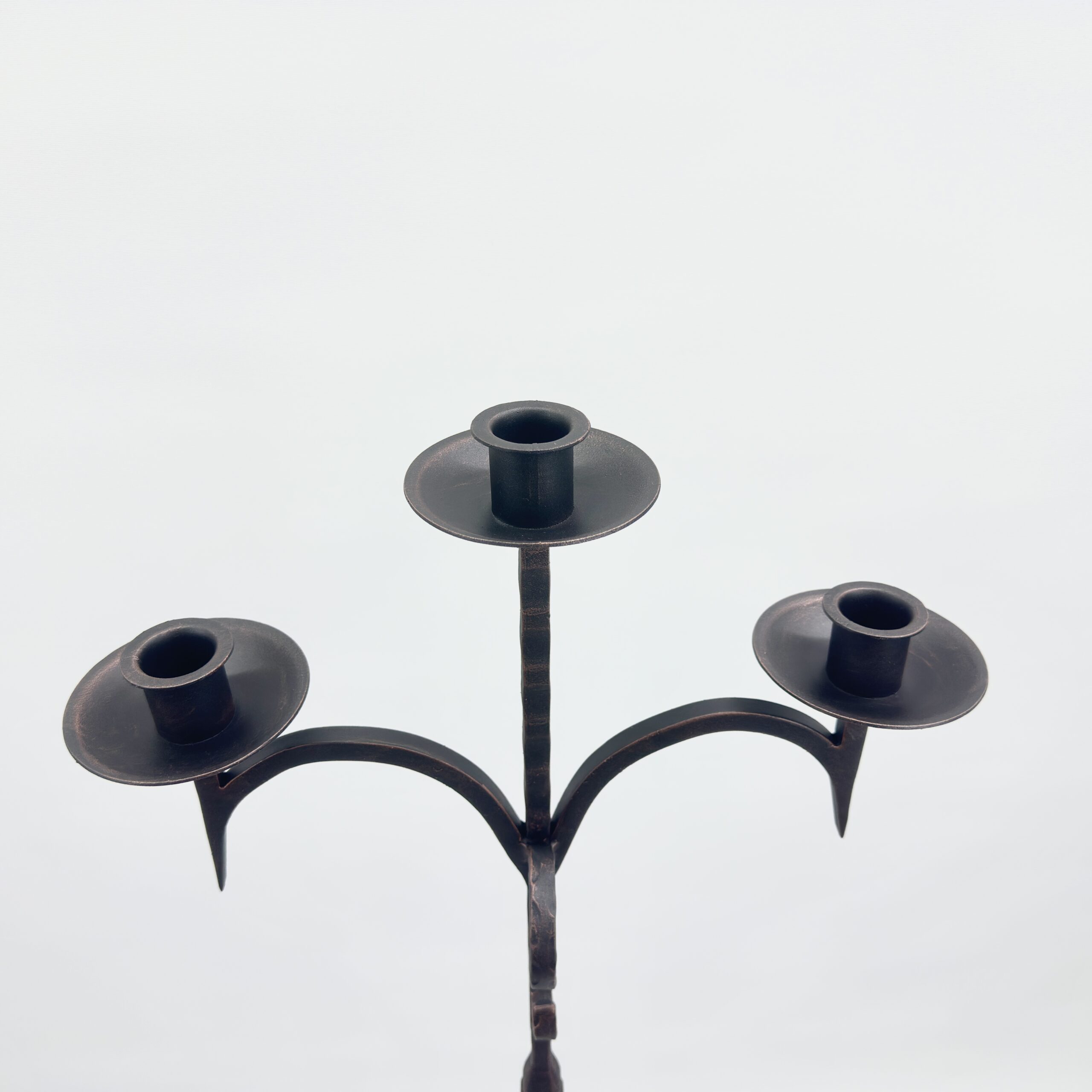 Hand Forged Iron Floor Candelabra 52″ (133cm) Antique Copper Patina 3-Arm Classic Plate Candle Holder Tall Rustic Decor