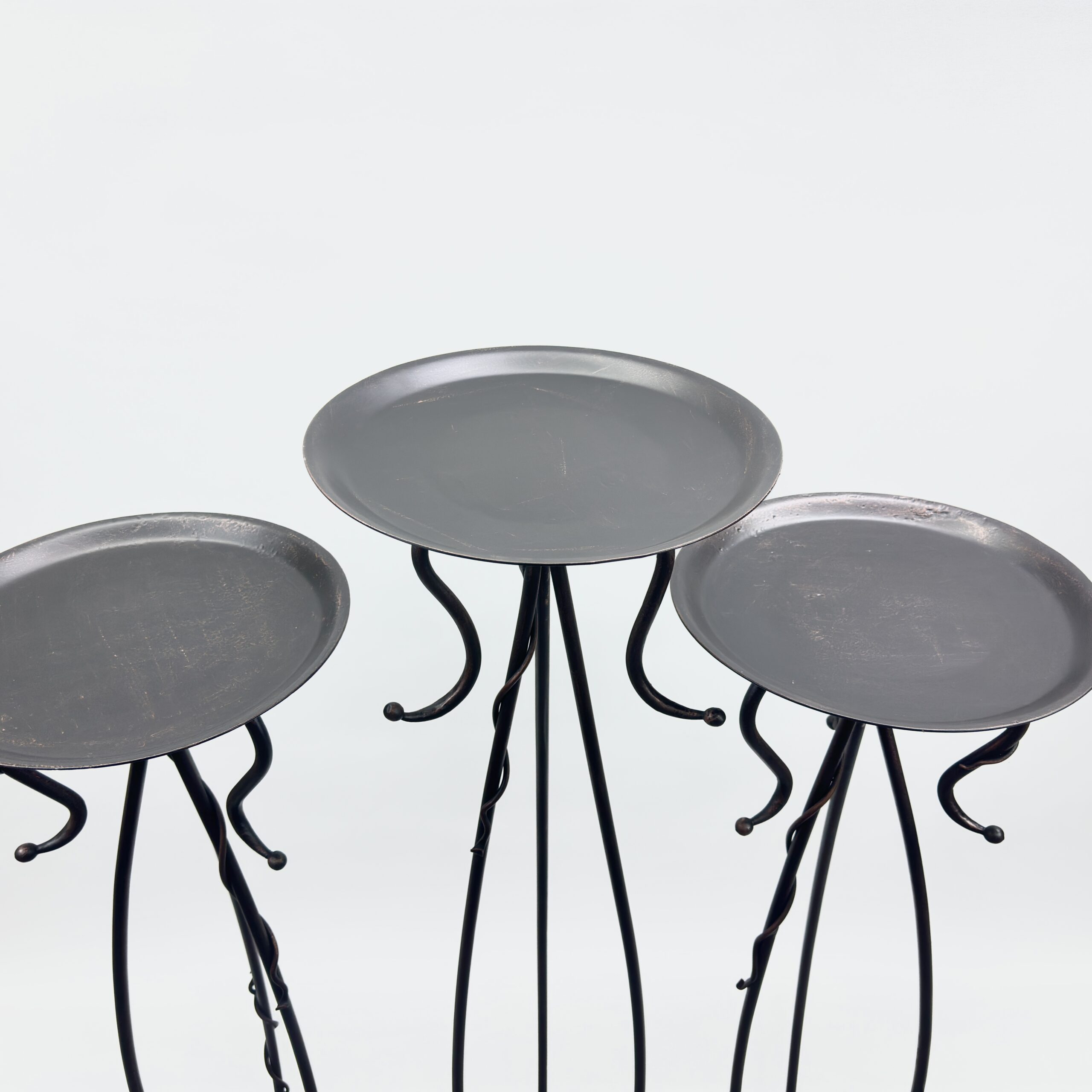 Elevate your decor literally and figuratively with this Set of 3 Hand-Forged Iron Pedestal Stands. Bridging the gap between a grand candle holder and a luxury plant stand, this trio is the ultimate tool for interior and exterior styling.