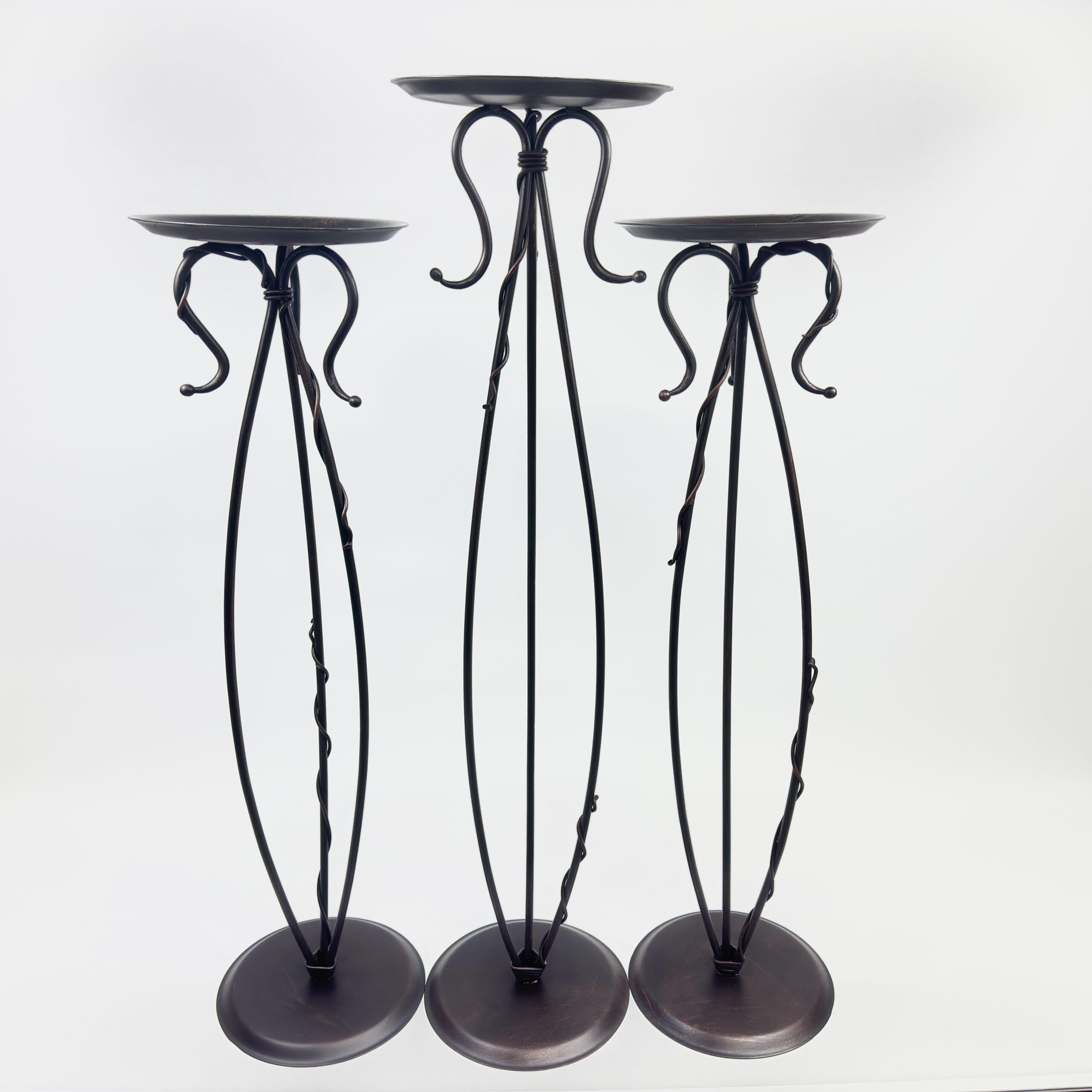 Hand Forged Iron Floor Pedestal Set of 3 (131cm & 115cm) Antique Bronze Finish Candle Holder & Plant Stand Floral Display