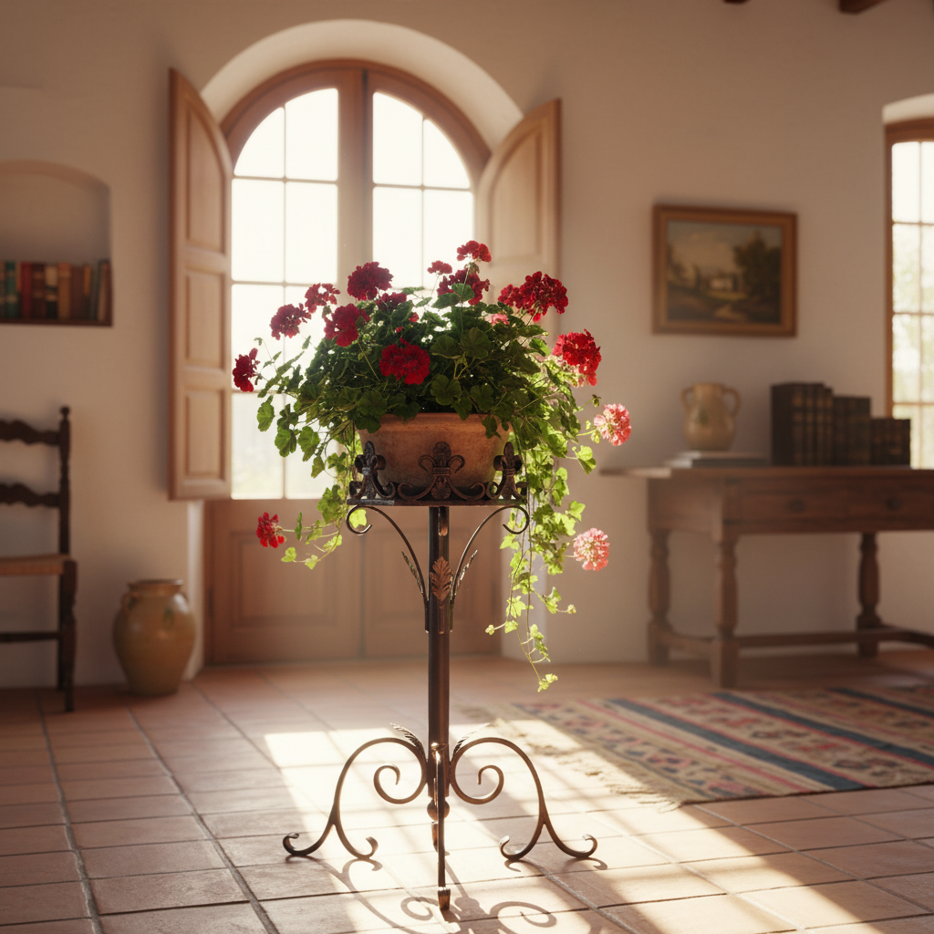 As a Plant Stand: It frames your ferns, geraniums, or trailing ivy beautifully, lifting them off the floor for better sunlight and visibility.