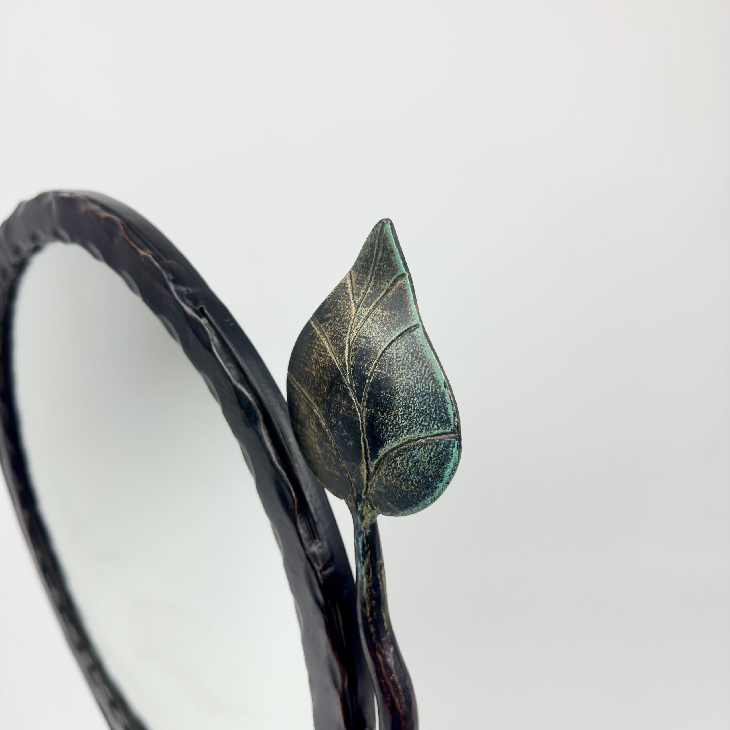 Hand Forged Iron Tabletop Vanity Mirror (55cm) Antique Copper Leaf Design