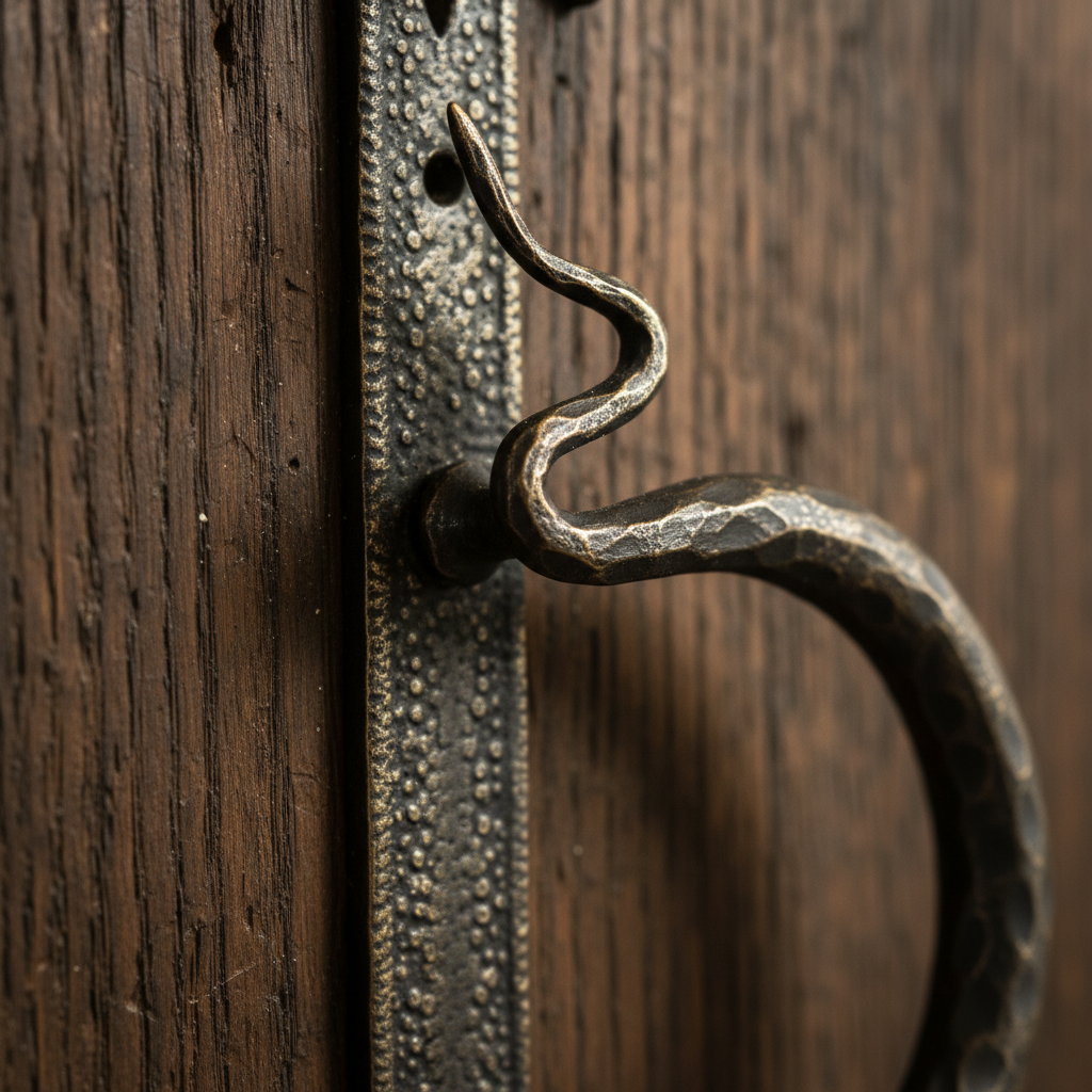 Hand-Forged Wrought Iron Drop Pull & Door Knocker (Gold Patina) Medieval Swing Hardware