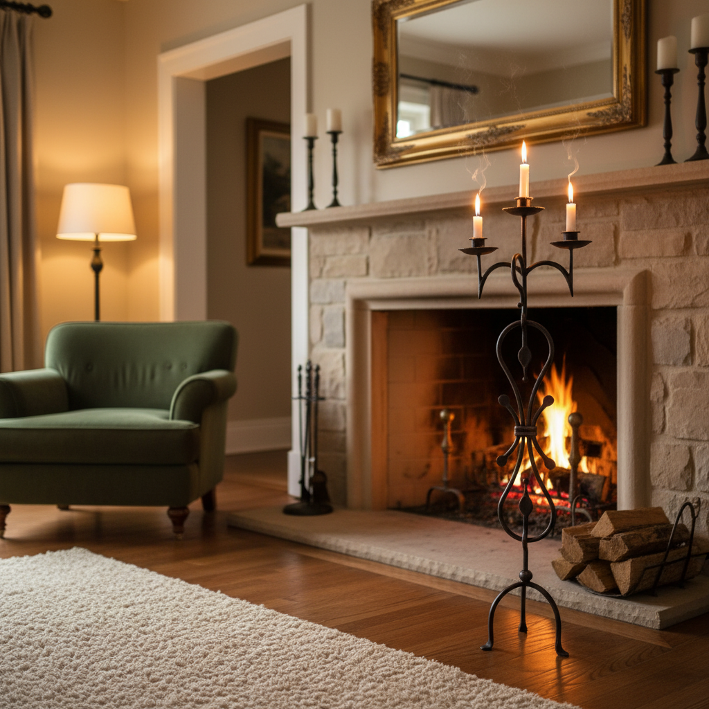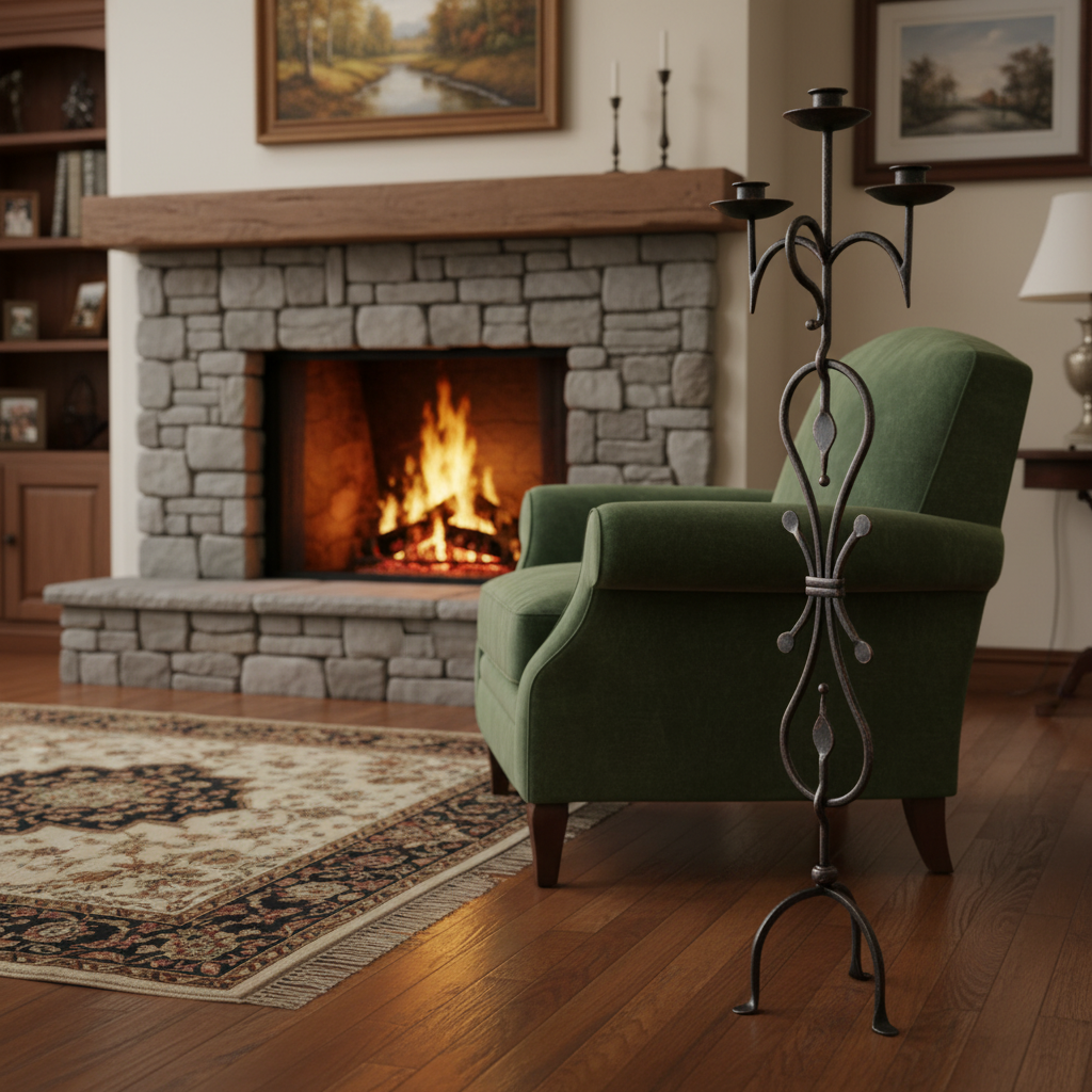 Artistic “Scroll” Motif: The center of the stem is crafted with symmetrical iron curves and delicate leaf accents. This artistic detail makes it a standalone sculpture, even when the candles are not lit.