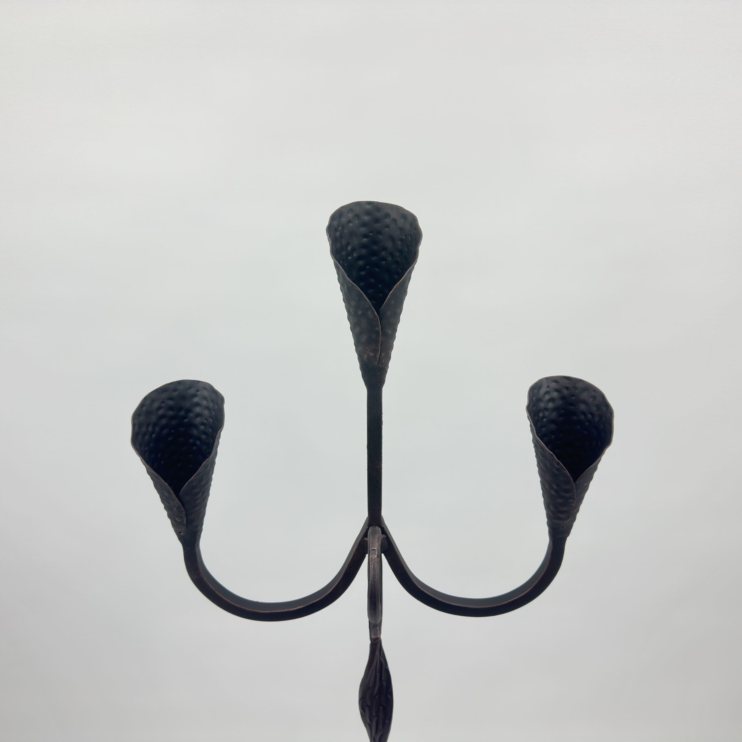 Artistic “Leaf” Design: Unlike standard straight poles, the stem of this candelabra features beautifully twisted and forged leaf-shaped widenings. This subtle detail adds sophistication and breaks the monotony of the iron.