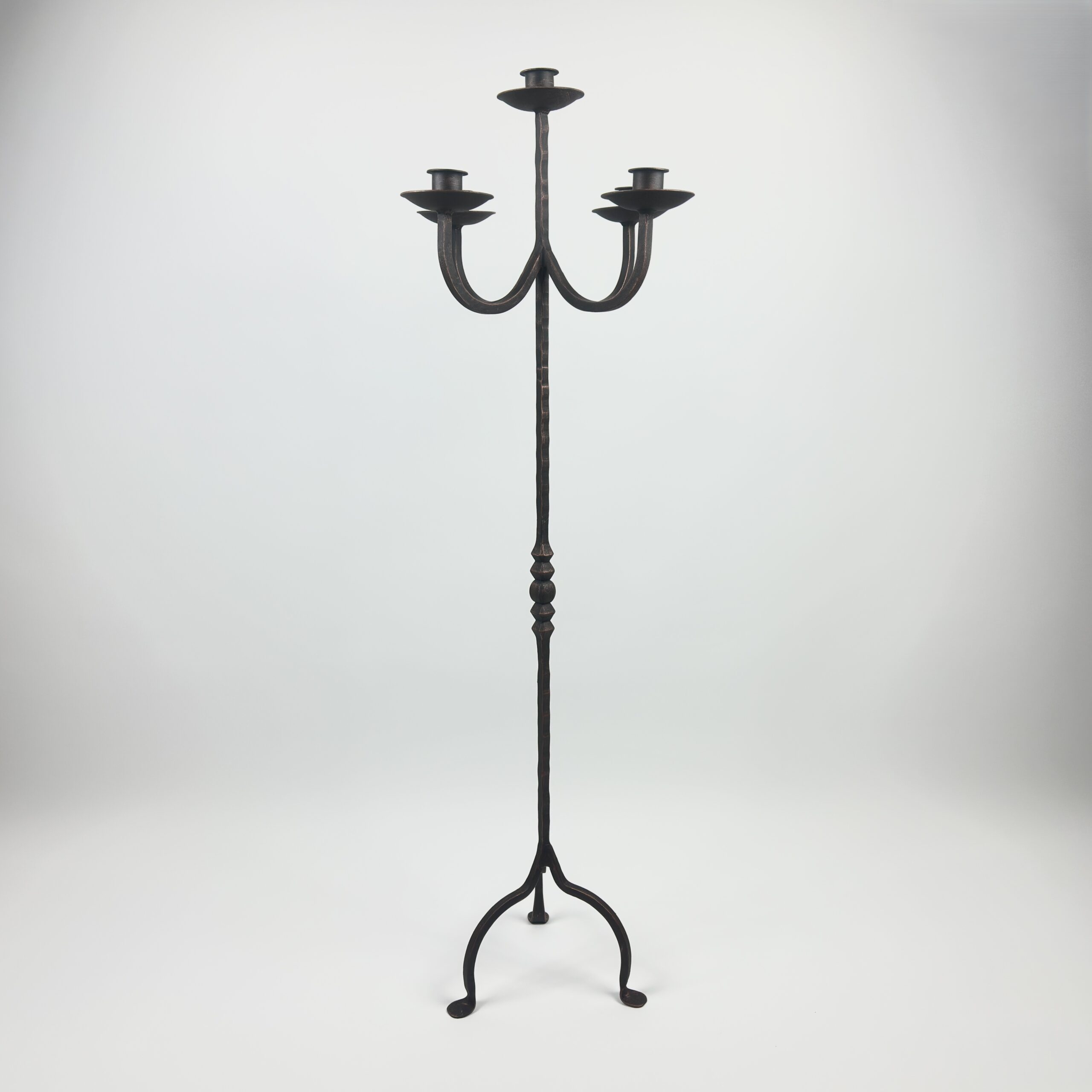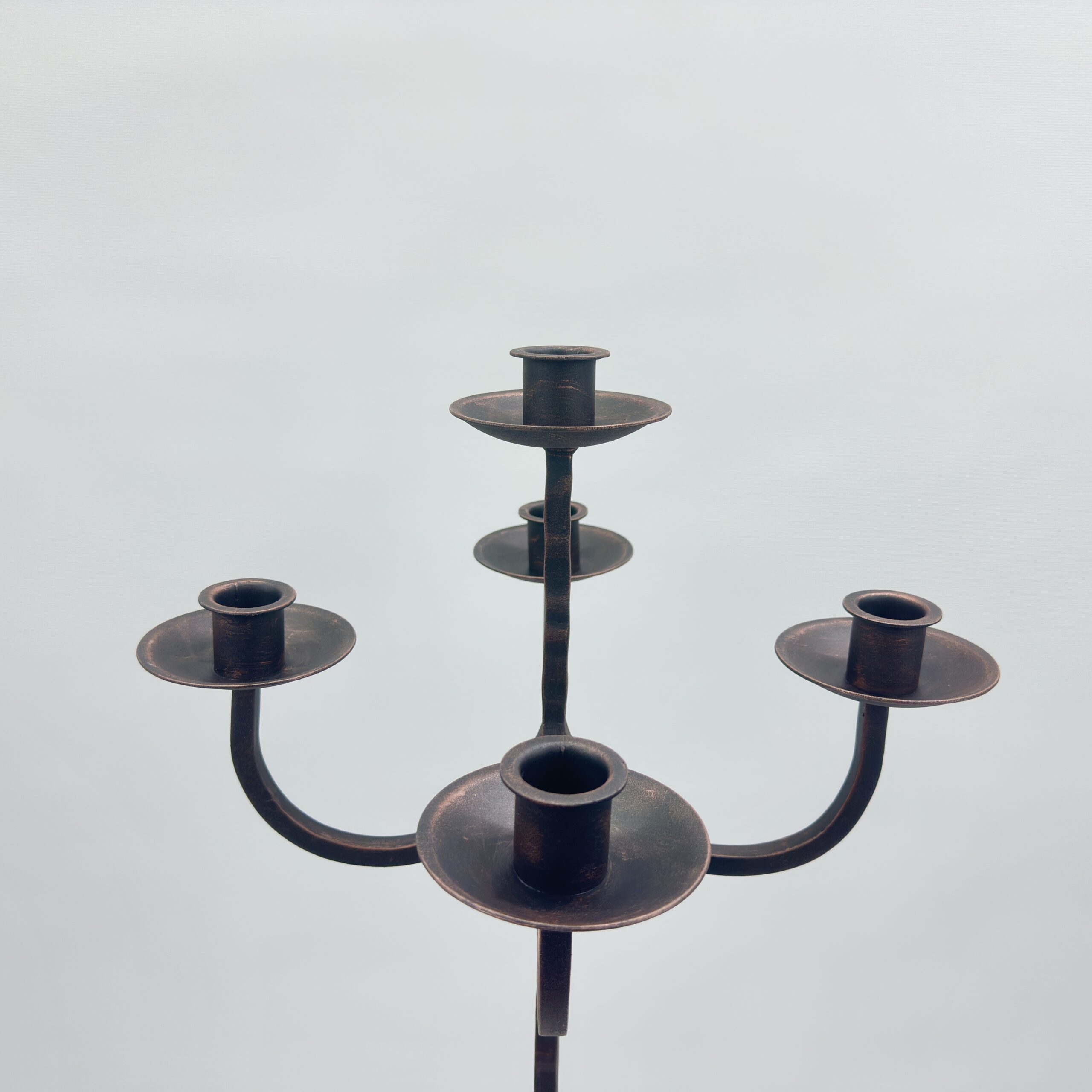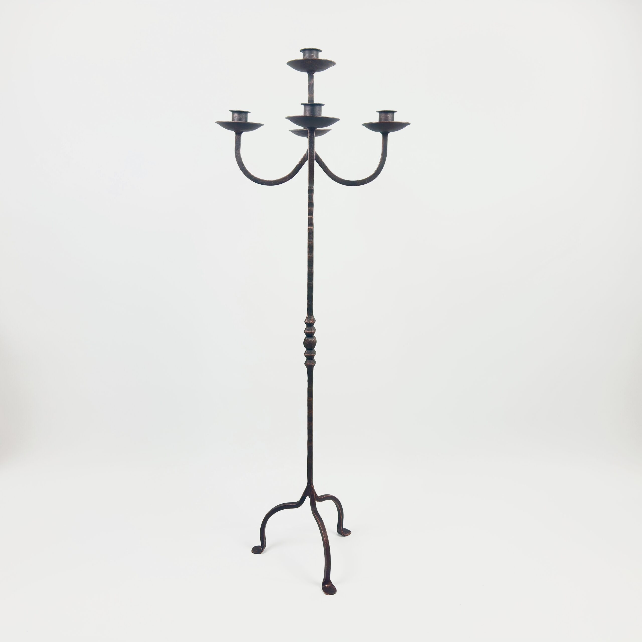 Hand Forged Wrought Iron Floor Candelabra 50″ (127cm) Antique Copper Patina 5-Arm Tiered Candle Holder Gothic Church Wedding Decor