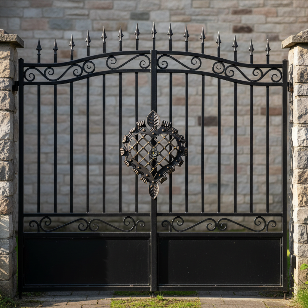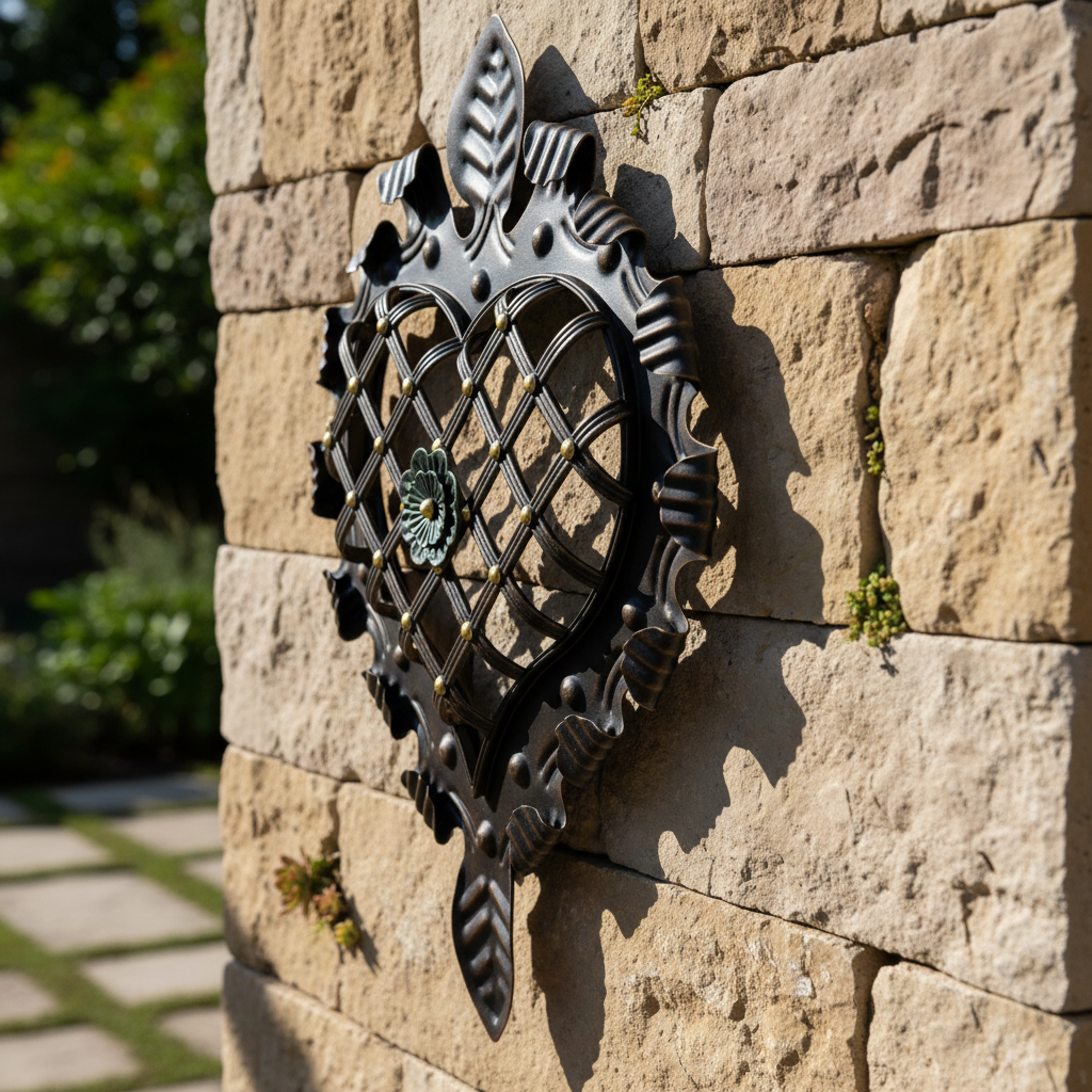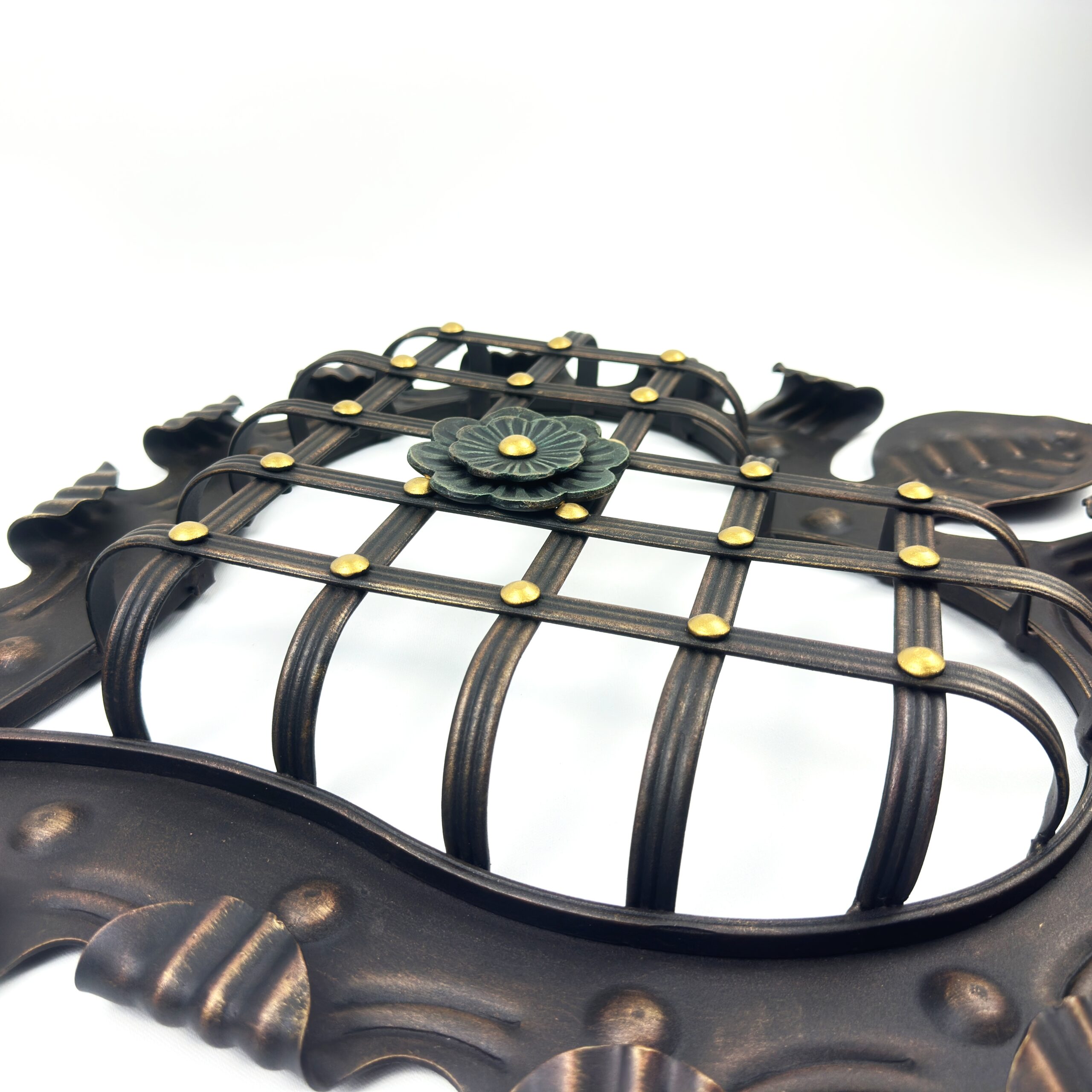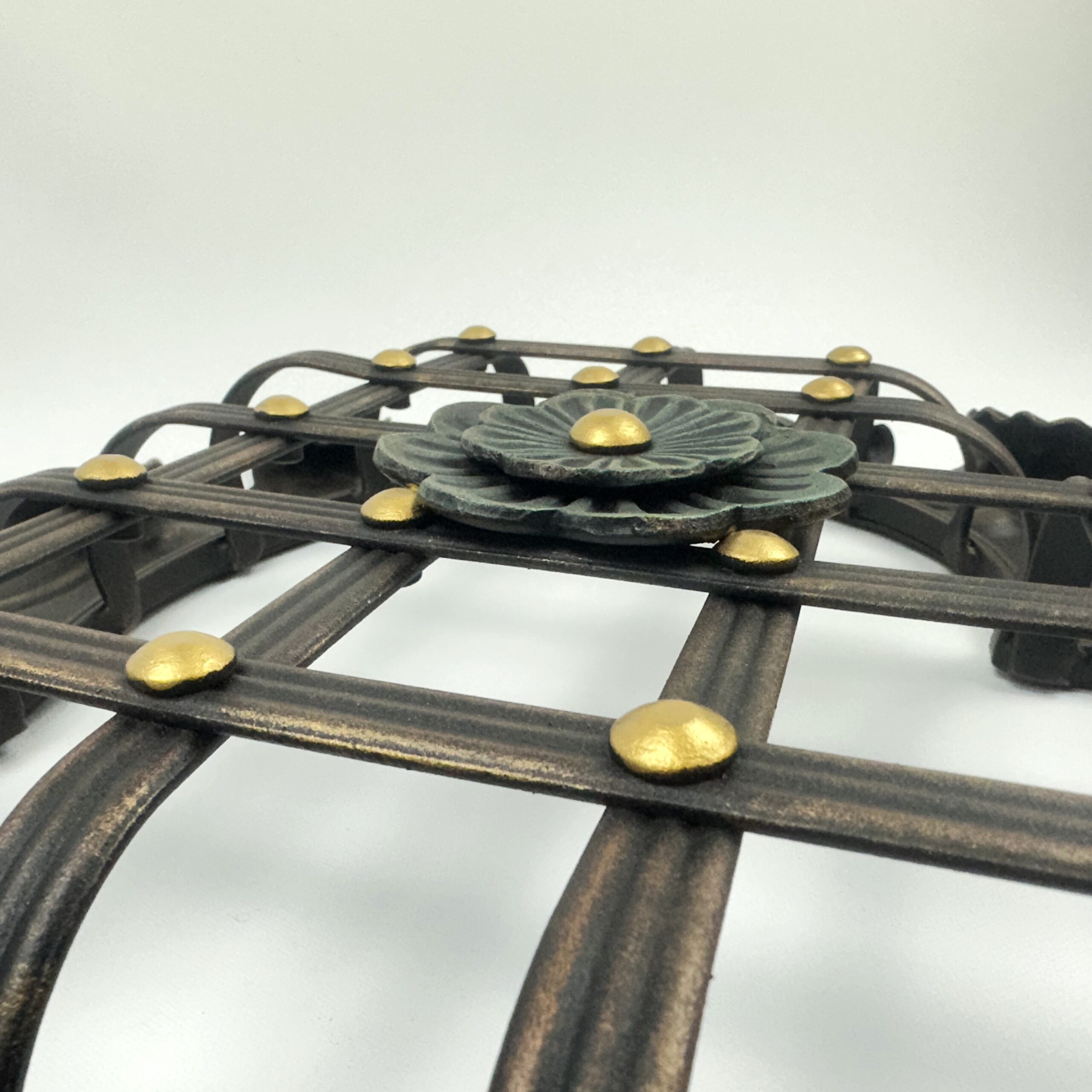Distinctive Finials What sets this piece apart are the Leaf Finials. The stylized iron leaves at the top and bottom extend the form, giving it a regal, elongated shape that perfectly complements tall gates and narrow wall spaces.