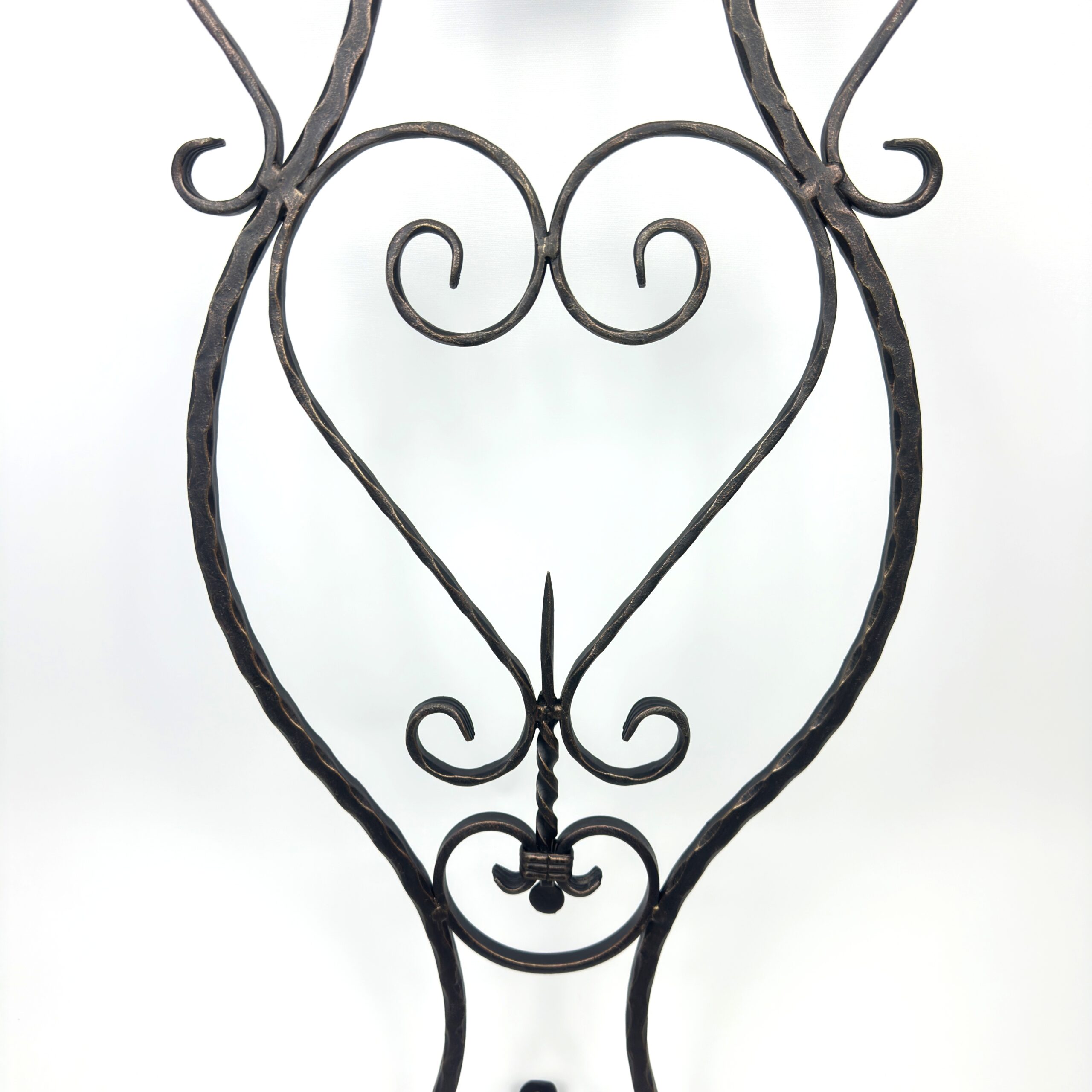 Details That Matter Look closely at the center, and you will see the Twisted Metal craftsmanship and the graceful scrolls that form a heart motif. The entire frame bears the marks of the hammer, proving it was shaped by human hands, not machines.