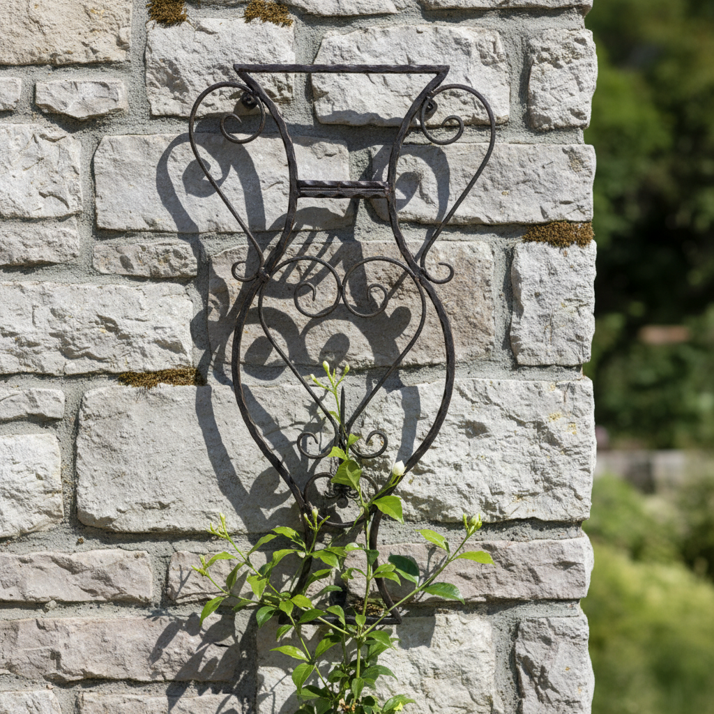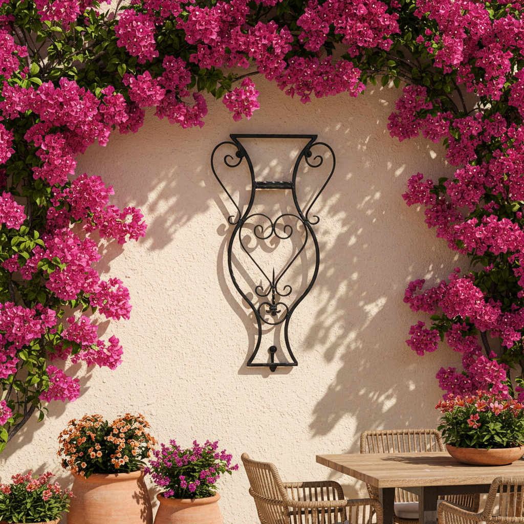 A Frame for Your Wall The beauty of this piece lies in its transparency. Designed in the shape of a classic Amphora Vase, it frames the surface behind it. Whether hung on rough garden stone, warm red brick, or weathered wood, the black iron creates a striking contrast that highlights the natural beauty of your home’s materials.