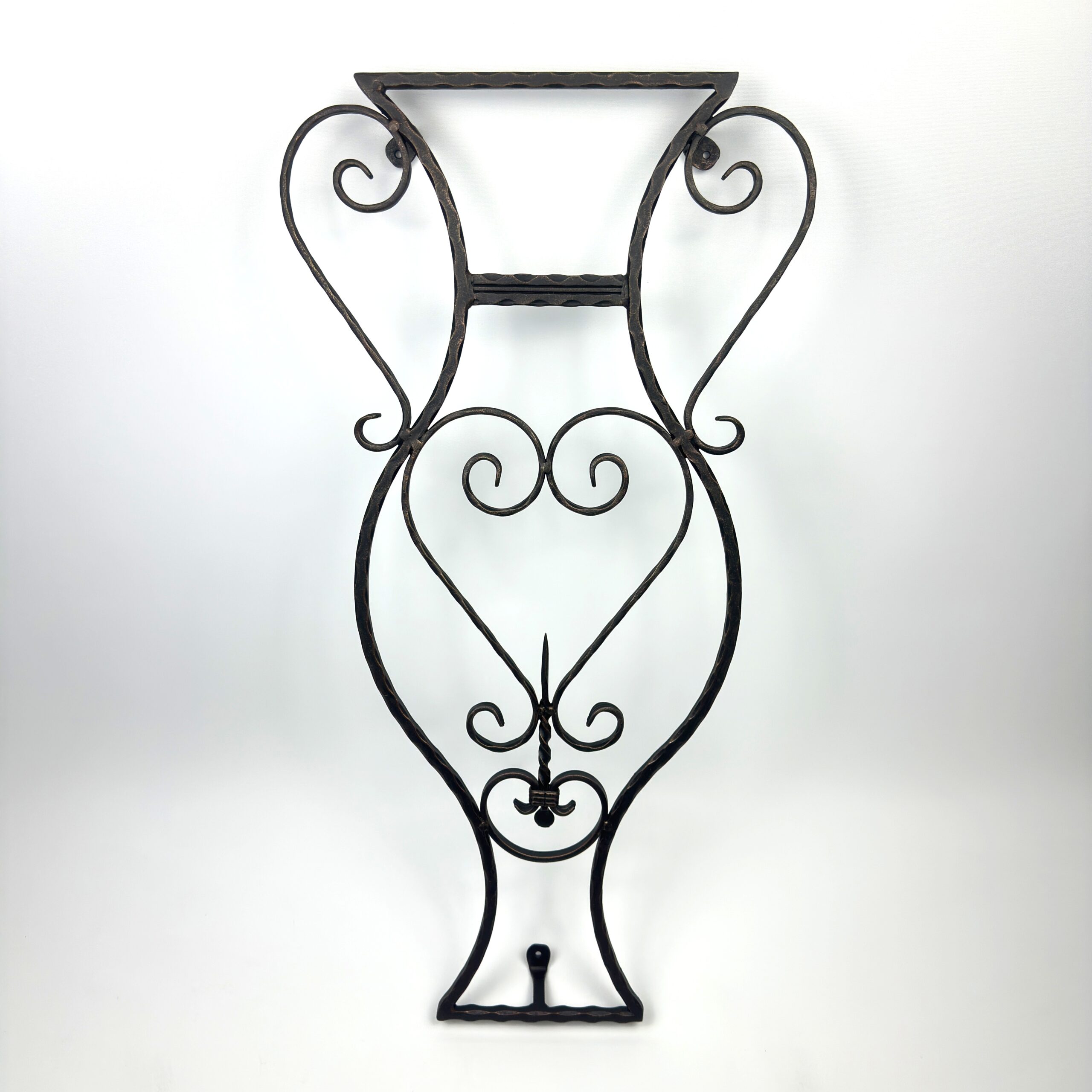 Hand-Forged Wrought Iron Vase Wall Art (Amphora Silhouette) Garden Wall Sculpture