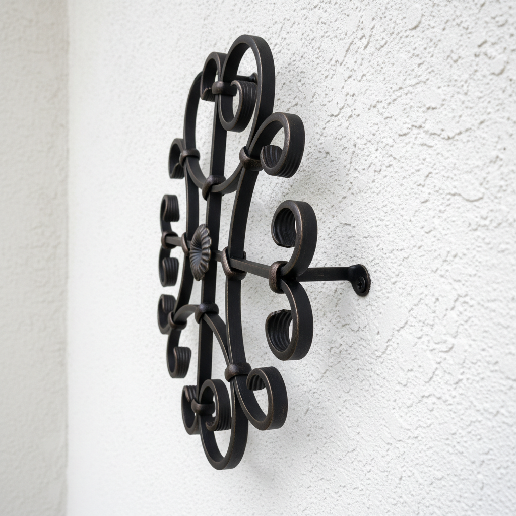 Hand-Forged Wrought Iron Wall Decor (Symmetrical Scroll & Rosette) 3D Architectural Wall Art