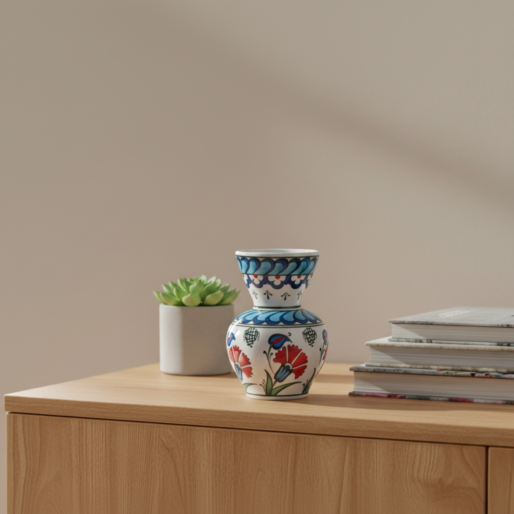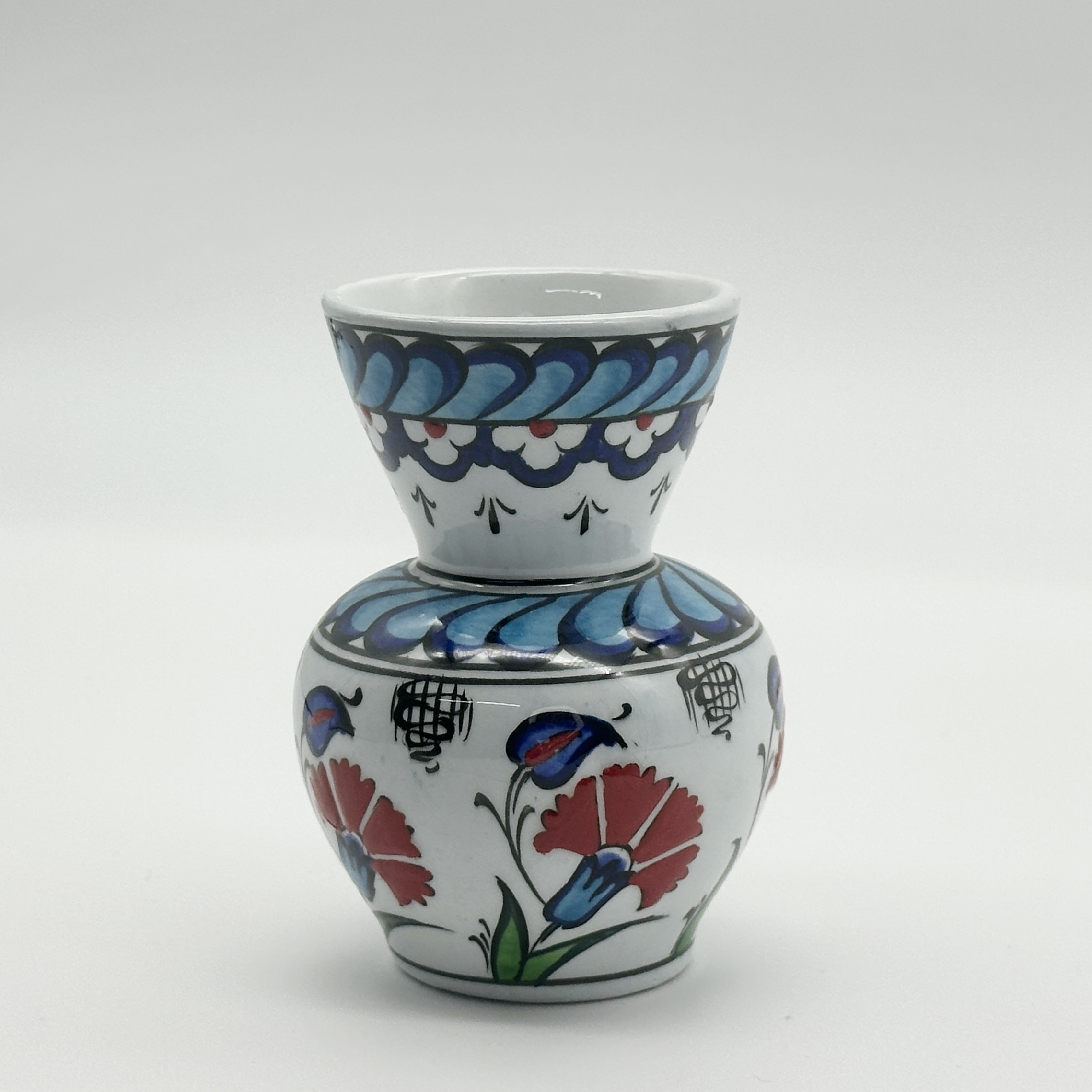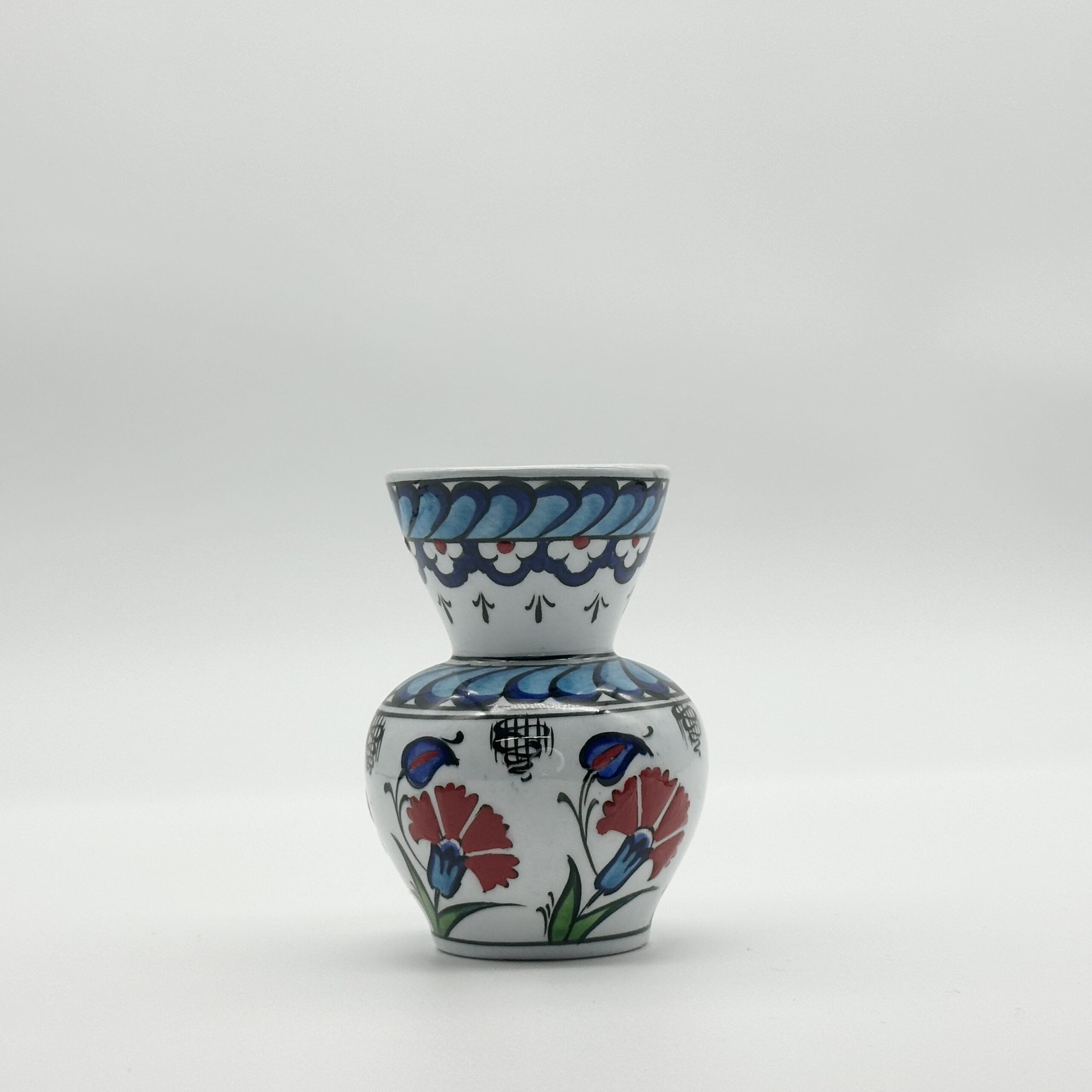 Hand Painted Ceramic Vase (15cm) Traditional Turkish Carnation Pattern – Classic Flared Neck Bud Vase for Table Decor