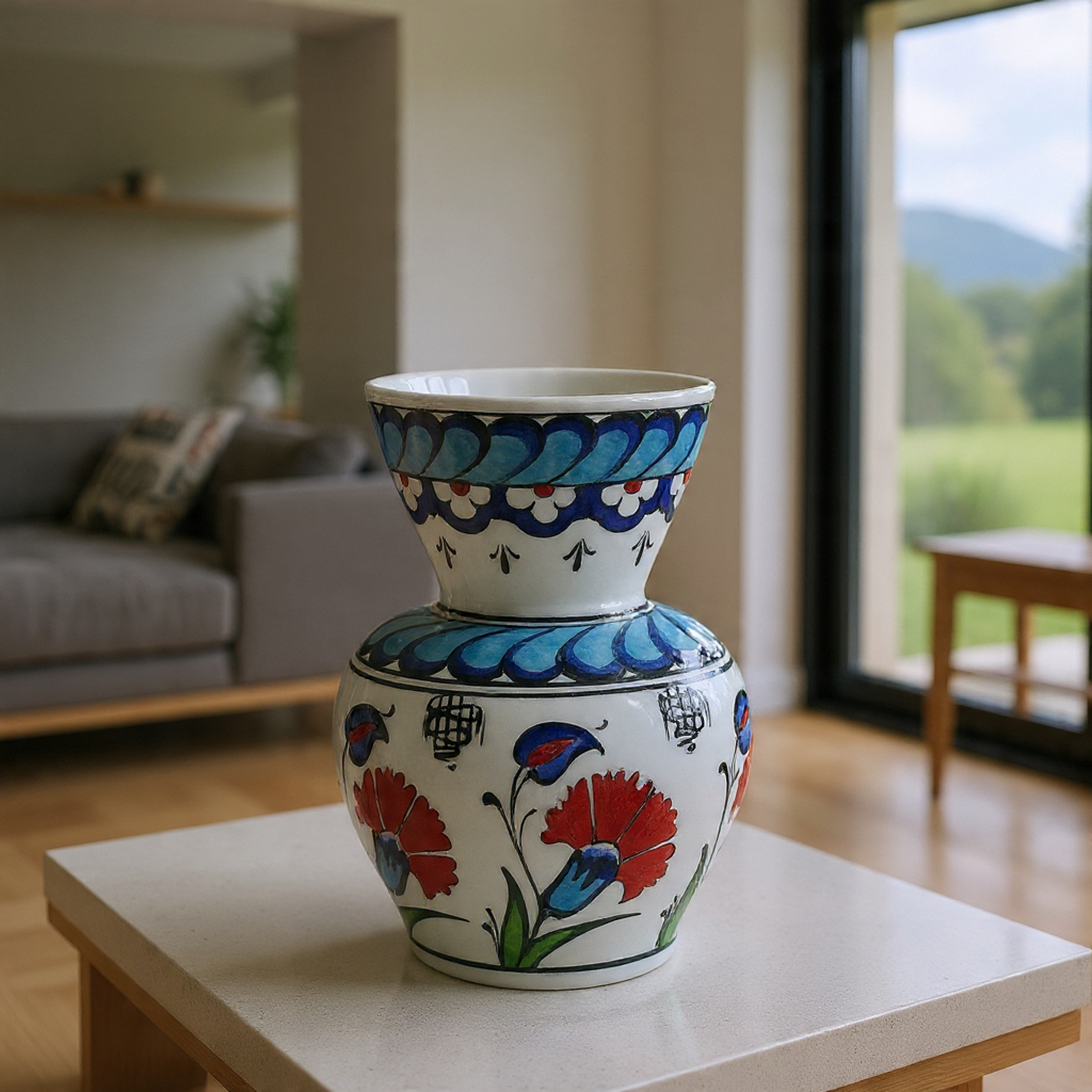 Bring the elegance of a secret garden into your home with this Hand Painted Ceramic Vase. With its traditional form and vibrant patterns, this piece is a perfect example of timeless Anatolian pottery art.