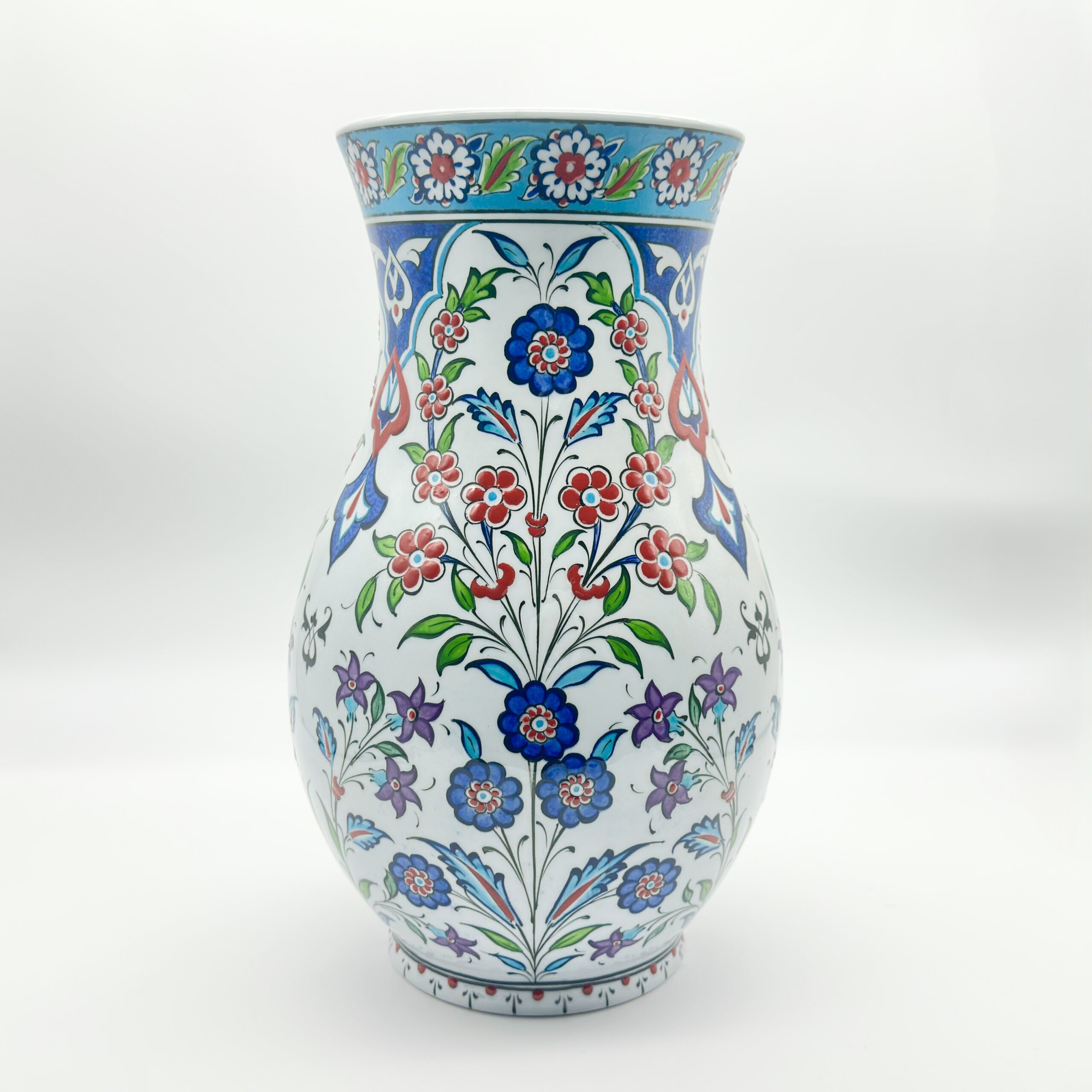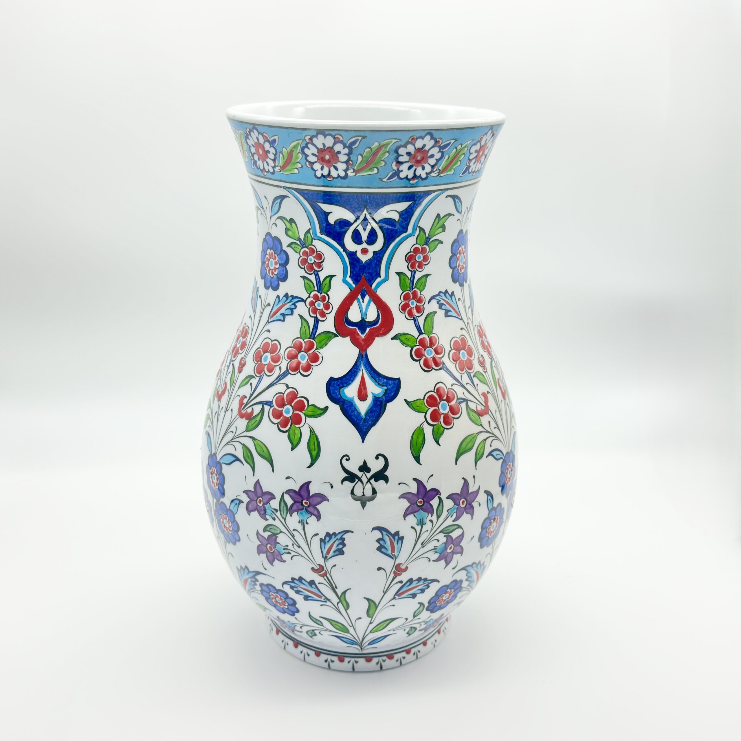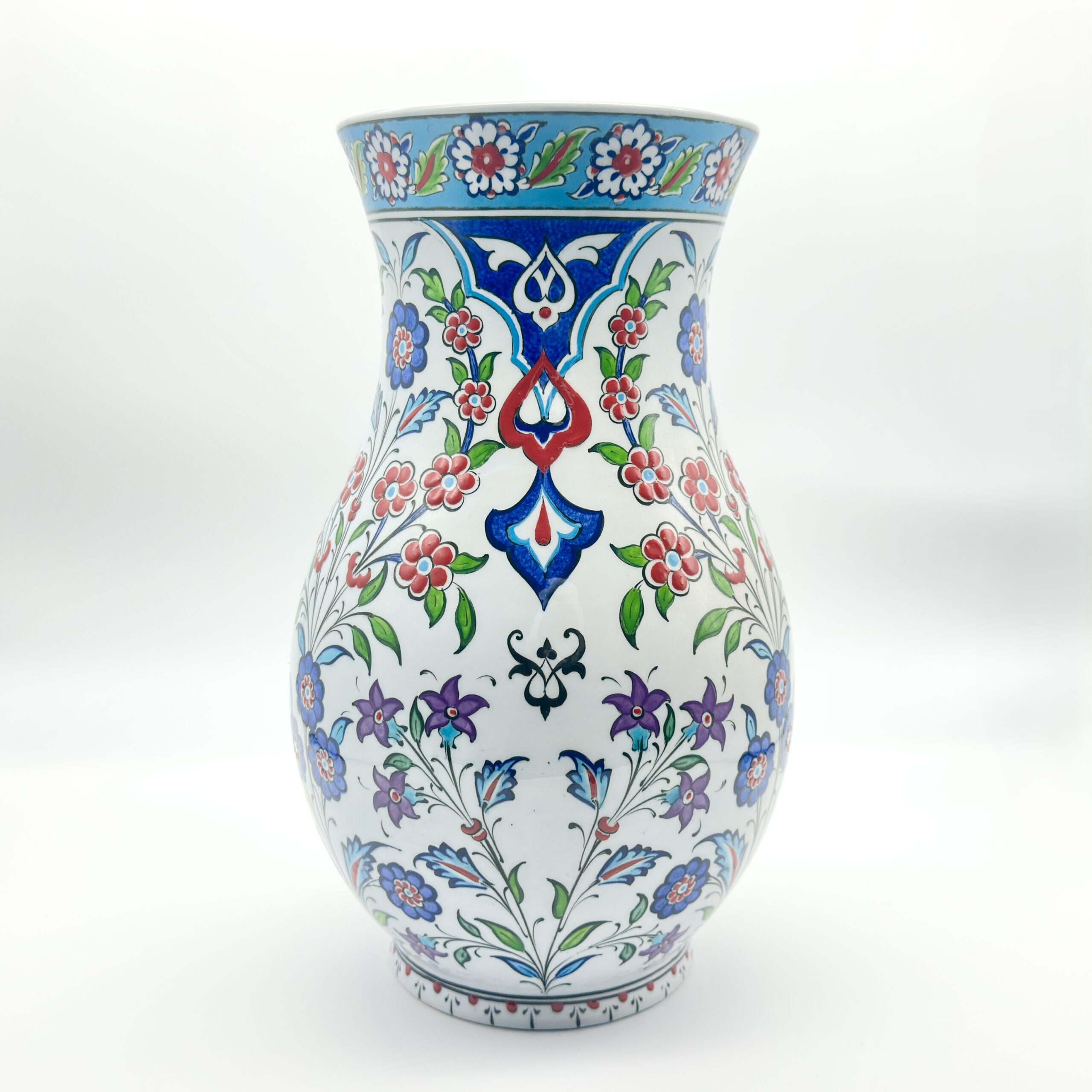 Handmade Ceramic Vase (20cm) Traditional Turkish Tulip & Carnation Pattern – Pear Shaped (Armudi) Art Decor