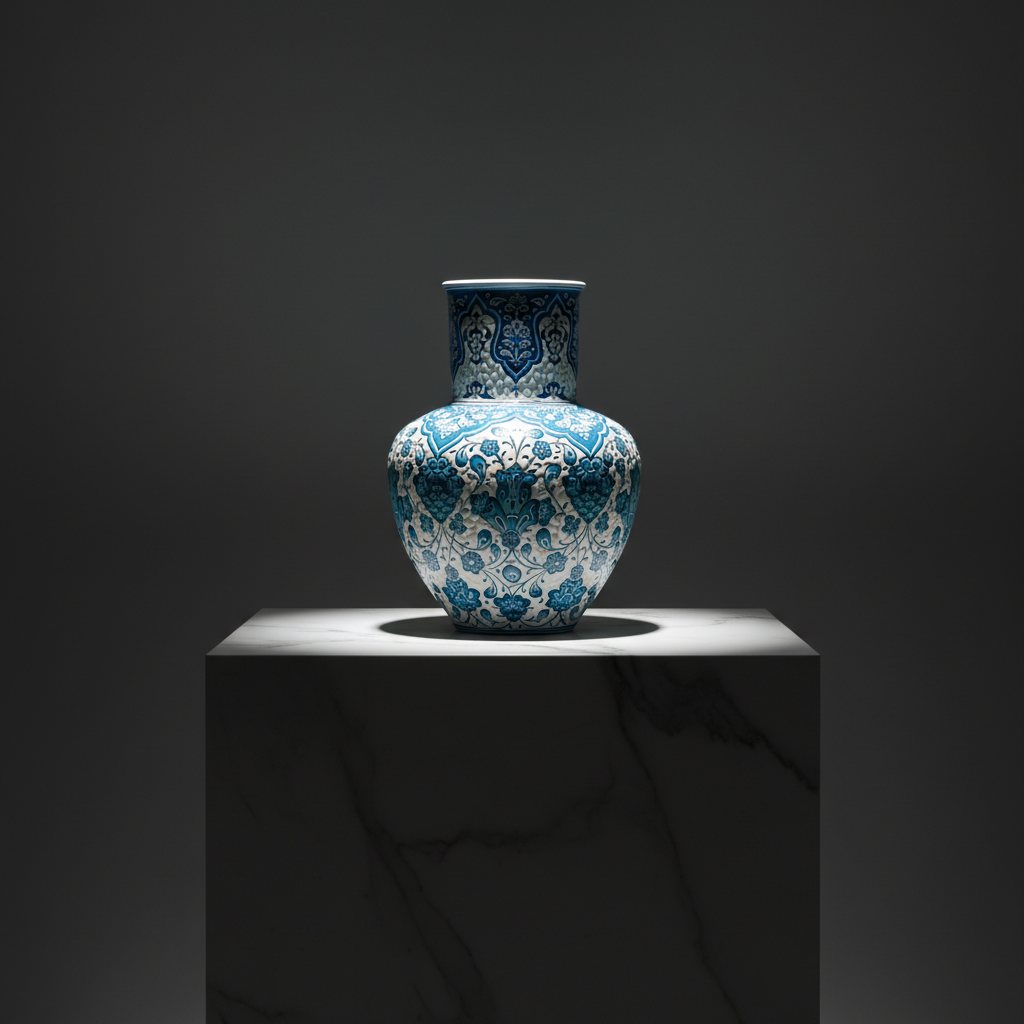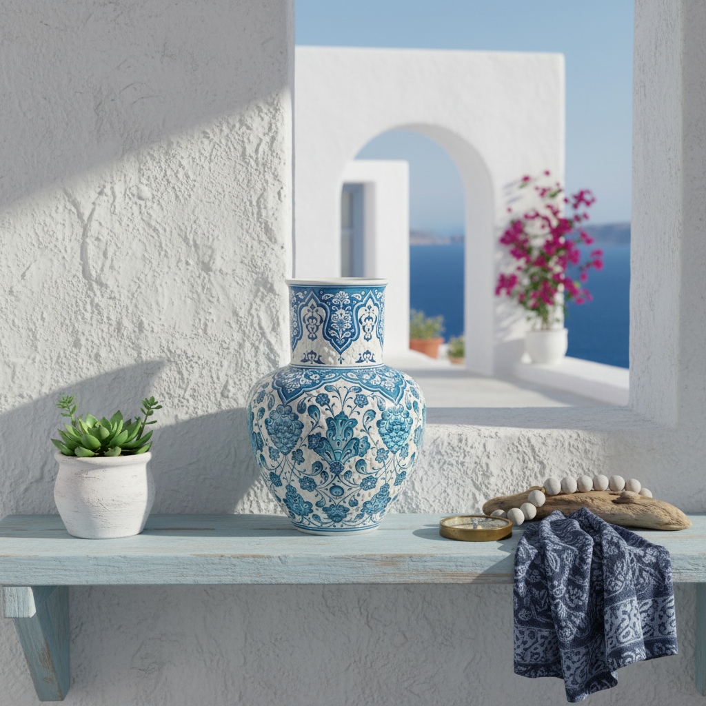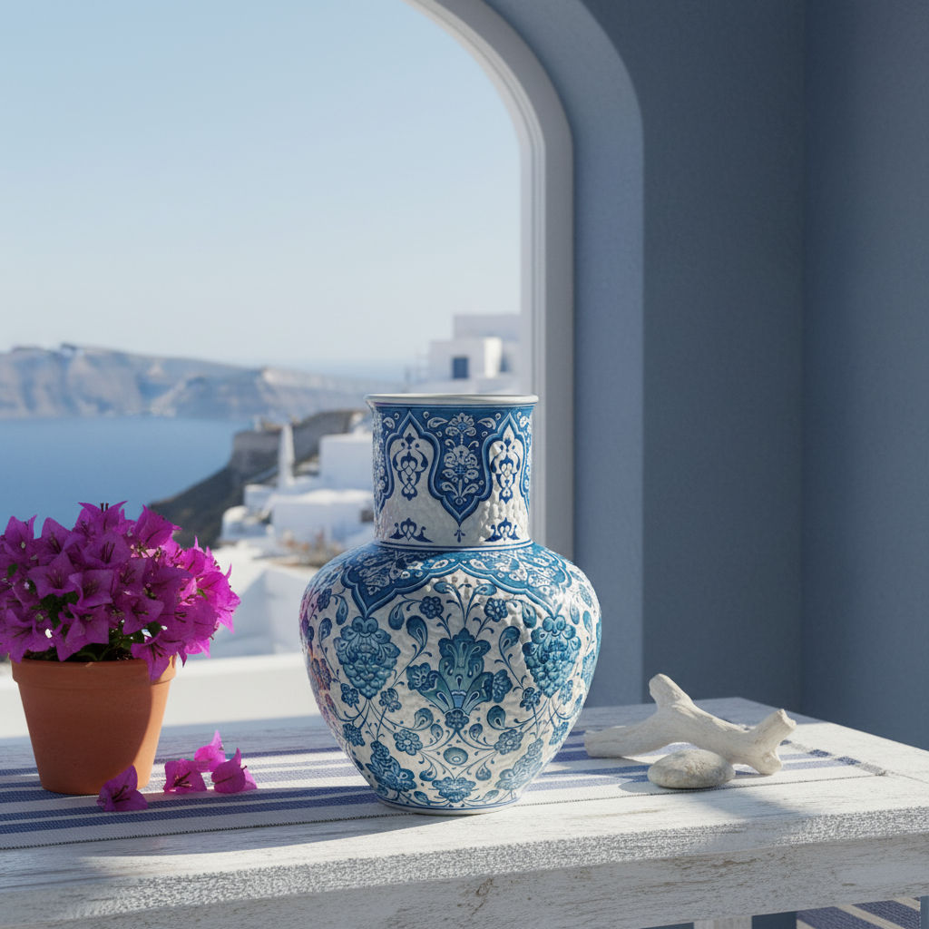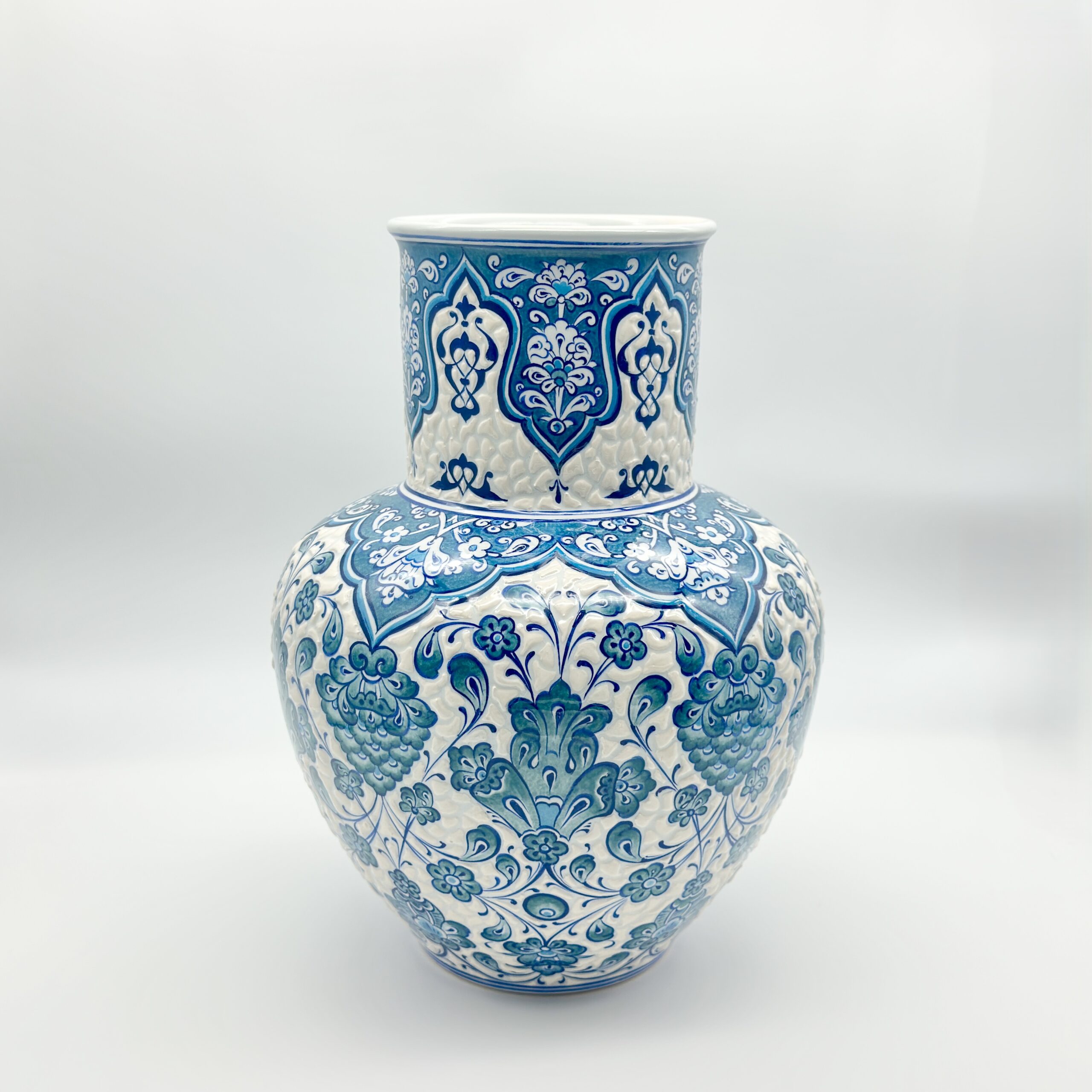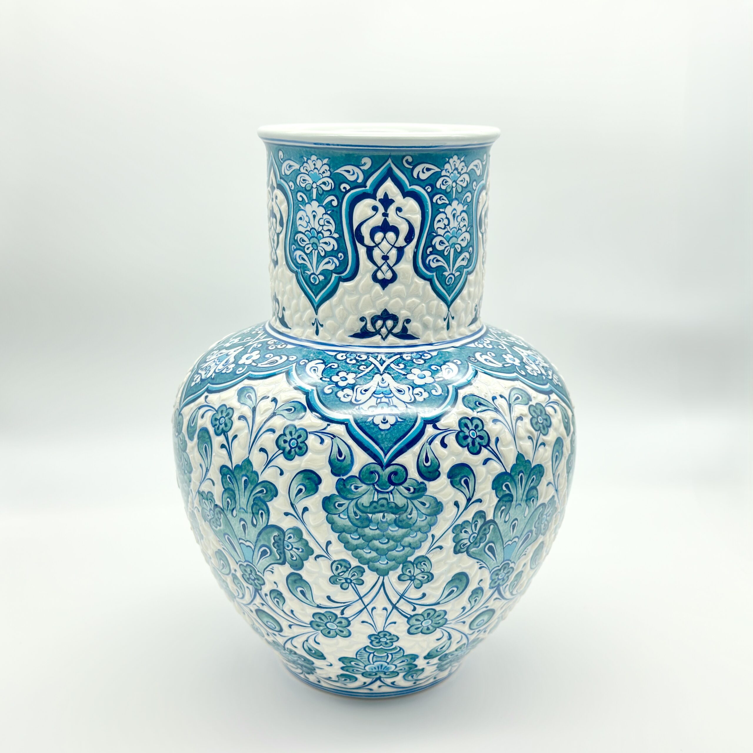 This Handmade Ceramic Ata Vase is a masterpiece of texture and color. Standing at 30 cm, it combines the imposing presence of the ancestral “Ata” form with the delicate beauty of Iznik art.