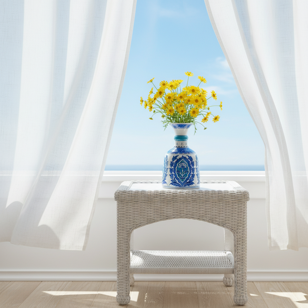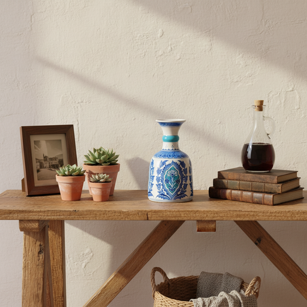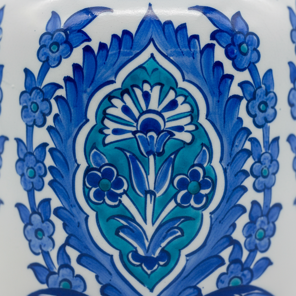 ⚠️ Uniqueness Guarantee: The turquoise glaze is mixed by hand, and the intricate brushwork inside the medallion is unique to each artist. The exact saturation of the blue will vary slightly on every vase, making your piece a one of a kind original.