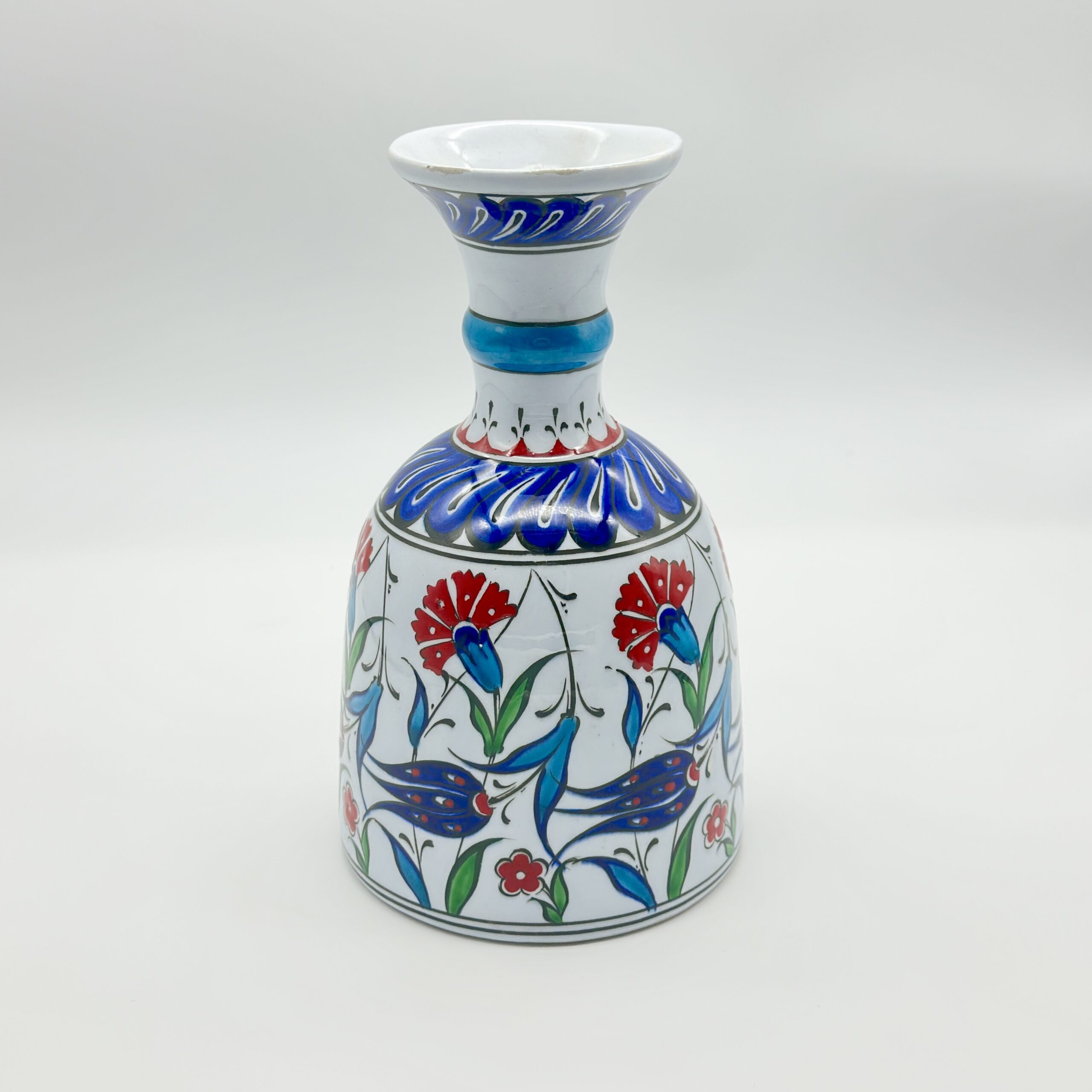 Handmade Ceramic “Bell” Vase (20cm) – Red Carnations & Turquoise Neck – Classical Iznik Vase