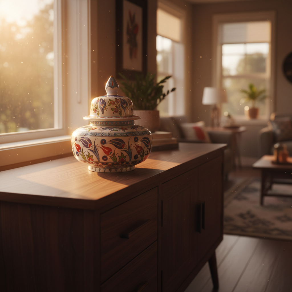 A Versatile Centerpiece While tall vases are for corners and mantels, this wide jar is designed to be the heart of the room. Its generous volume allows the pattern to wrap beautifully around its circumference, offering a different view from every seat in the room.