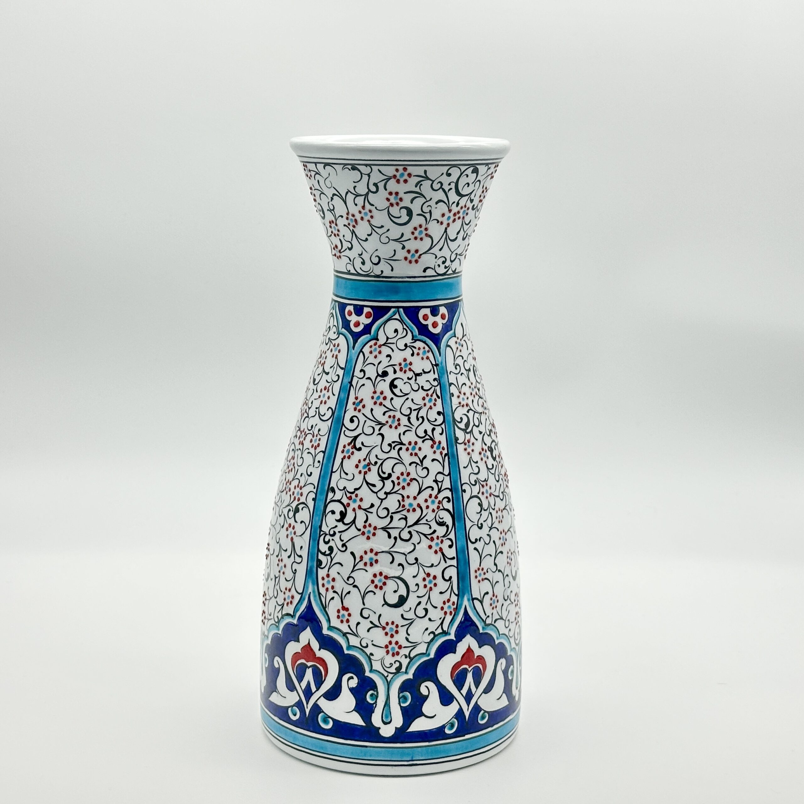 Handmade Ceramic Vase (30cm) Traditional Turkish Carnation & Tulip Pattern – Classic Flared Neck Decor