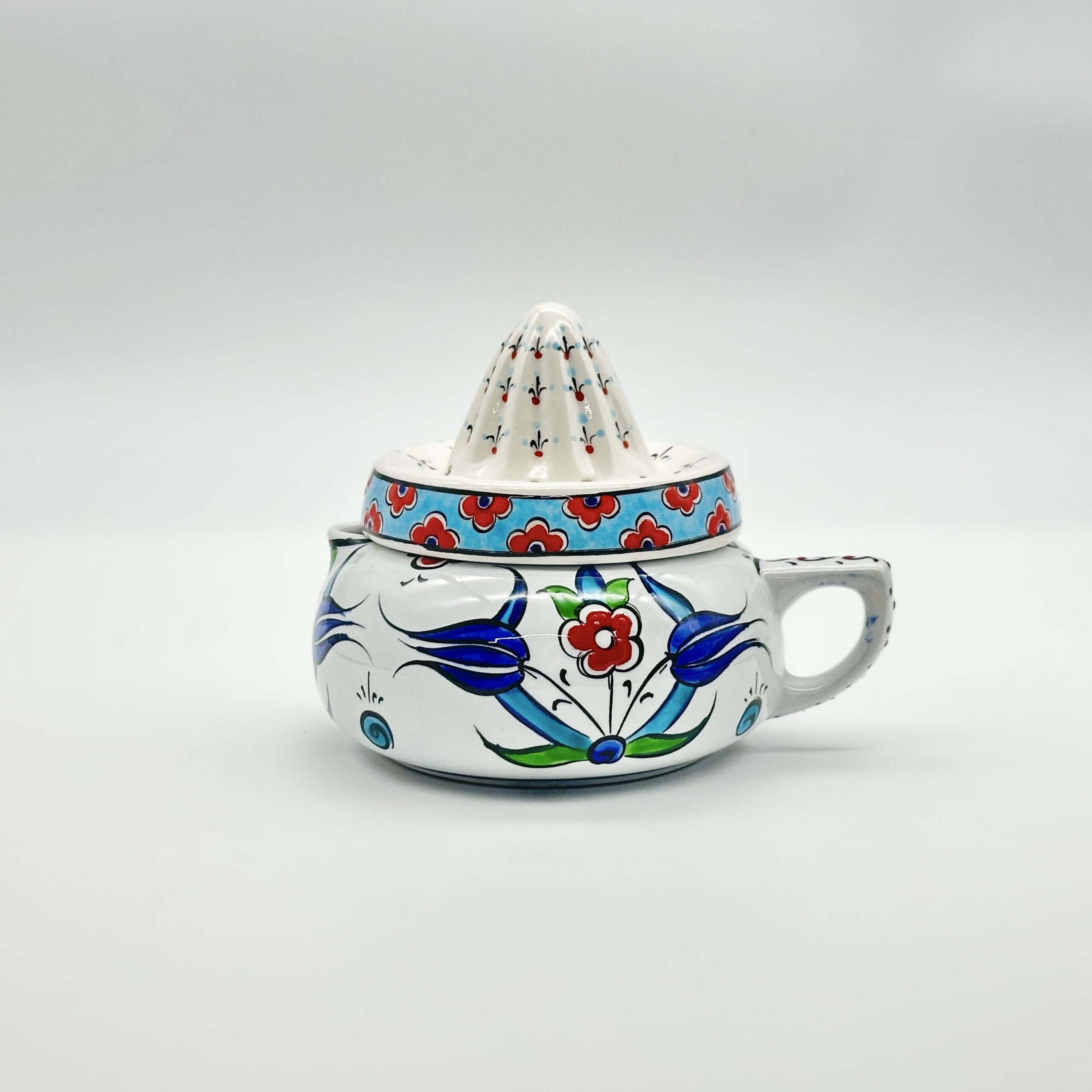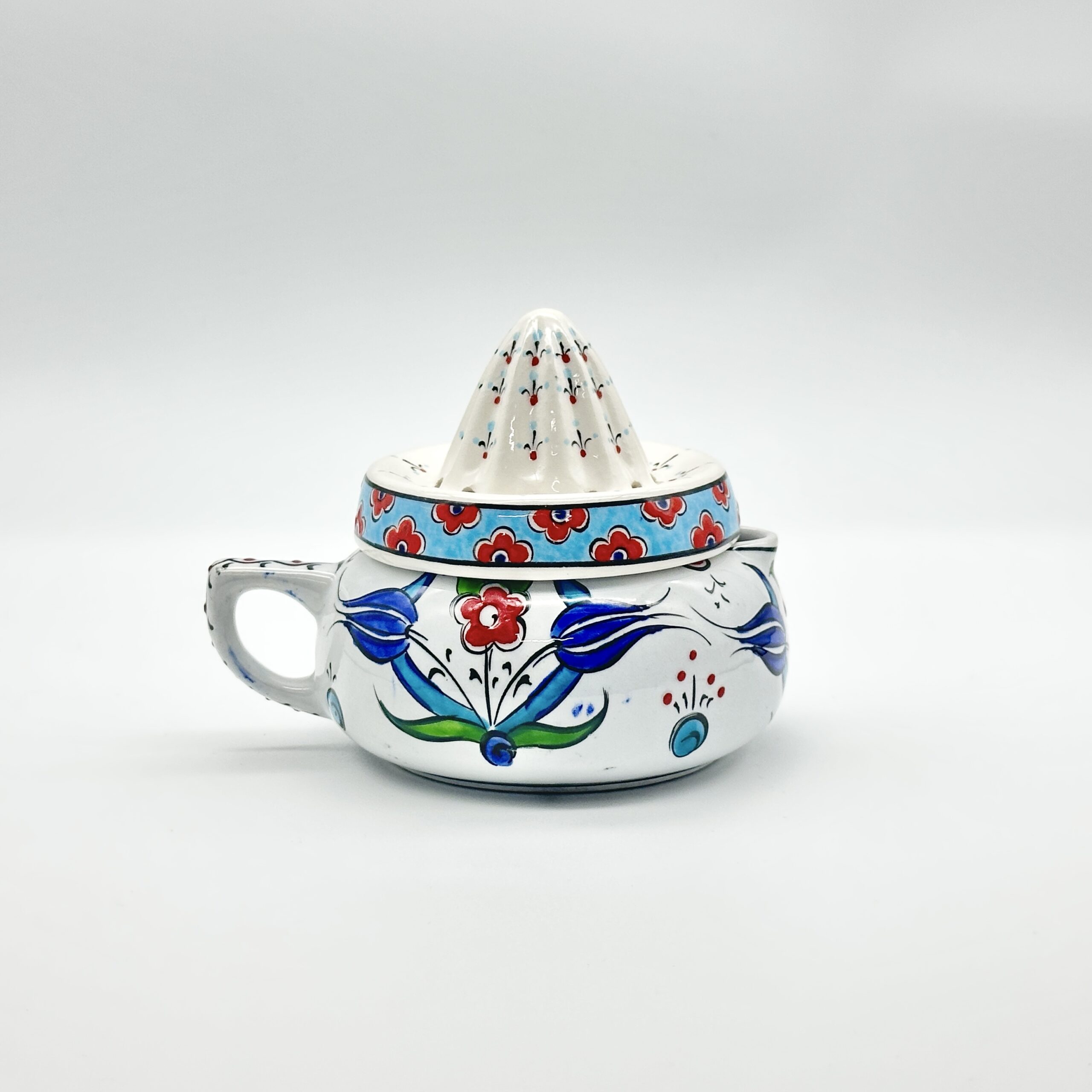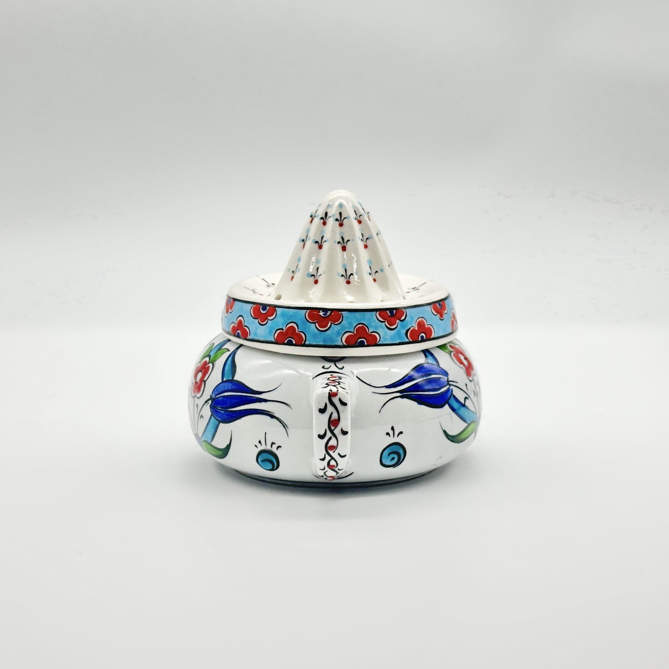 Handmade Ceramic Decorative Lemon Juicer Sculpture – Hand-Painted Iznik Tulips – Kitchen Shelf Decor Accent (Not Food Safe)